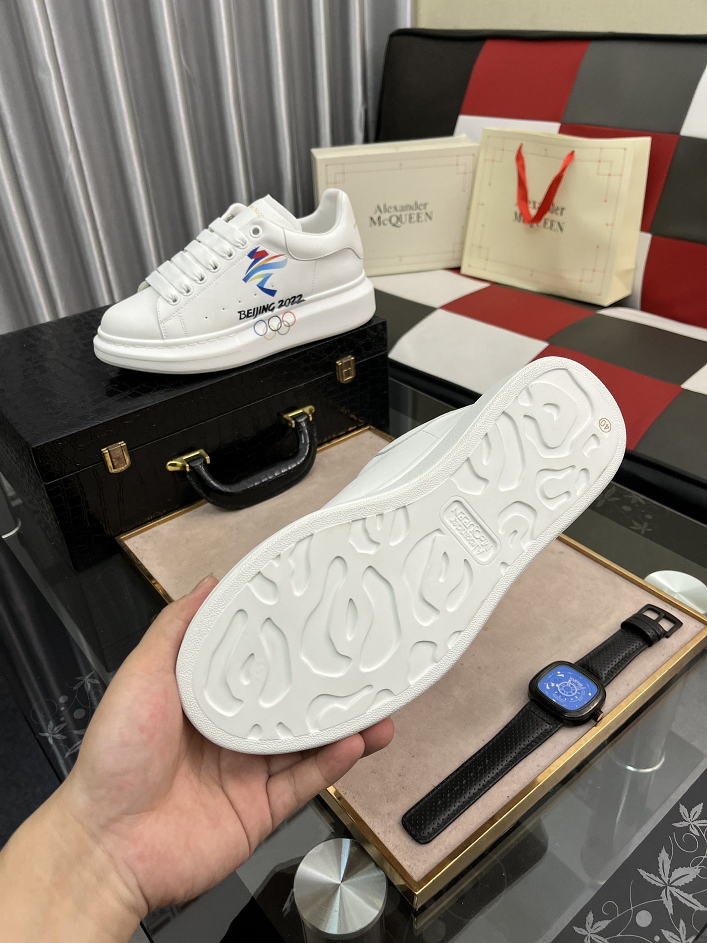 J0 男女情侣款品牌 Brand : MQUEEN 麦昆 Alexander McQueen 老爹鞋运动款休闲鞋码数 Size : 35 36 37 38 39 40 41 42 43 44 🔹面料Fabric:原版丝绸牛皮cowhide🔸内里inside of:水染牛皮内里cowhide🔺鞋底Sole:专柜橡胶厚底 rubber BAO High quality men’s shoes, counterpackaging, welcome to buy!