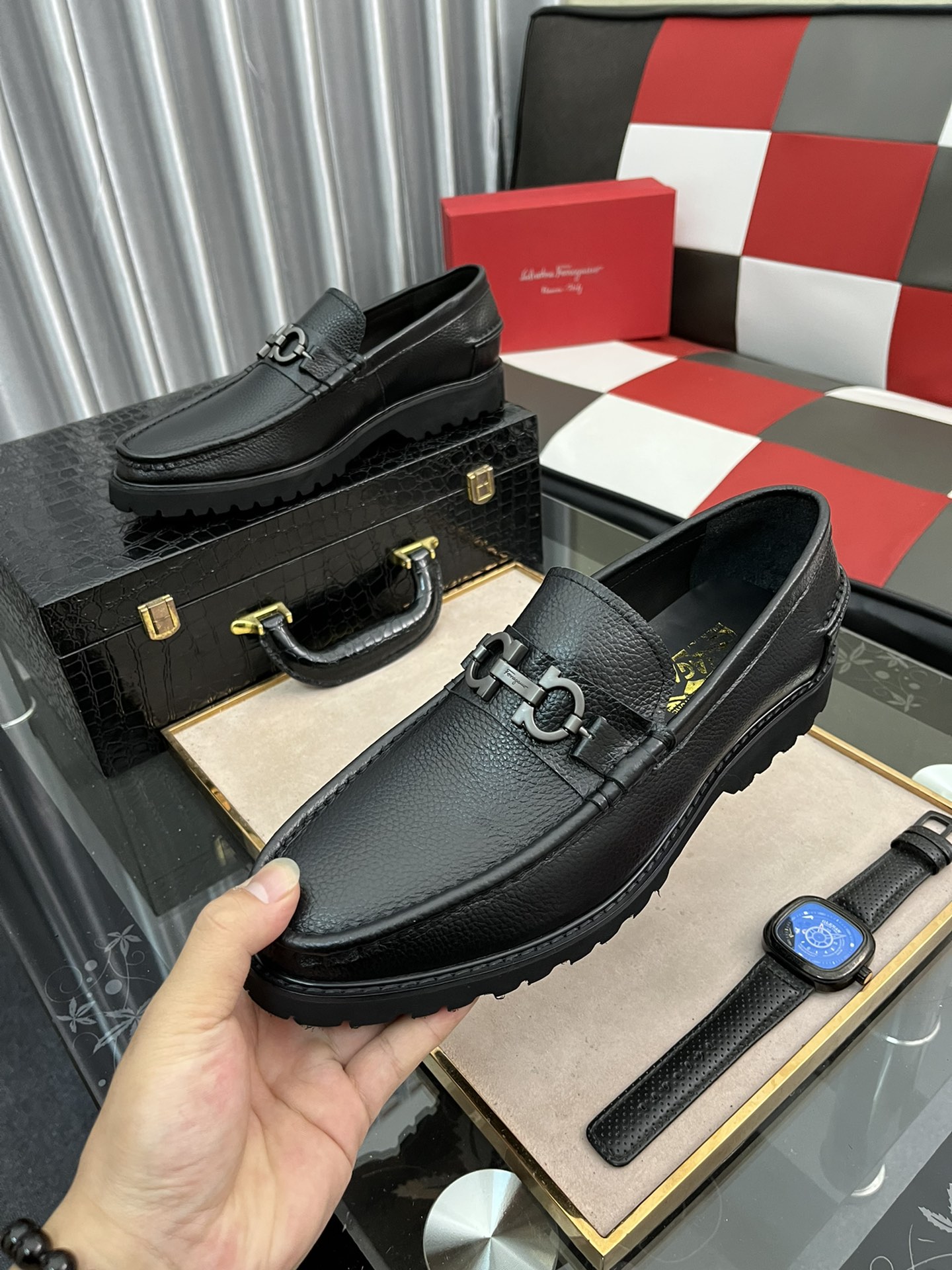 J0 菲拉格慕高端定制皮鞋 鞋面采用进口胎牛皮 原版五金 相信从您见到它的第一眼起就会有眼前一亮的感觉 大气前卫已经不能完全诠释了它的优雅 AAA级橡胶大底 超舒适 专柜原版套楦 保证了其原有版型及品质 鞋面简约 牛皮内里 保证了其舒适及透气性 一双真正的好鞋才有它特有的灵魂 名门品质 成功人士的首选 正码 38-44