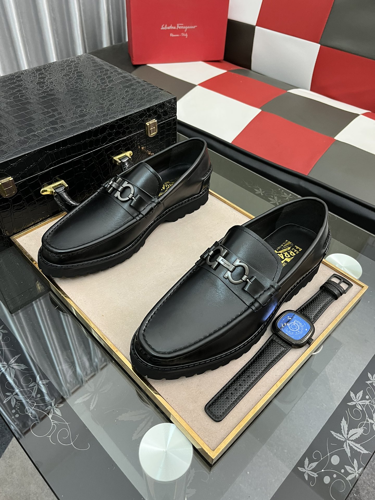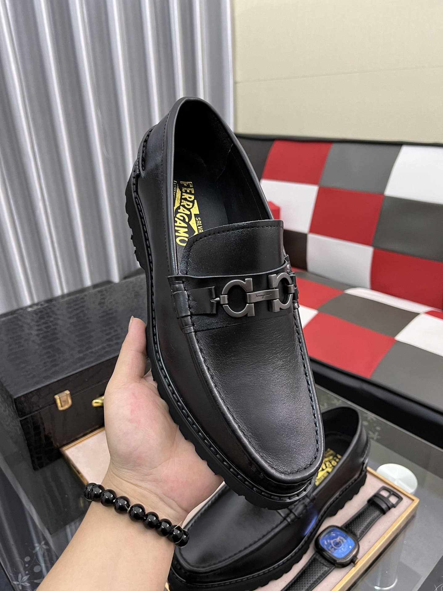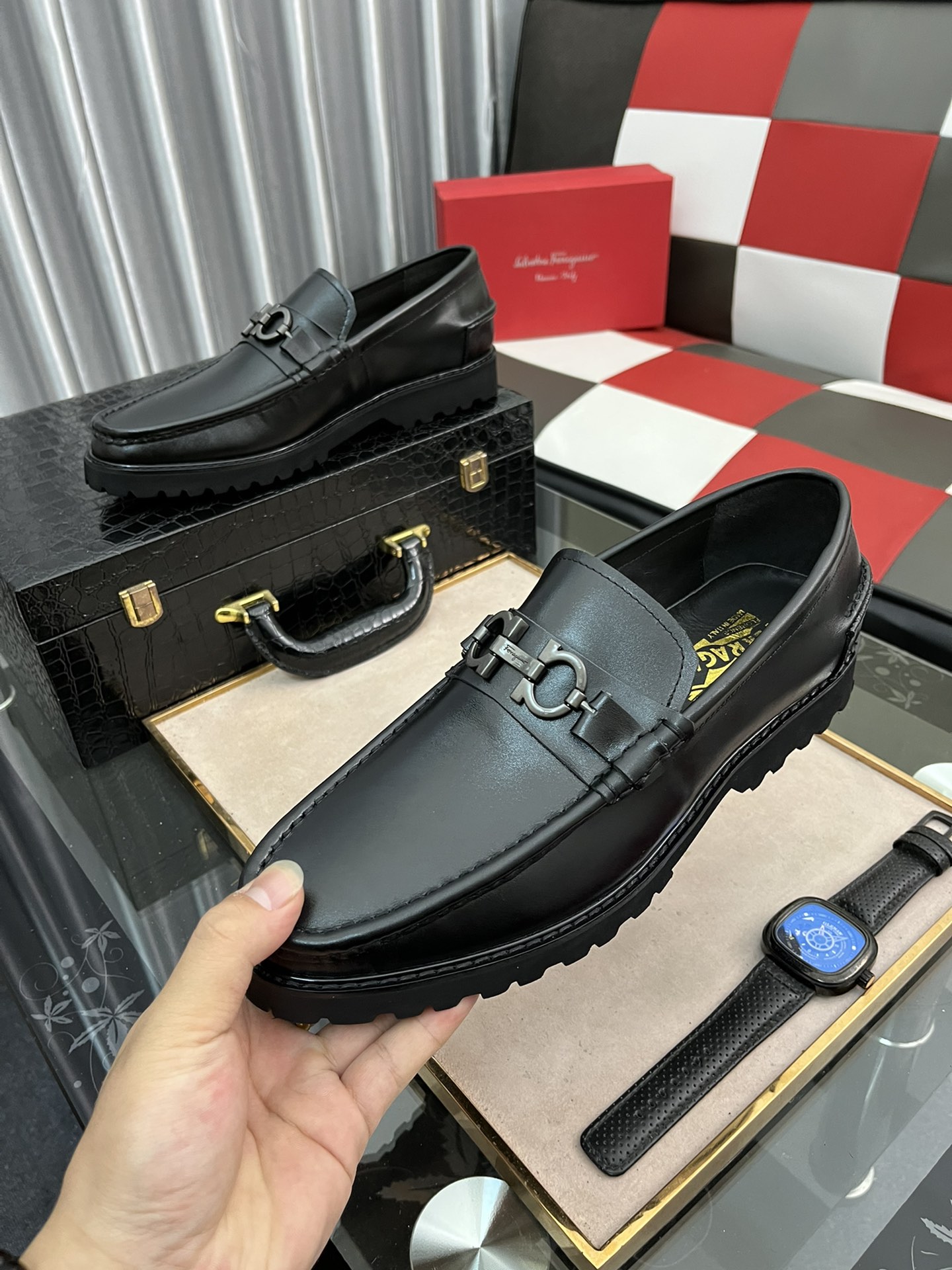 J0 菲拉格慕高端定制皮鞋 鞋面采用进口胎牛皮 原版五金 相信从您见到它的第一眼起就会有眼前一亮的感觉 大气前卫已经不能完全诠释了它的优雅 AAA级橡胶大底 超舒适 专柜原版套楦 保证了其原有版型及品质 鞋面简约 牛皮内里 保证了其舒适及透气性 一双真正的好鞋才有它特有的灵魂 名门品质 成功人士的首选 正码 38-44