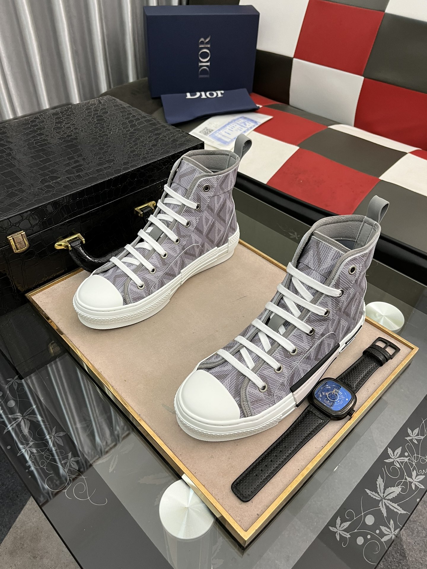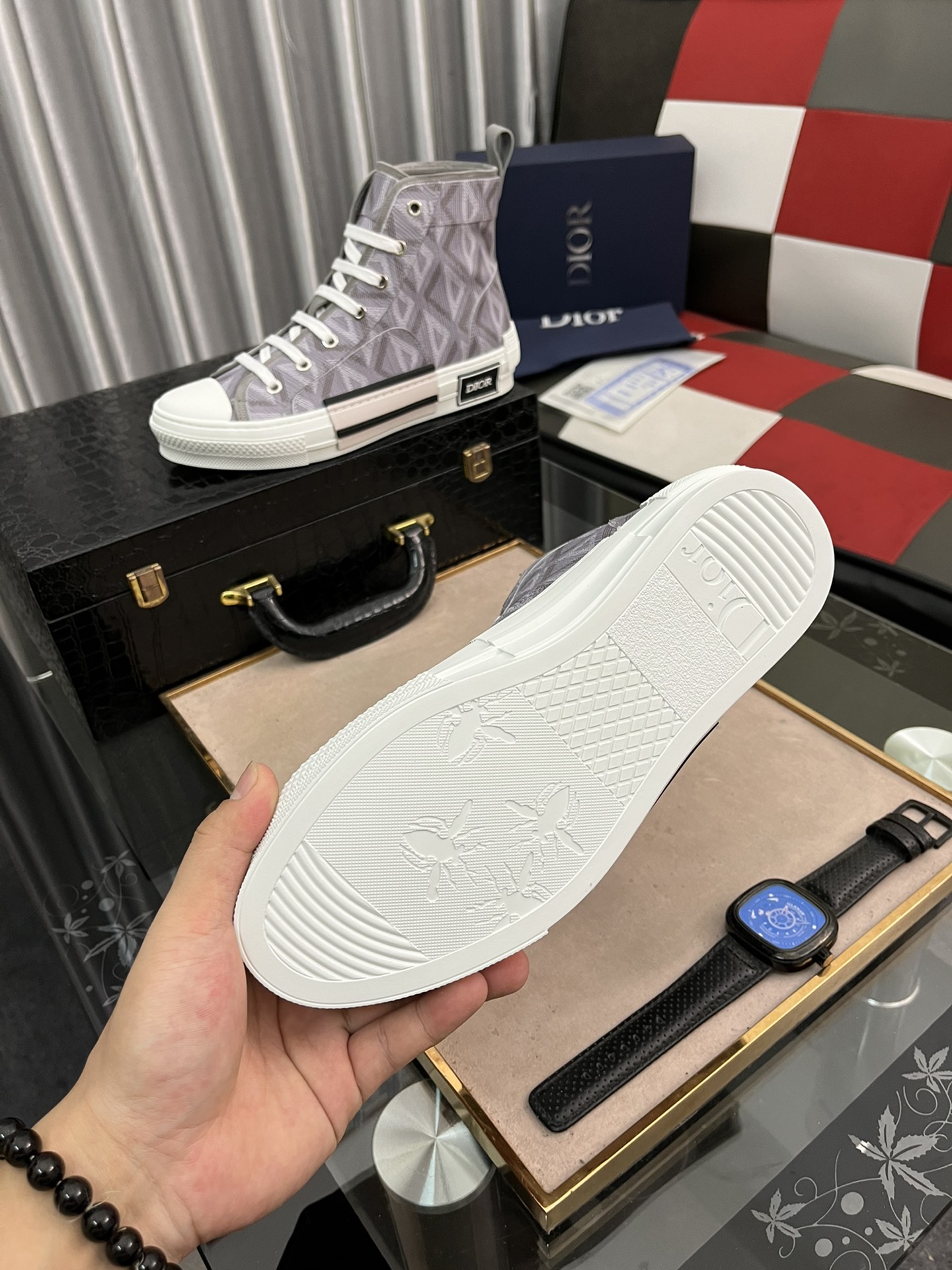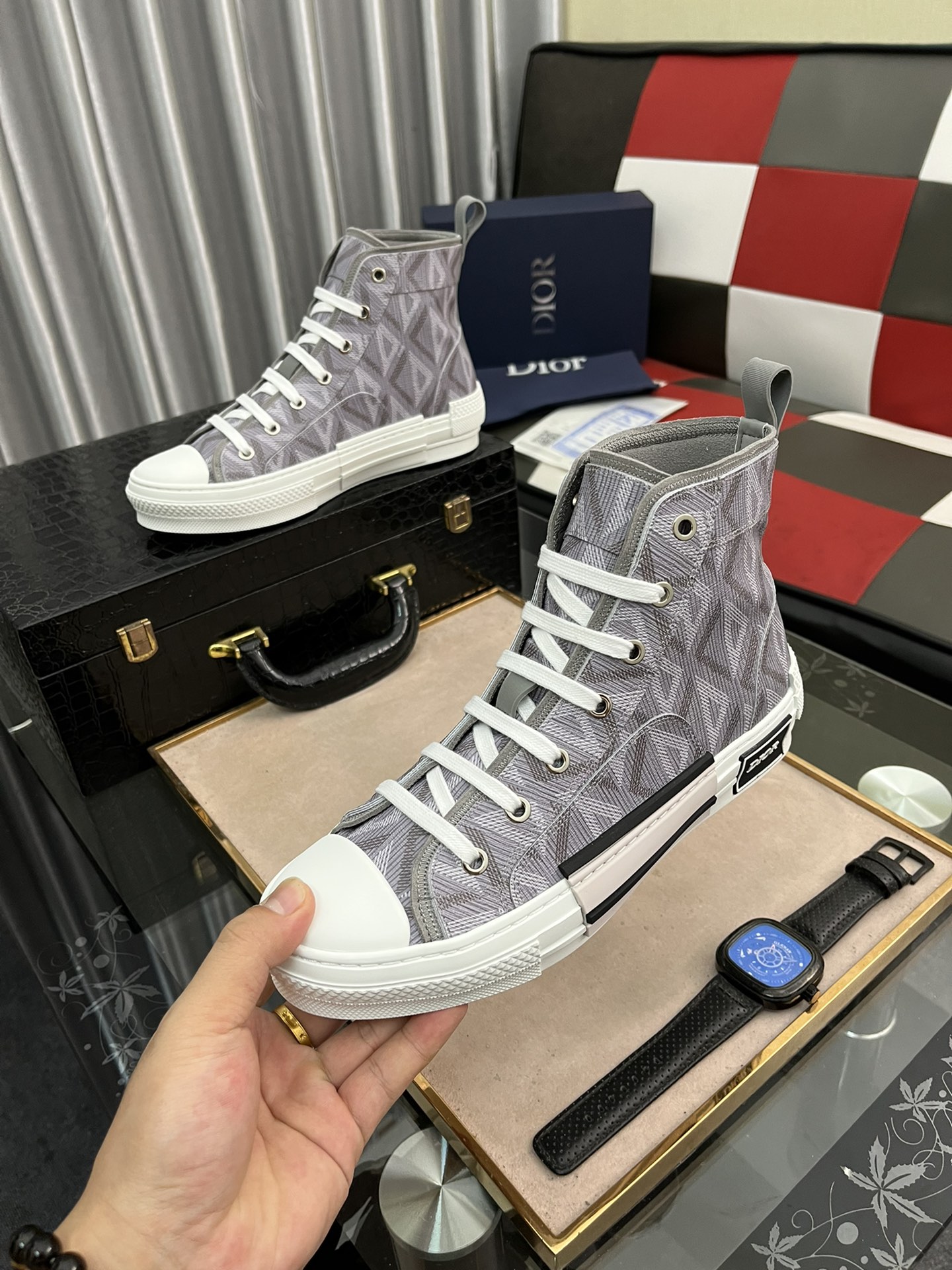 J0 高端精品 秒杀市场🆚所有版本•••新品••高帮••••Christian Dior-克里斯汀·迪奥•••专柜顶级原单货•••可随意对比🆚原版💯💯无论从楦型 材质面料 走线 以及内里材质 垫脚材质和制作工艺💯完全和正品一模一样✅••原版TPR大底size:38~443⃣️色可选