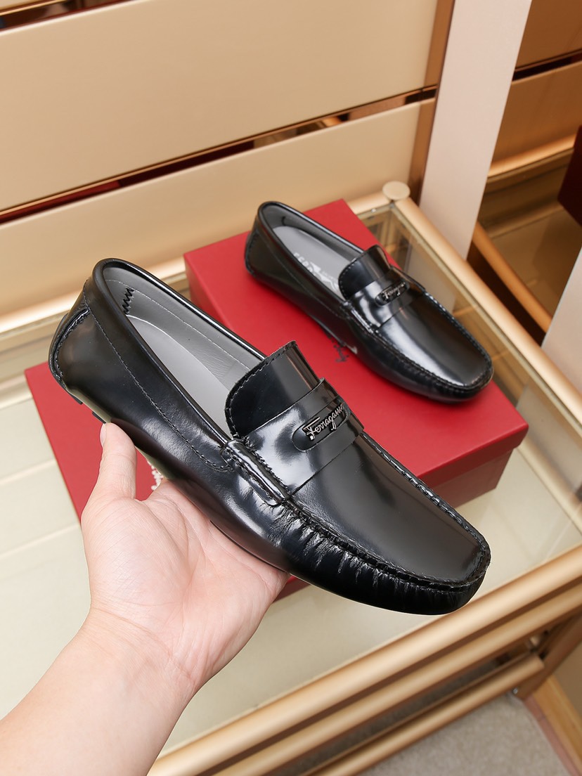 J0 🔥Ferragamo菲拉格慕 官网1比1开模,经典爆款豆豆鞋,欧美大师设计简洁高档大气,专柜品质值得信赖,面料采用开边珠牛皮➕牛皮内里做工精细,原板大底🙏上脚舒适百搭,潮男专属定制,驾车系列之首。码数:38-44