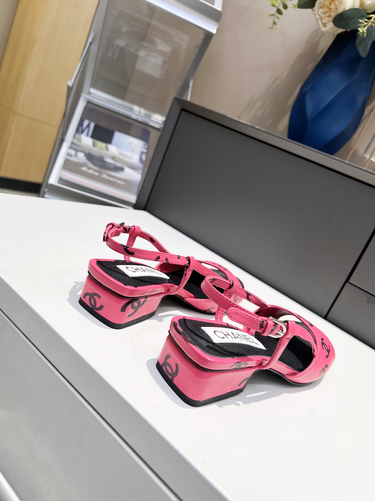 J0 Chanel 香奈儿,小香2022春夏最美凉鞋,没有之一呀不规则印花望知悉今年的走秀款,满满复古高级感,越看越好看鞋面和内里材质进口混种羊皮做小香logo打印,意大利进口大底三个高度 :3.5cm、6.5cm、7.5cm标准码:35-40