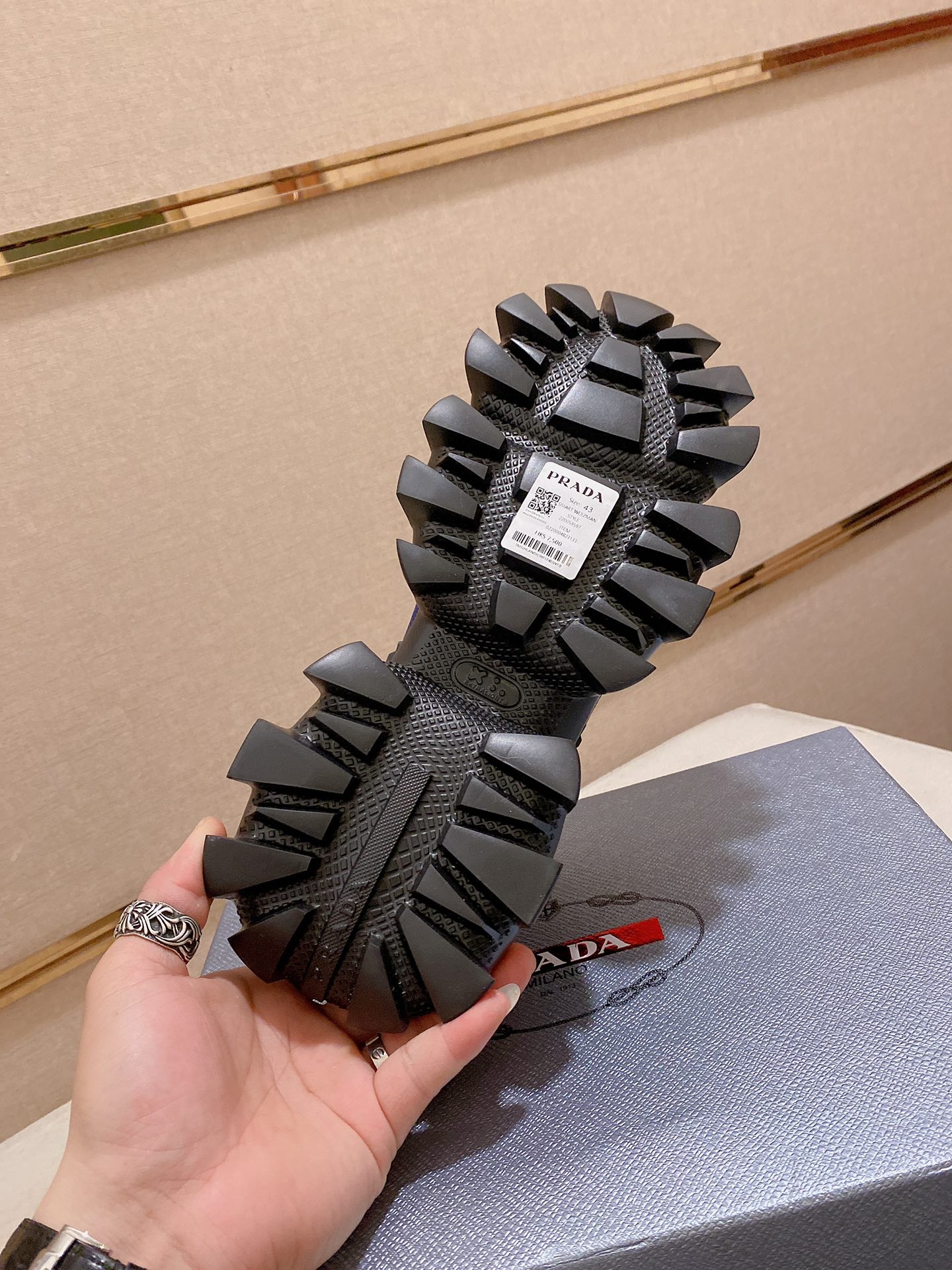 J5 高版本 高品质新 Prada 普拉达专柜同步上市, 男鞋、😘面料精选头层牛皮。内里 进口弹力网➕牛皮内里。👍🏿高端☄️开模防滑橡胶大底,精美线条、简约大气,上脚舒服上挡次、休闲旅游。码数:38一44。