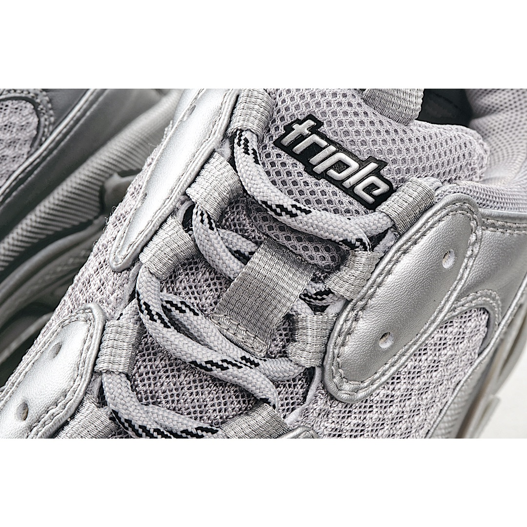 K0 巴黎世家一代 淡灰银 黑字母印花 Balenciaga 巴黎世家 1.0 初代 复古老爹鞋 原厂材质 头层磨砂牛皮 全套八层组合大底 原标原盒 正确字体电绣 粗细、位置、大小正确 TPU软底 原厂皮料水洗做旧 采购原厂网纱