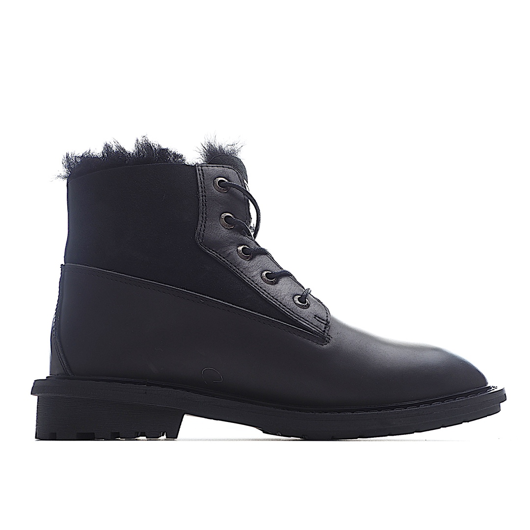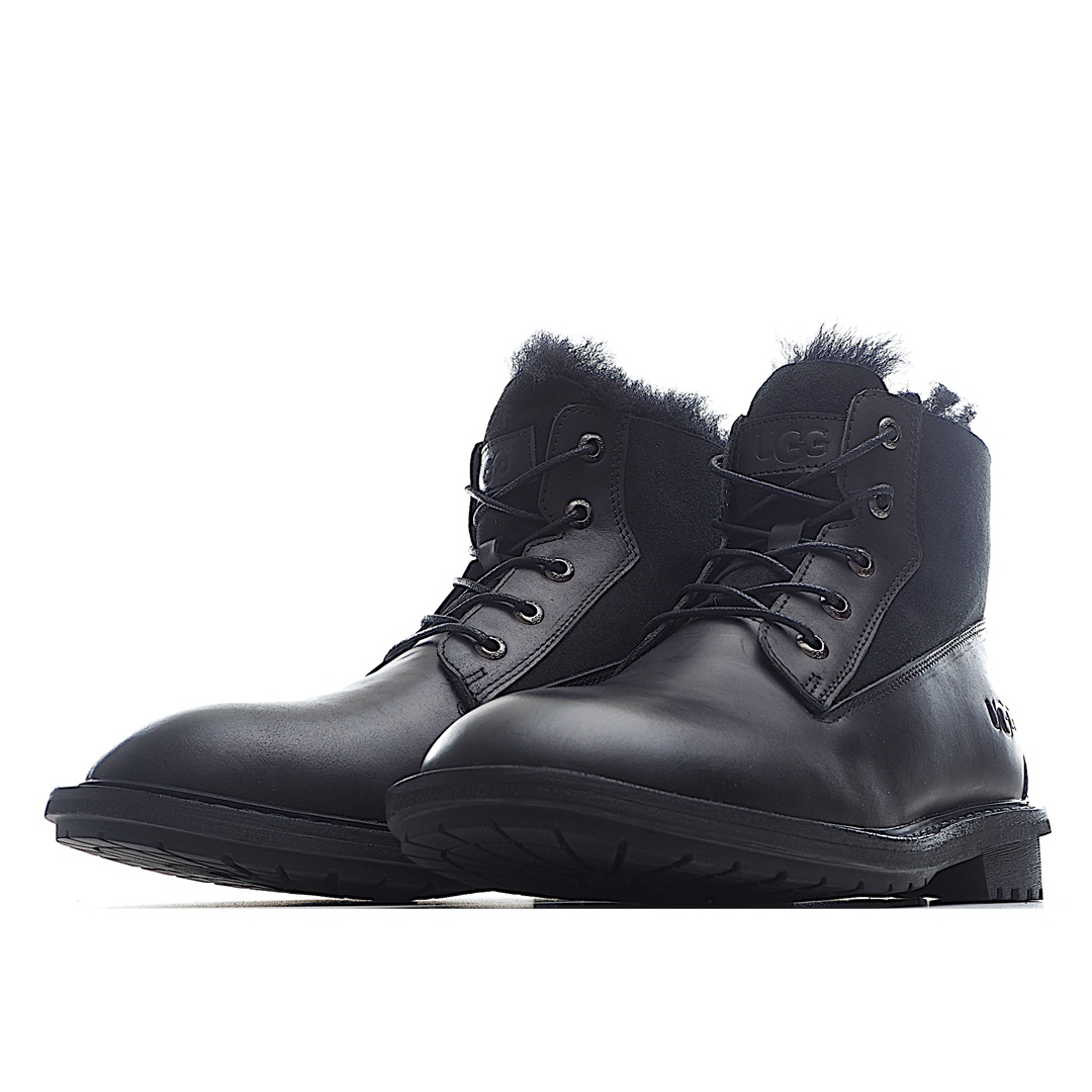 K0 澳大利亚本土品牌UGG W Ball Fy Rutton II 鲁顿二代系列女士系带皮毛一体保暖马丁加绒加厚冬季短筒机车马丁靴“皮革黑加绒”女鞋广东原产采用澳洲进口头层荔枝牛皮组合皮毛一体材质内里采用羊毛里轻便防滑橡胶发泡组合底2021FW秋冬,隐形增高显瘦