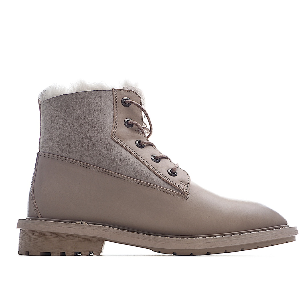 K0 澳大利亚本土品牌UGG W Ball Fy Rutton II 鲁顿二代系列女士系带皮毛一体保暖马丁加绒加厚冬季短筒机车马丁靴“皮革浅咖啡灰加绒”女鞋广东原产采用澳洲进口头层荔枝牛皮组合皮毛一体材质内里采用羊毛里轻便防滑橡胶发泡组合底2021FW秋冬,隐形增高显瘦尺码:35-40 编码:067894ksei