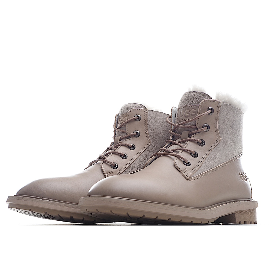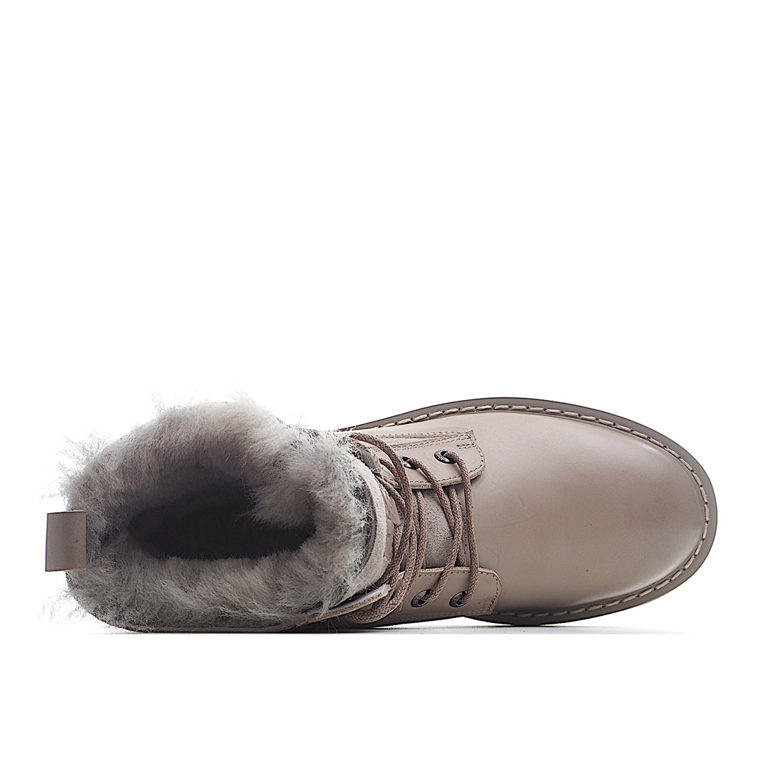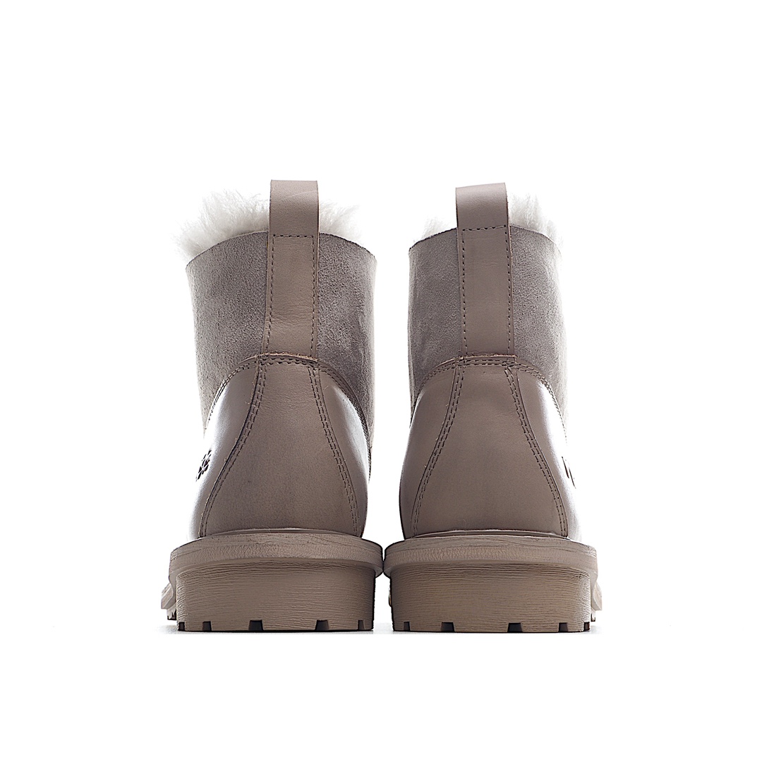 K0 澳大利亚本土品牌UGG W Ball Fy Rutton II 鲁顿二代系列女士系带皮毛一体保暖马丁加绒加厚冬季短筒机车马丁靴“皮革浅咖啡灰加绒”女鞋广东原产采用澳洲进口头层荔枝牛皮组合皮毛一体材质内里采用羊毛里轻便防滑橡胶发泡组合底2021FW秋冬,隐形增高显瘦