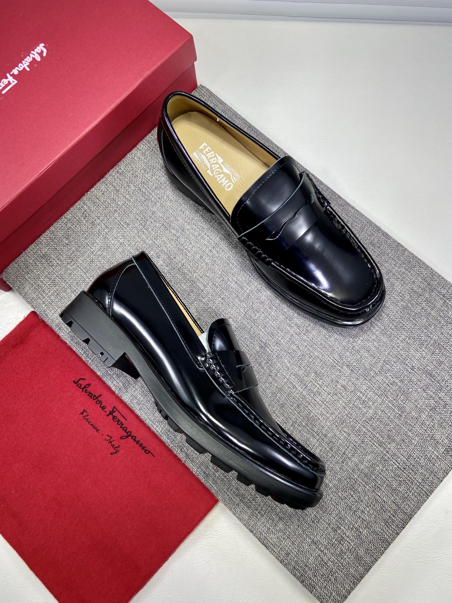 K0 顶级版本🎖Ferragamo 菲拉格慕 高端休闲男鞋🐮🐮专柜正品一比一复刻 顶级高品质👞进口〰 开边珠牛皮鞋面➕水洗牛皮内里 牛皮垫脚 原版大底⬆️配码:38~44 [定做45]