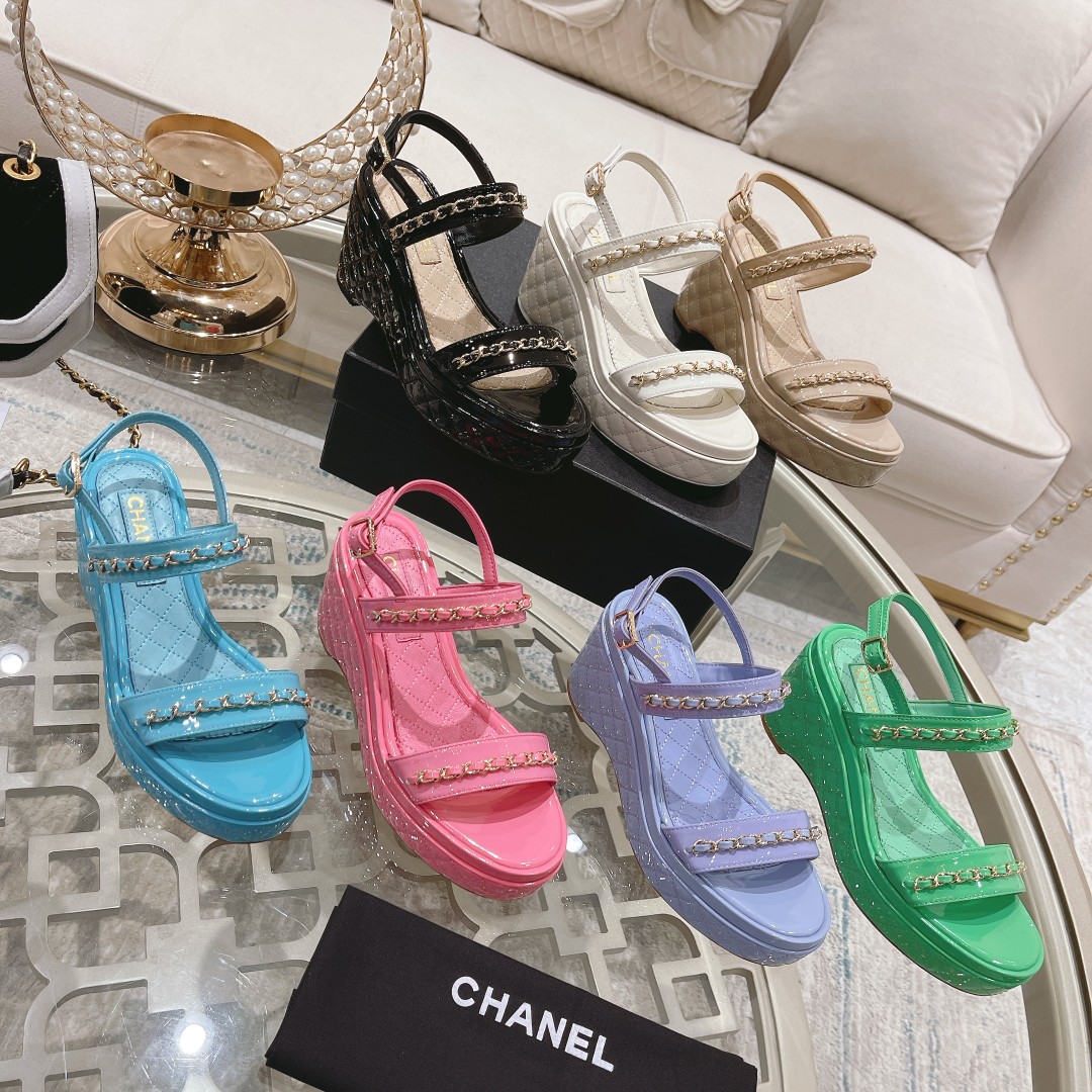 K0 Chanel 香奈儿2022坡跟马卡龙色系凉鞋 顶级走秀系列凉鞋✔春夏主季打款,超爆级款的节奏出行必单备品随意搭配么怎穿都好看💕 ▫️意大利原版进口牛漆皮面料➕羊皮里+电绣防水台,值得收鞋入柜的一款美鞋👉实超物级美💃🏻▫️Size:35-4034、41定做不退换P.S:因手工复杂,出货慢,不接急单。