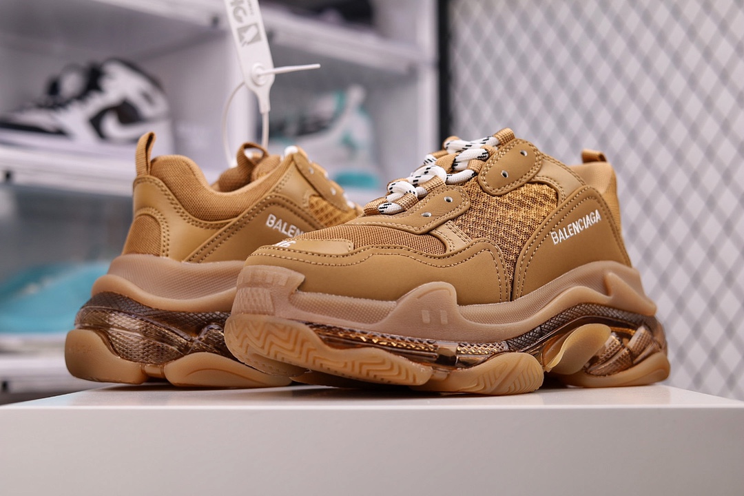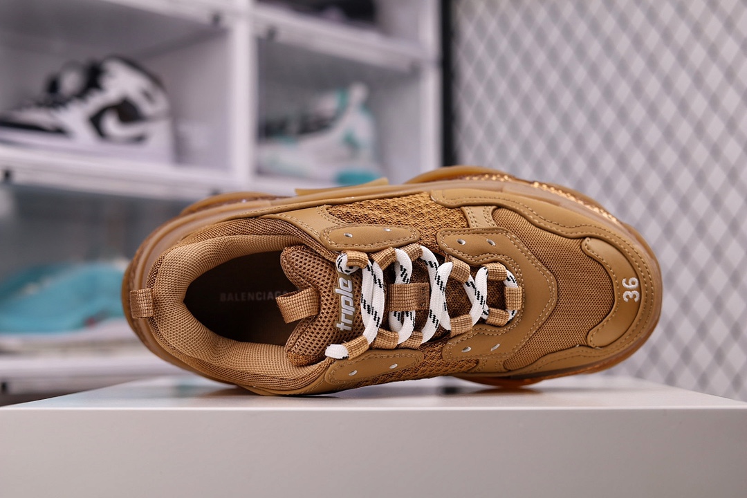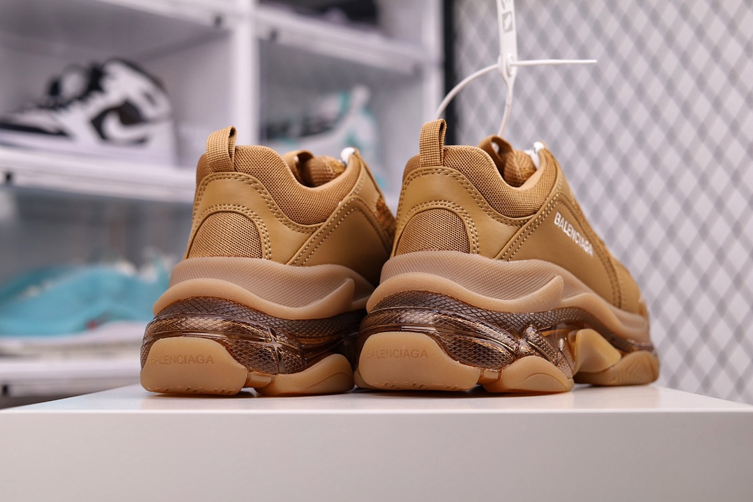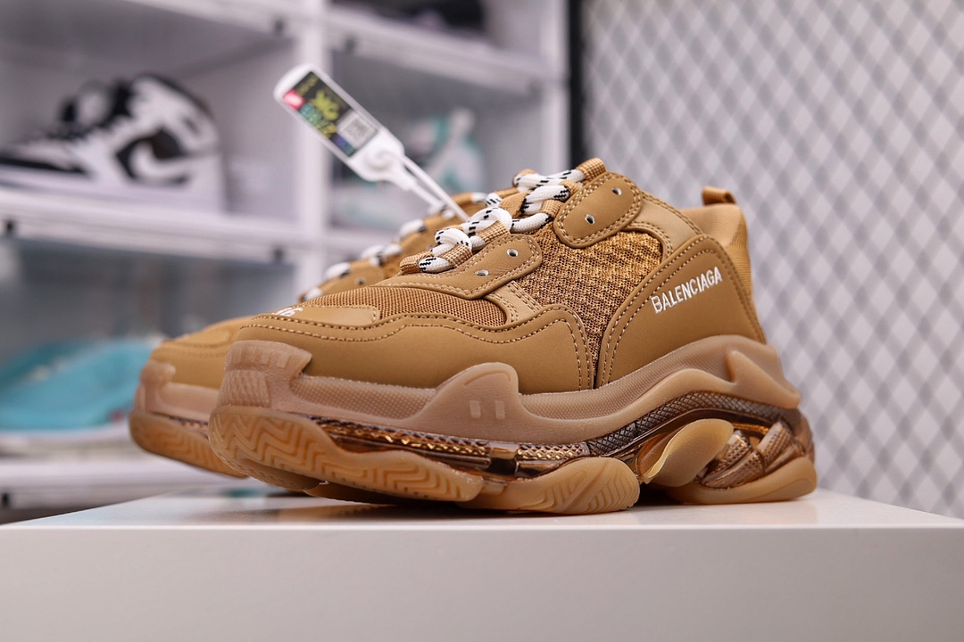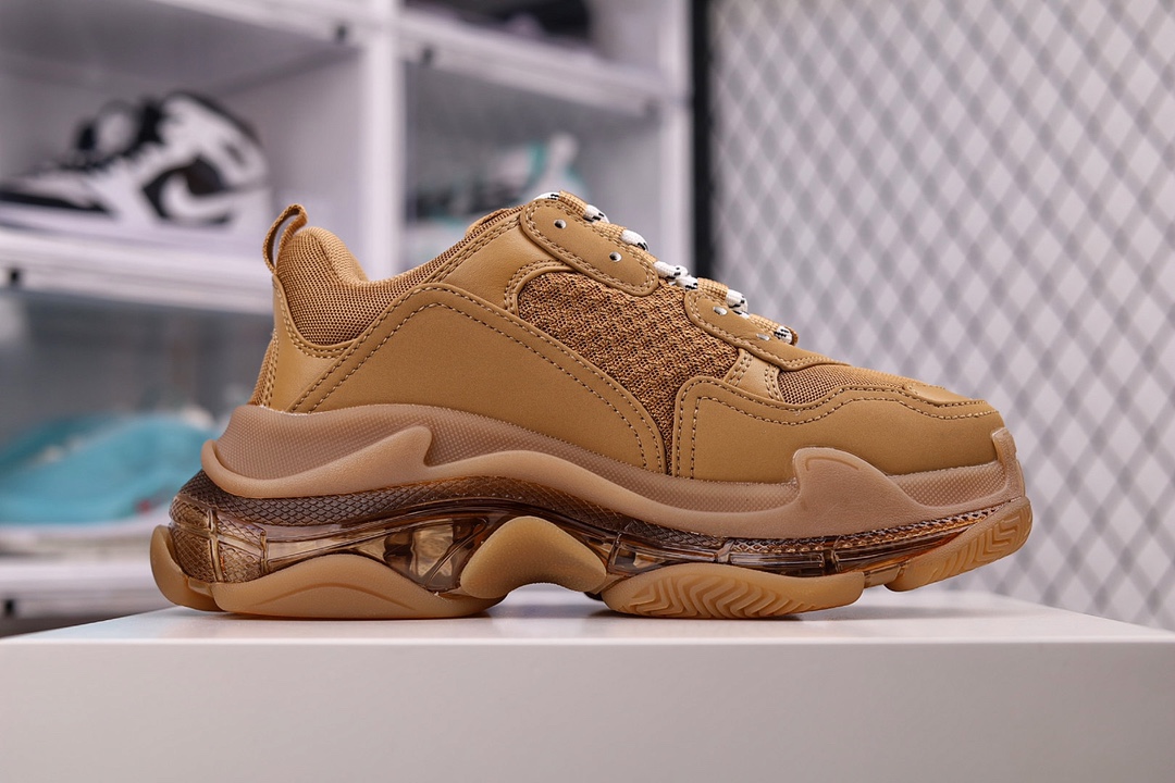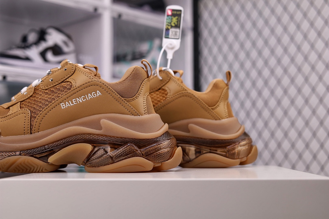 K0 OK纯原版 男女鞋真标原盒原装配置全部采用原档案原楦数据开发版型六层组合底部进口透气网眼布❗高奢品牌,巴黎世家Balenciaga Triple S Clear Sole Sneaker”Brown/White LOGO”时装复古厚底增高百搭休闲运动姥爷球鞋“气垫深棕白LOGO”544351 W2GA1 J0 6