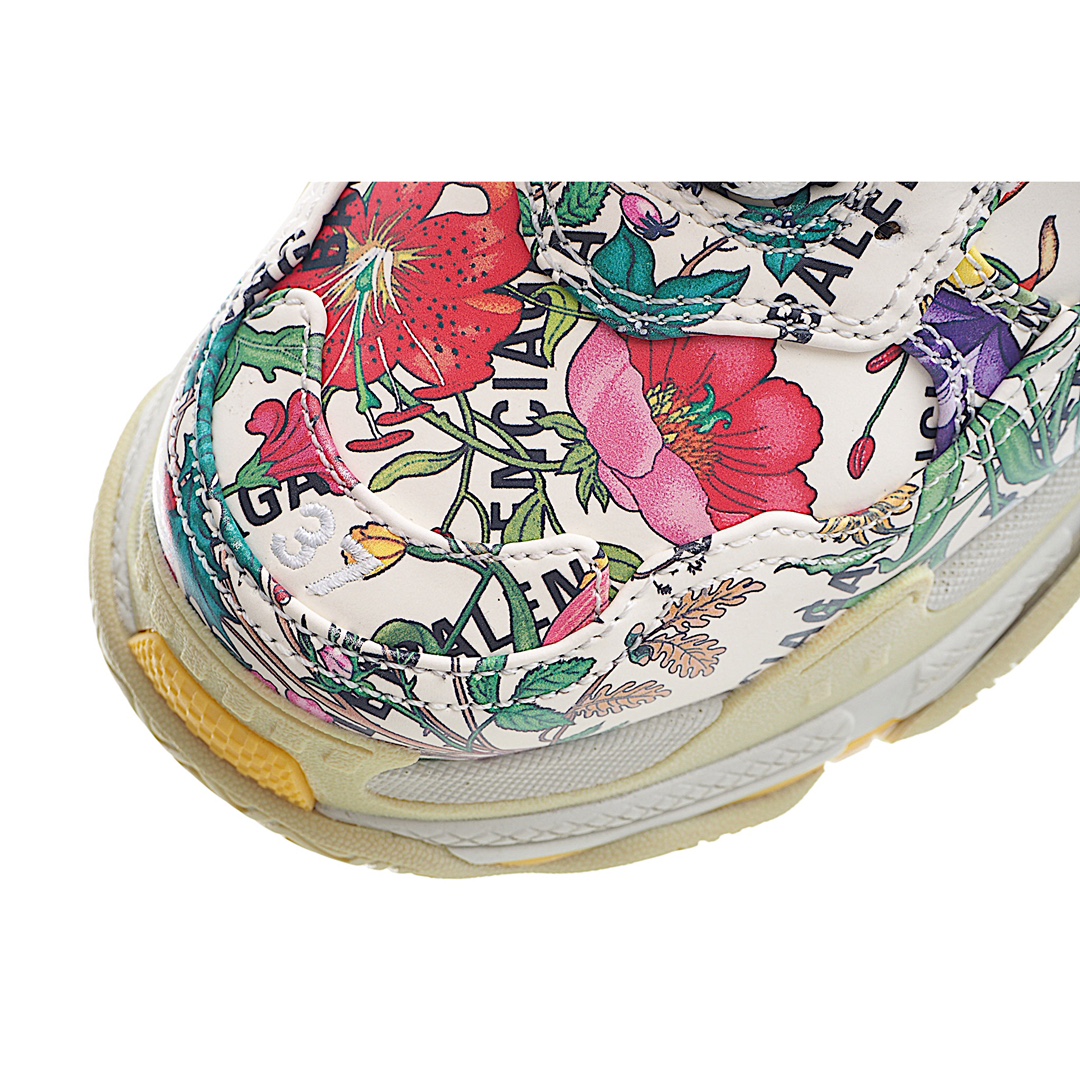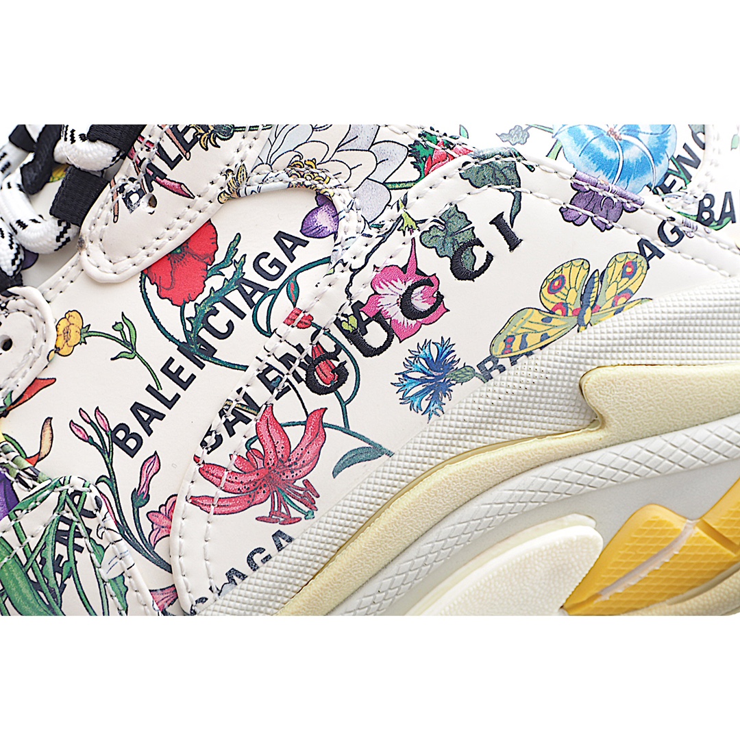 Ok扫描版本纯原正确版本Balenciaga 巴黎世家TRIPLE S 古驰CUCCI 联名花卉款 突破不可能 首发原底八层组合巴黎世家不做任何对比 眼见为实 组合细节最接近原版原底八层组合 首家实现原档电绣同步公司 字体对位不连线 TPU原模亮底 透气孔厚度均匀 完美公司玩家 艺术家 欢迎细节鉴赏