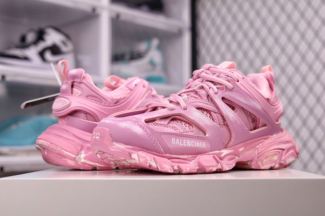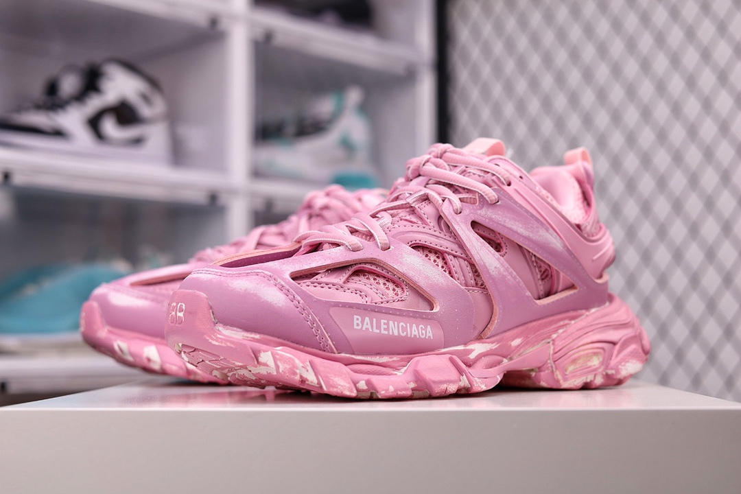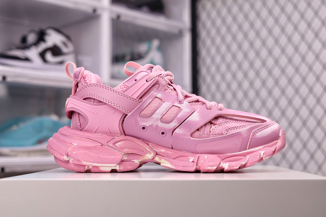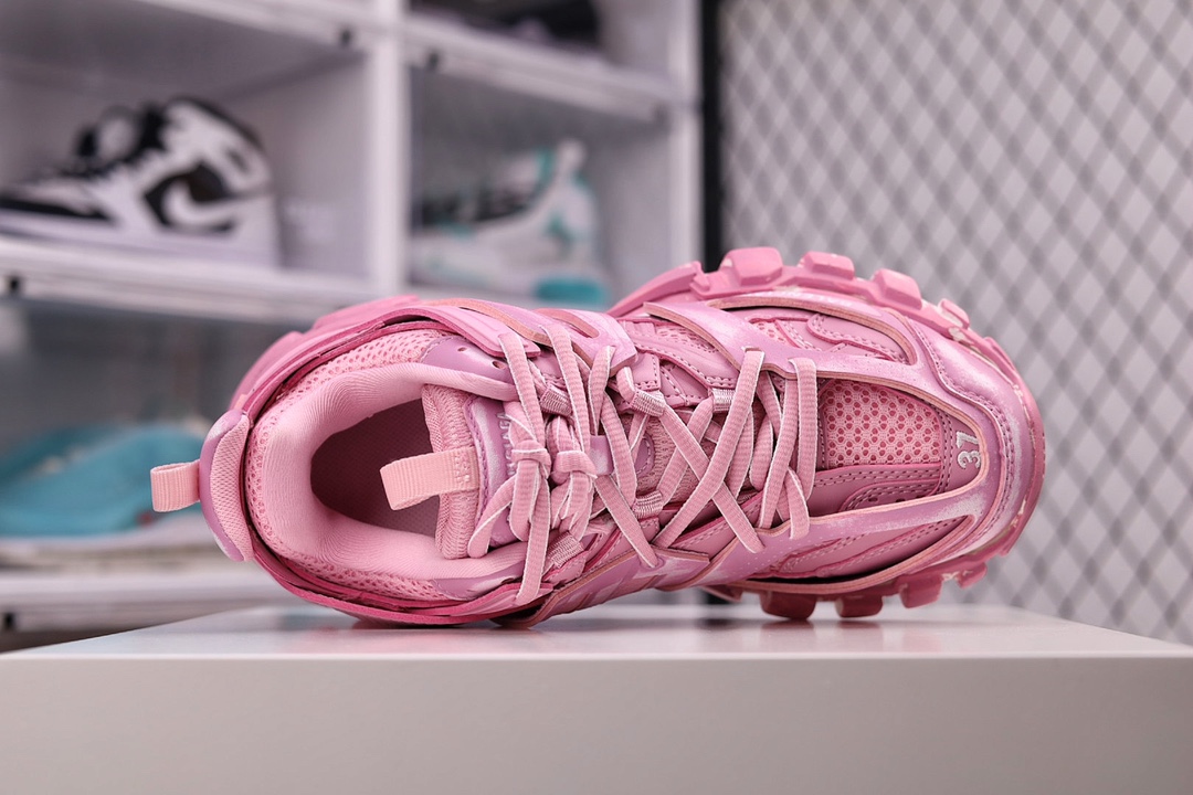OK纯原版本 男女鞋原版一致配件防尘袋及附送鞋带全部采用原档案原楦数据开发1:1比例克重原装全掌升级乳胶鞋垫设计市面最为正确东莞代工原底部❗高奢品牌-巴黎世家Balenciaga Track Trainers 3.0代复古野跑姥爹潮流百搭慢跑鞋“浅粉做旧擦色”542436 W3CN2 5000尺码:35-46