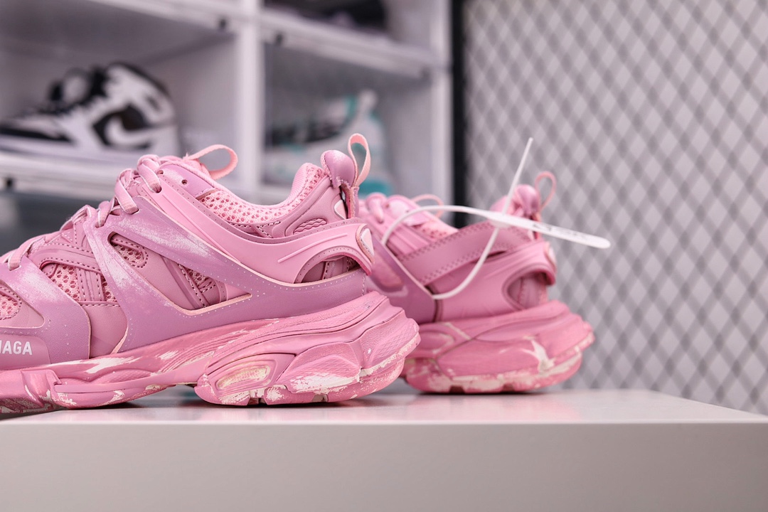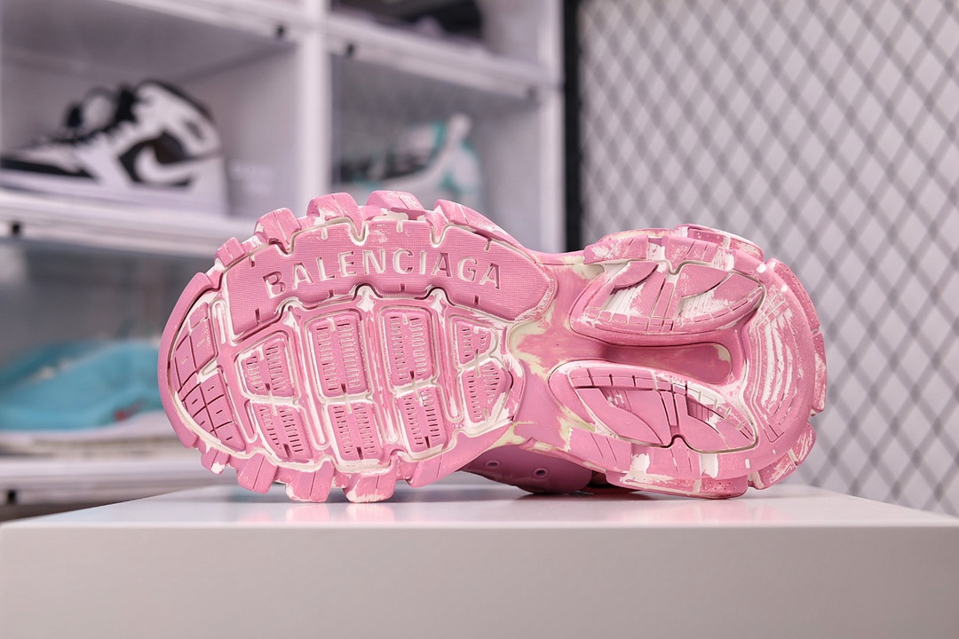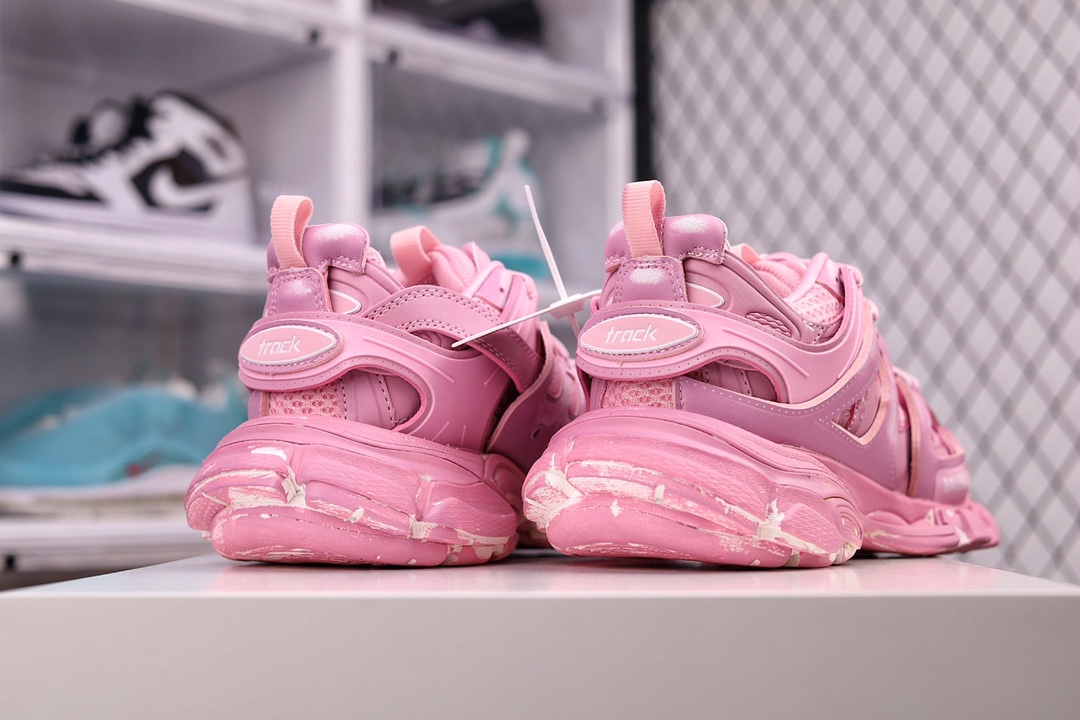 OK纯原版本 男女鞋原版一致配件防尘袋及附送鞋带全部采用原档案原楦数据开发1:1比例克重原装全掌升级乳胶鞋垫设计市面最为正确东莞代工原底部❗高奢品牌-巴黎世家Balenciaga Track Trainers 3.0代复古野跑姥爹潮流百搭慢跑鞋“浅粉做旧擦色”542436 W3CN2 5000