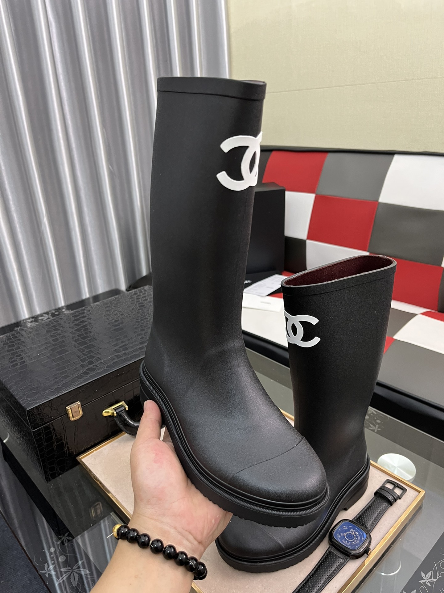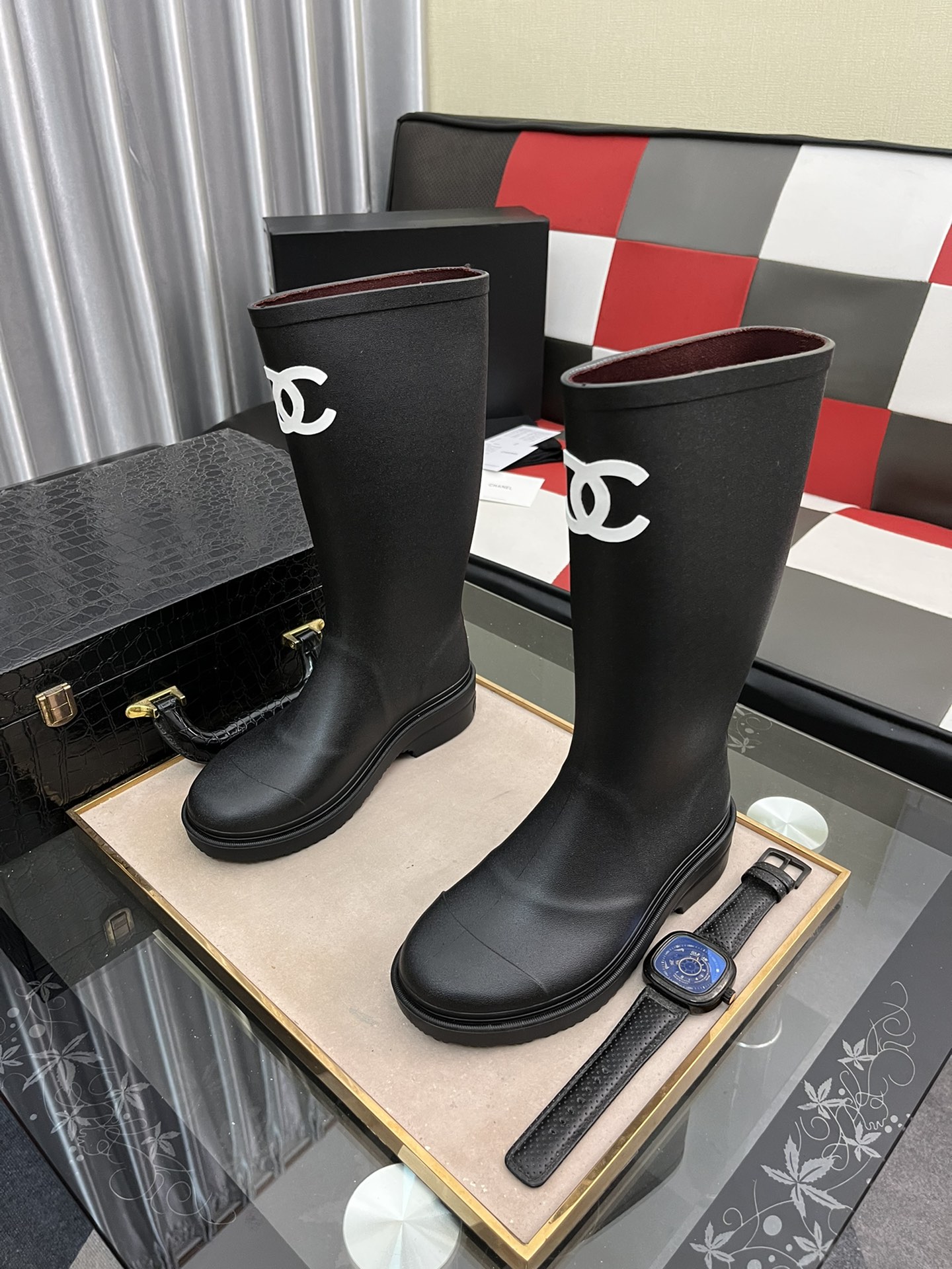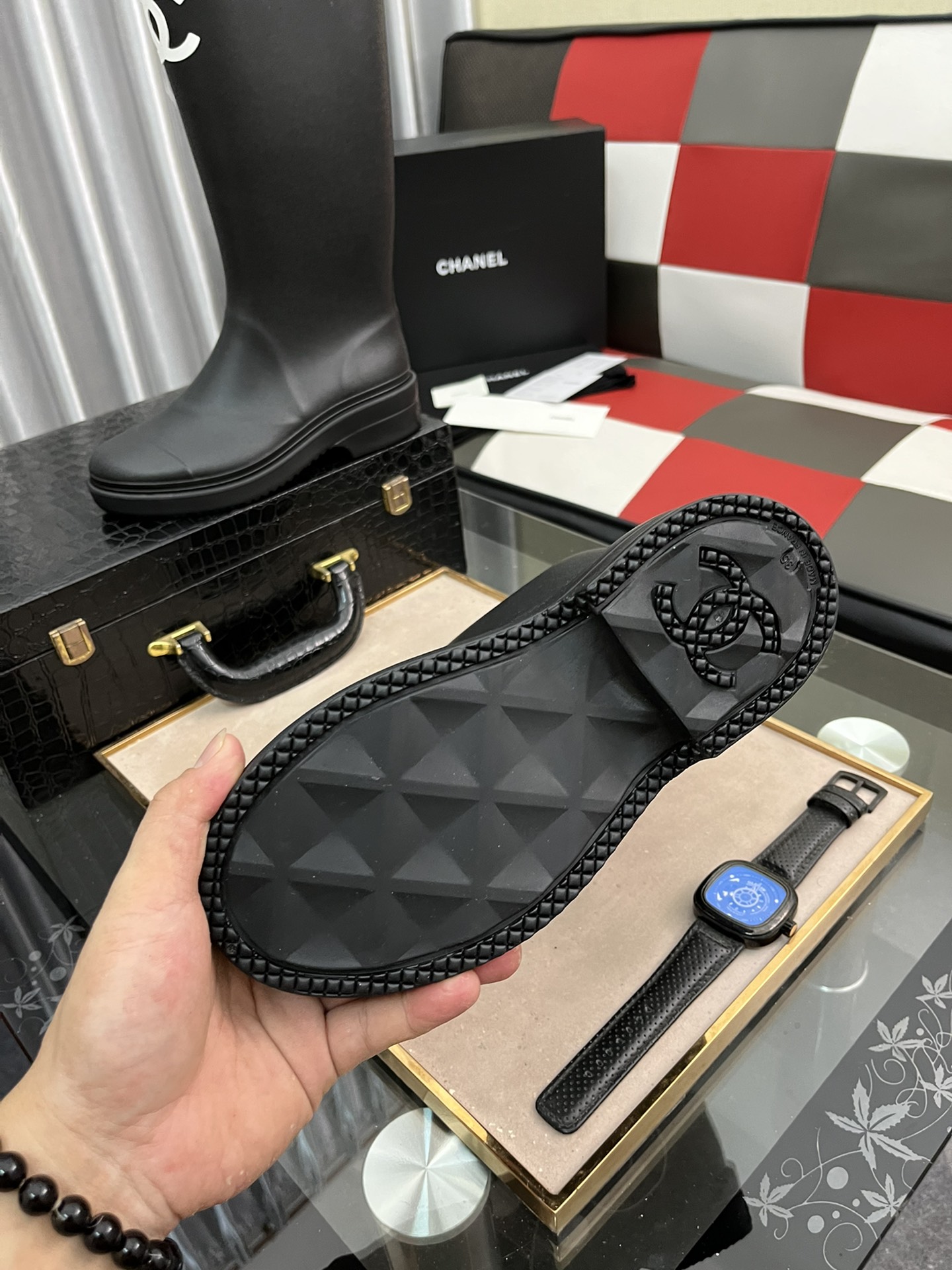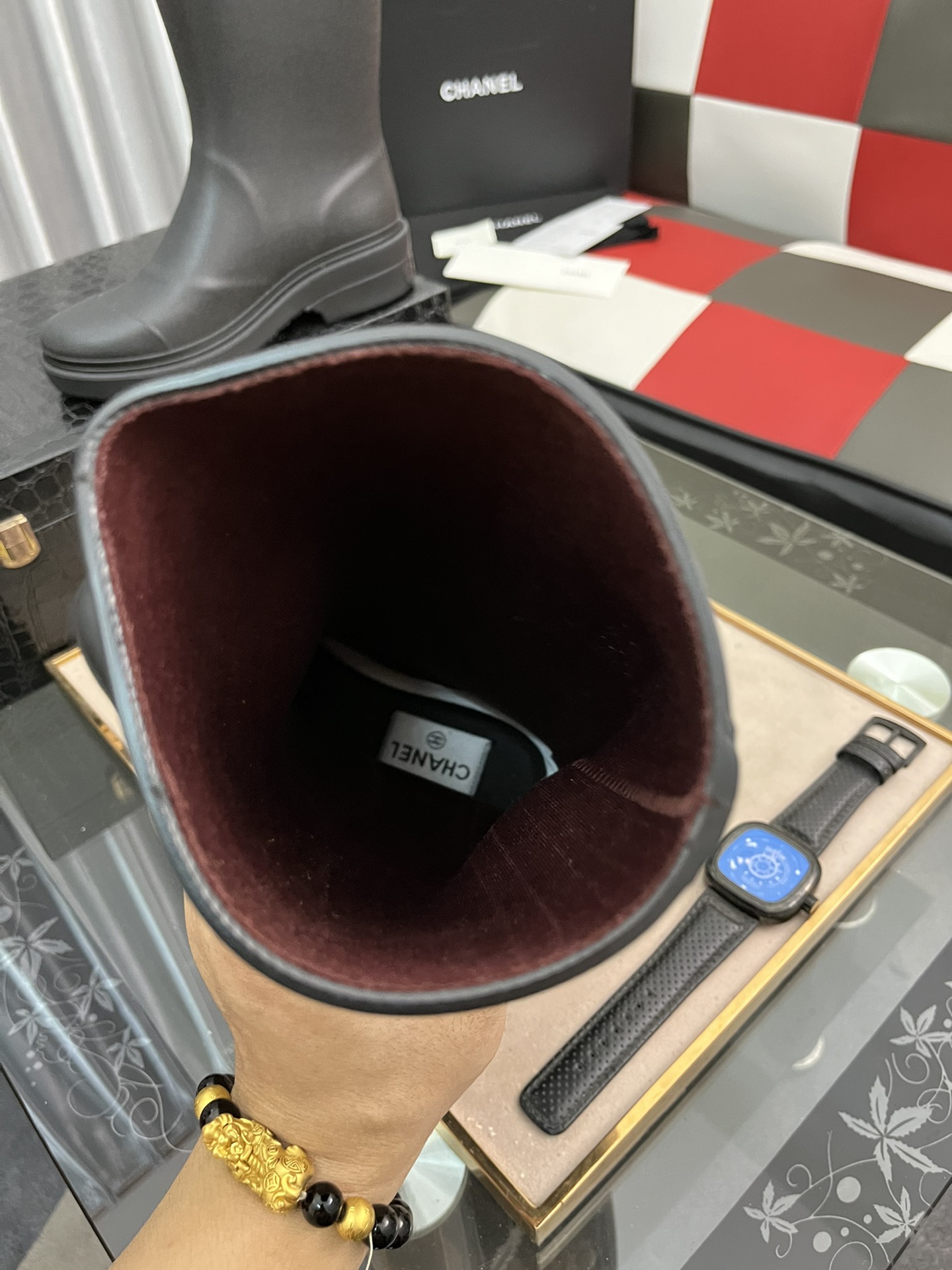 J0 女款香奈儿2022CHANEL官网同步最高靴 代购级别品质原版材料 5公分小粗跟 自带增高瘦腿效果上脚相当百搭秀气&鞋面:全粒面牛皮\/皮拼接布料&内里\/垫脚:进口羊皮&跟高: 5CM 筒高:15寸 &