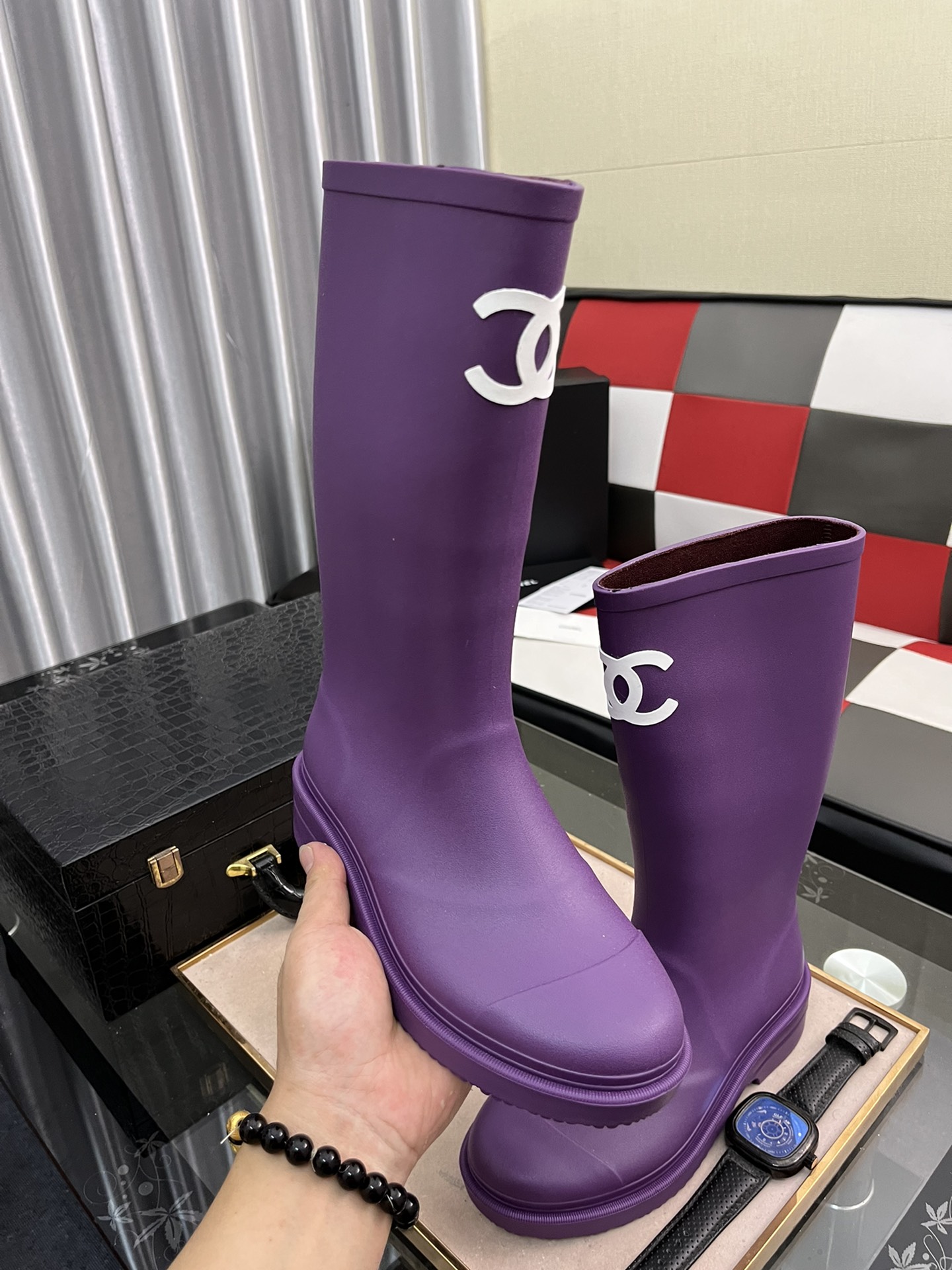 J0 女款香奈儿2022CHANEL官网同步最高靴 代购级别品质原版材料 5公分小粗跟 自带增高瘦腿效果上脚相当百搭秀气&鞋面:全粒面牛皮\/皮拼接布料&内里\/垫脚:进口羊皮&跟高: 5CM 筒高:15寸 &Size:35–4041订做不退换5色可选