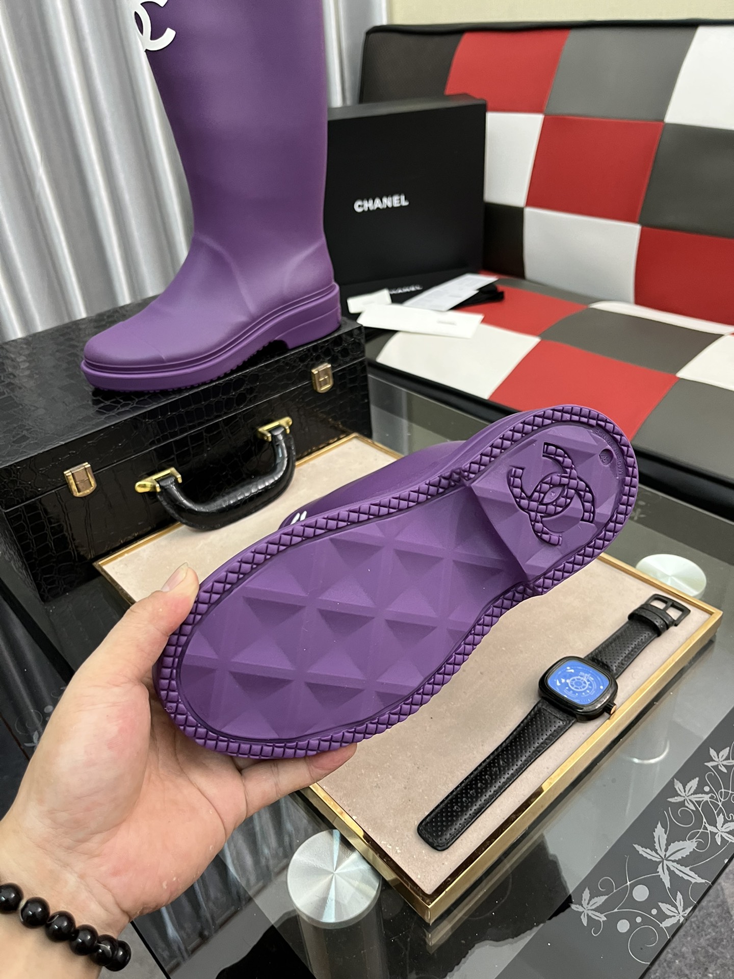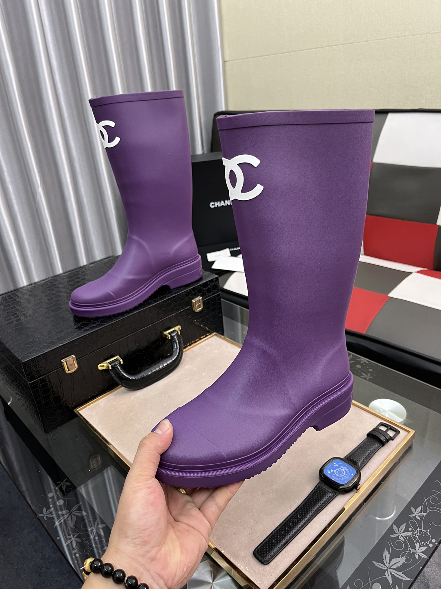 J0 女款香奈儿2022CHANEL官网同步最高靴 代购级别品质原版材料 5公分小粗跟 自带增高瘦腿效果上脚相当百搭秀气&鞋面:全粒面牛皮\/皮拼接布料&内里\/垫脚:进口羊皮&跟高: 5CM 筒高:15寸 &