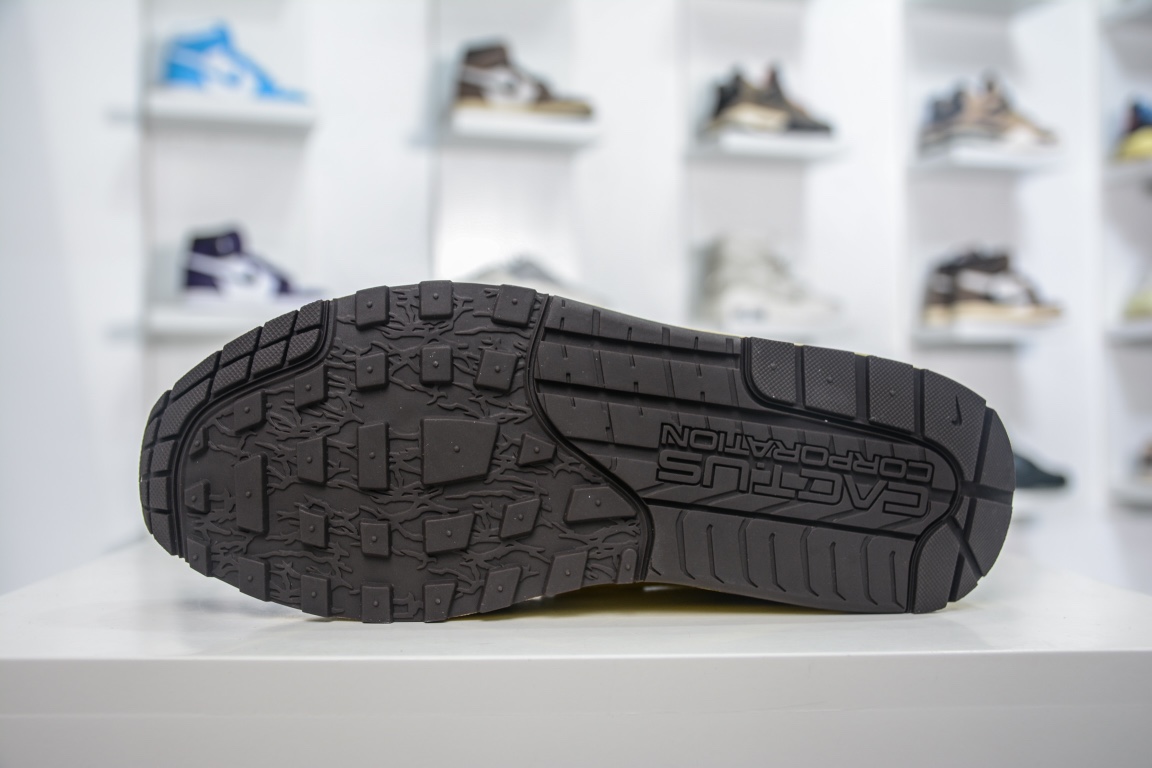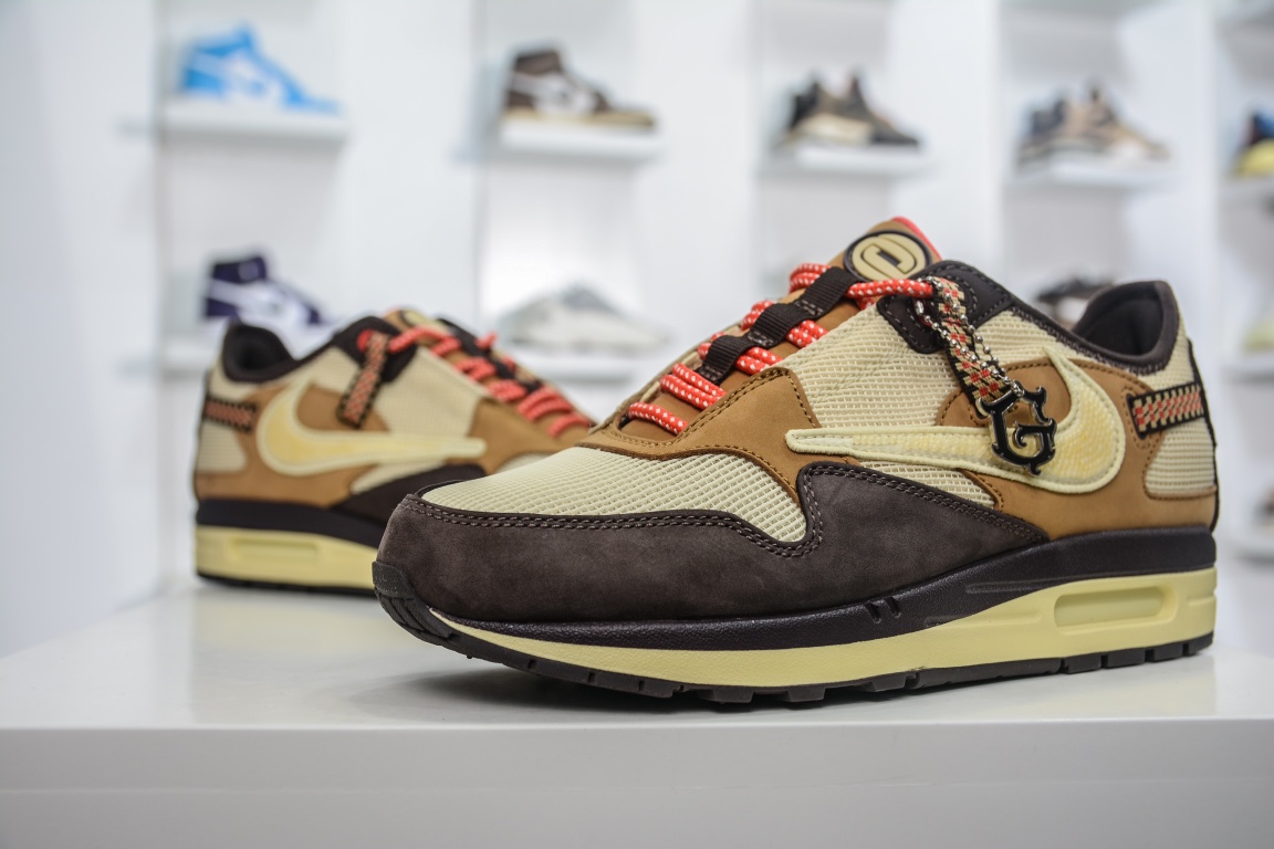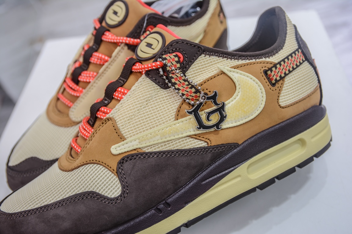独家顶级纯原G版出货Travis Scott x Nike Air Max 1 “Baroque Brown”倒钩联名 卡其棕市面唯一进口原厂皮料打造独家原厂大底 正确气压气垫原厂绣珠排列细节 完美还原原鞋正确钩子弧度 裁片定位精准鞋型自观 目前市面天花板 上万提前原鞋拆开对版 高端玩家不二选择