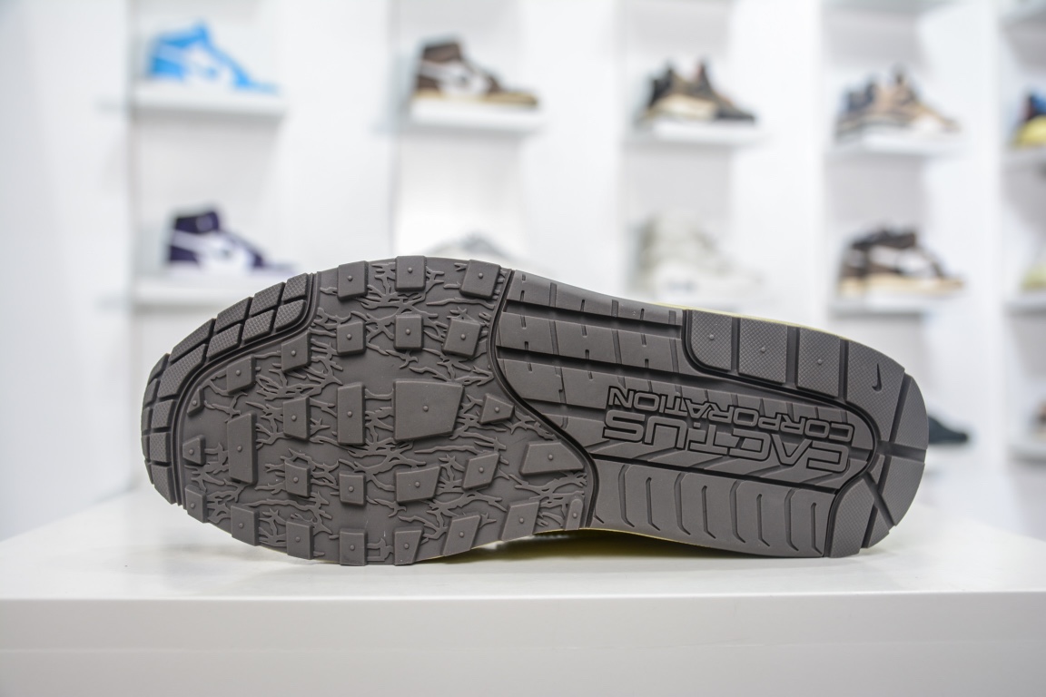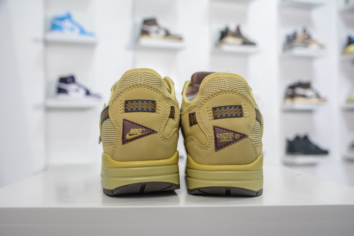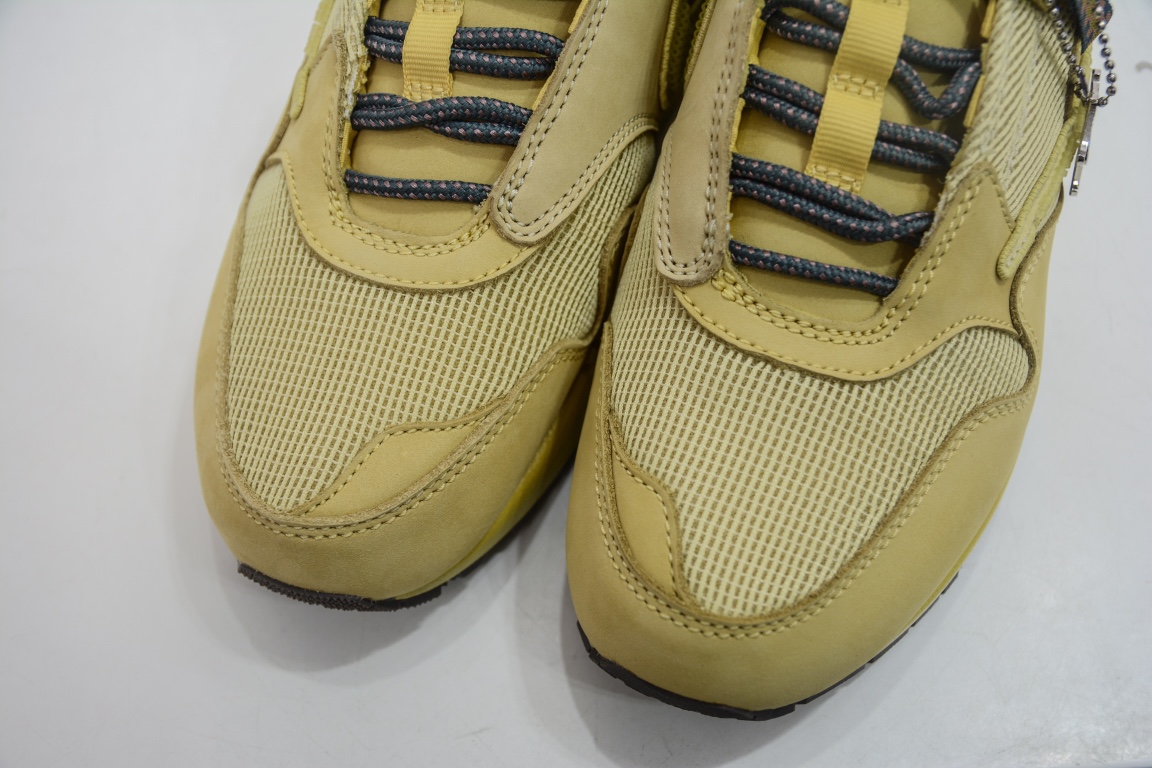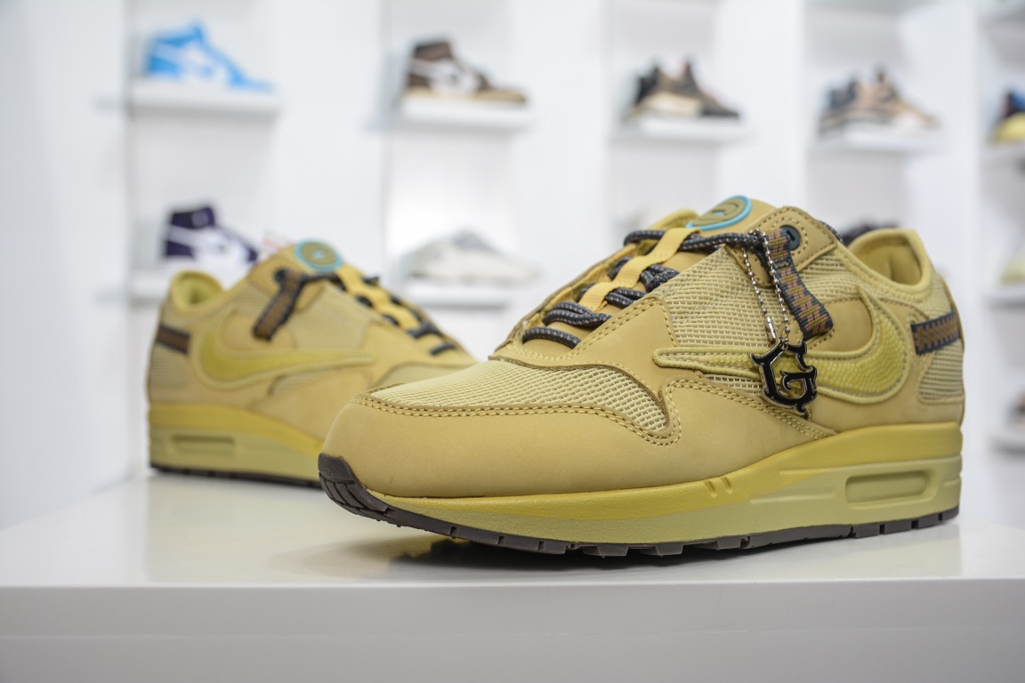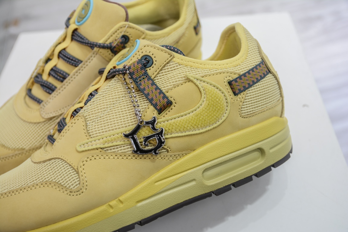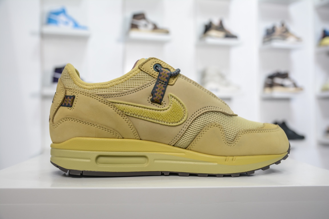独家顶级纯原G版出货Travis Scott x Nike Air Max 1 “Saturn Gold”倒钩联名 小麦色市面唯一进口原厂皮料打造独家原厂大底 正确气压气垫原厂绣珠排列细节 完美还原原鞋正确钩子弧度 裁片定位精准鞋型自观 目前市面天花板 上万提前原鞋拆开对版 高端玩家不二选择