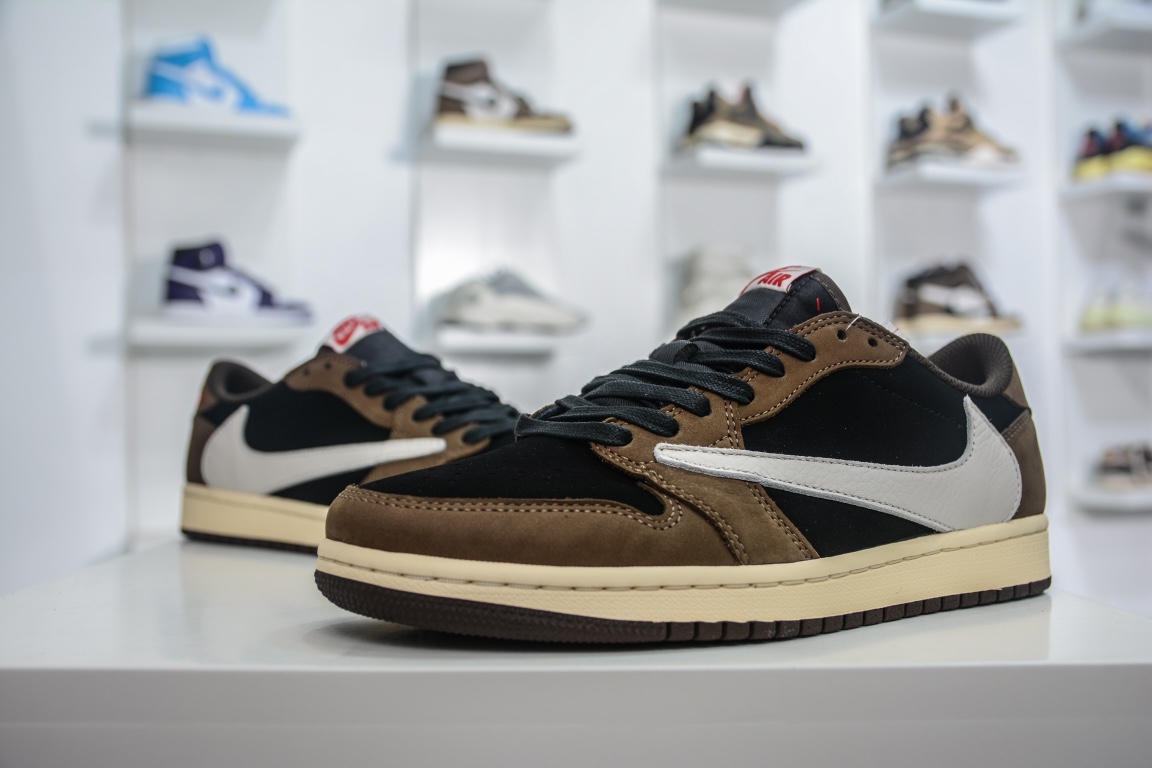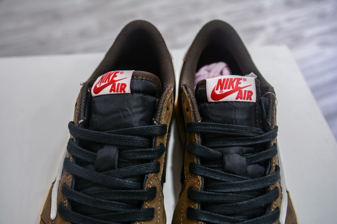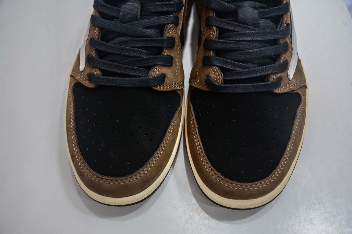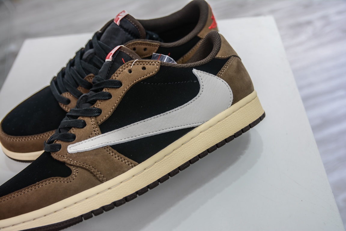 结算 G0 Dt纯原版本Travis Scott x Jordan 1 low AJ 1 OG 倒钩 反钩鬼脸低帮 客订原厂皮料 纹路质感和光线感与原这鞋一致 原鞋数据开发 原版后跟刺绣 拉帮线注胶孔