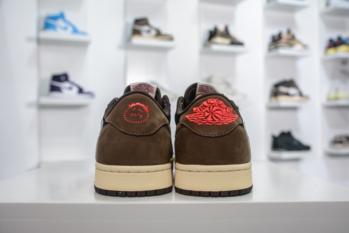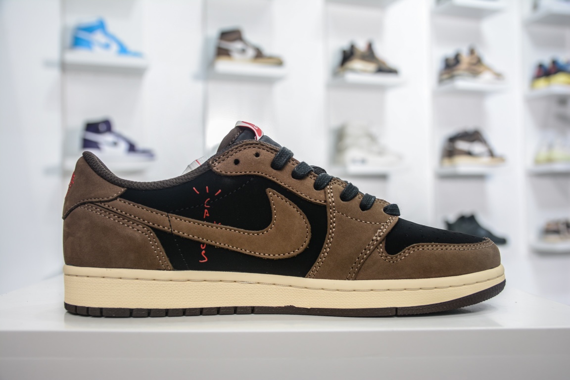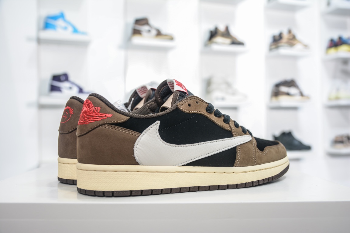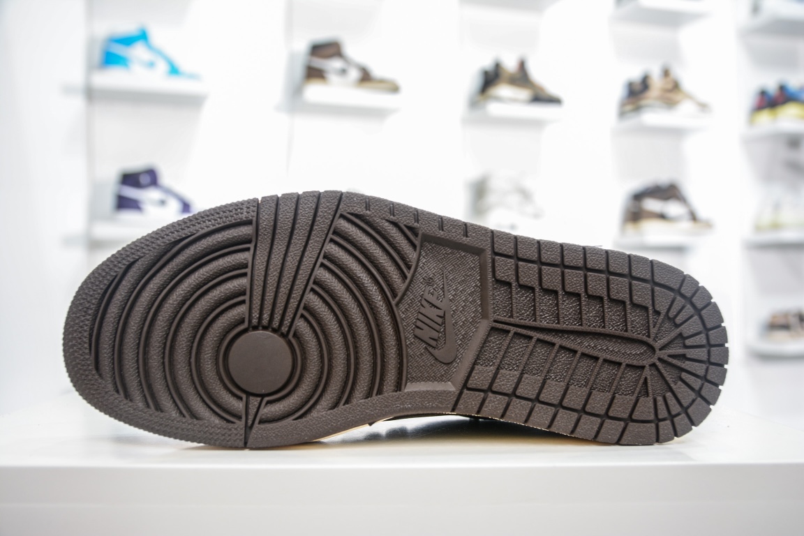 结算 G0 Dt纯原版本Travis Scott x Jordan 1 low AJ 1 OG 倒钩 反钩鬼脸低帮 客订原厂皮料 纹路质感和光线感与原这鞋一致 原鞋数据开发 原版后跟刺绣 拉帮线注胶孔