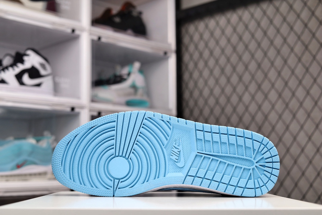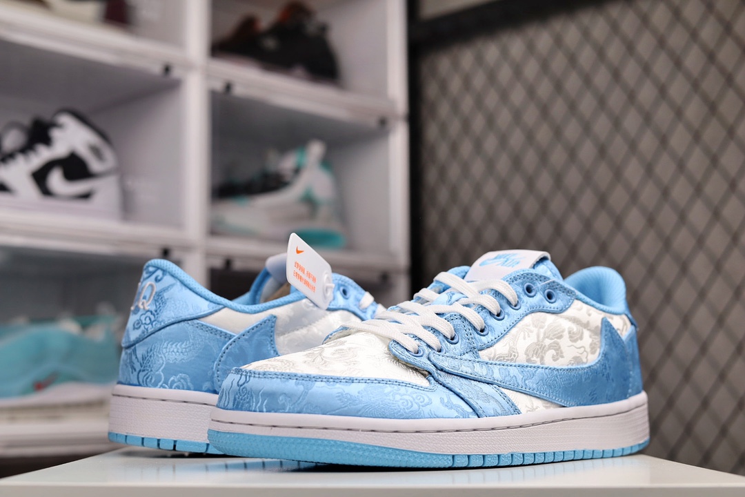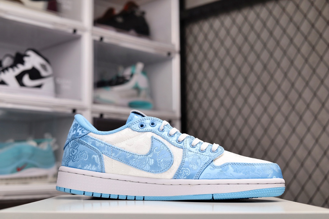 G0 公司级 Air Jordan 1 Retro High OG 蓝丝绸倒勾 低帮 AJ1 乔丹1代 aj1 乔1 反向脚趾。亮点之处在于鞋侧的倒置 Swoosh。错版灵感来源于洛杉矶球鞋店铺收到一双特别的错版勾子倒过来,研发出反向勾的设计。