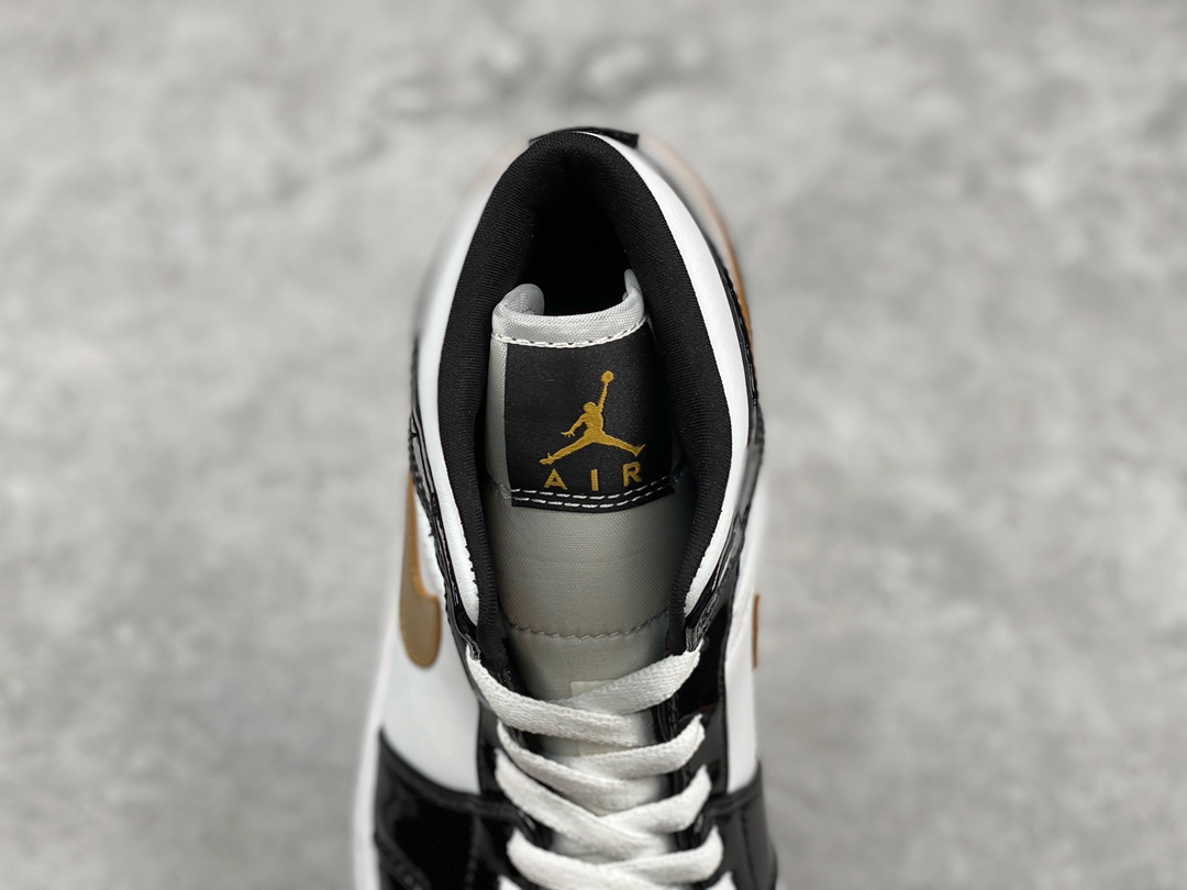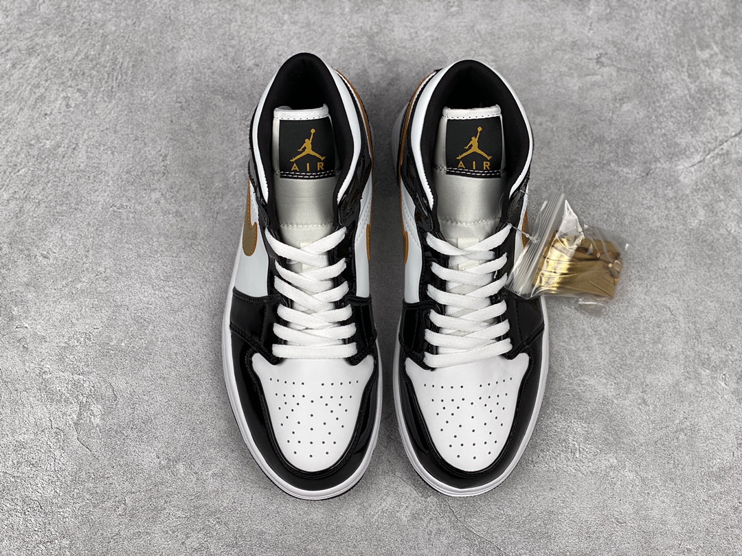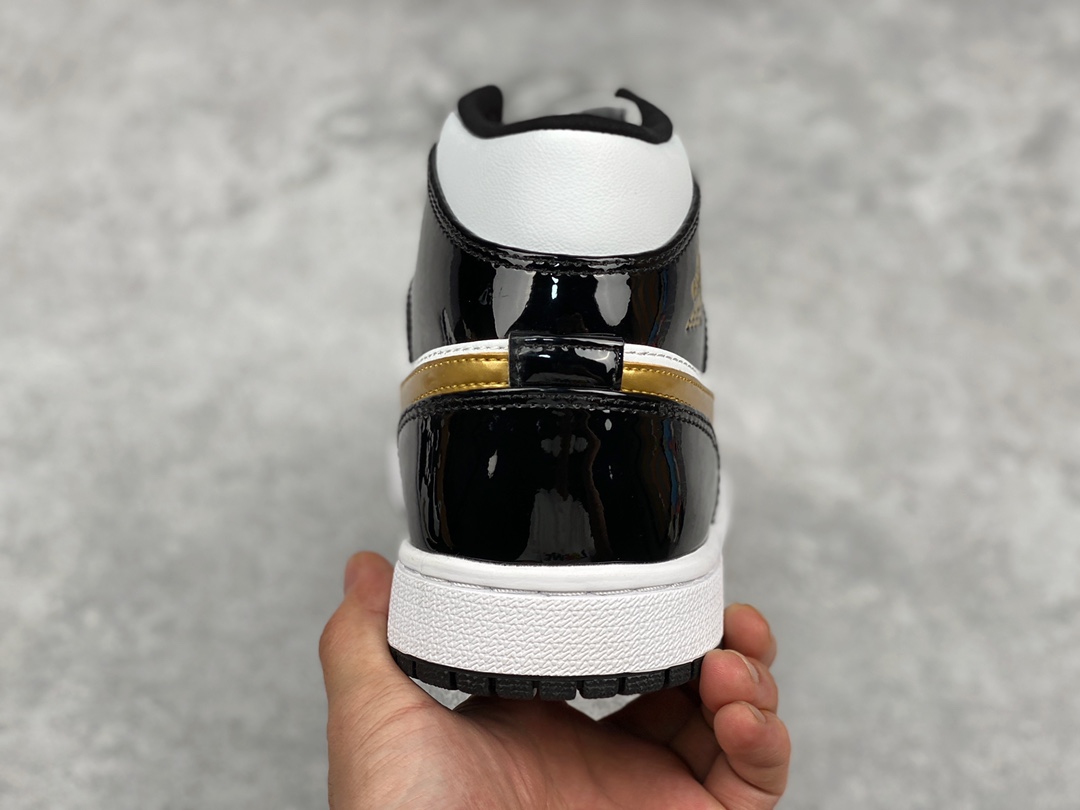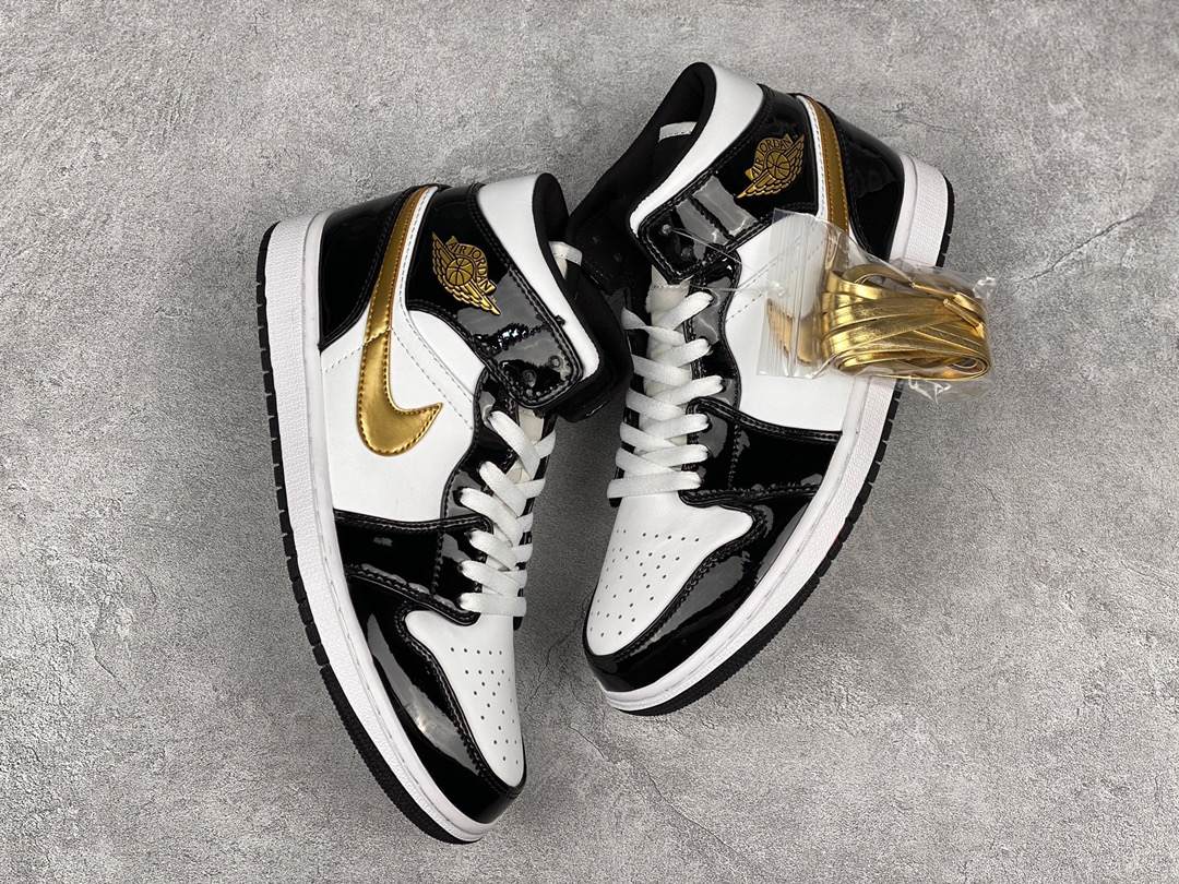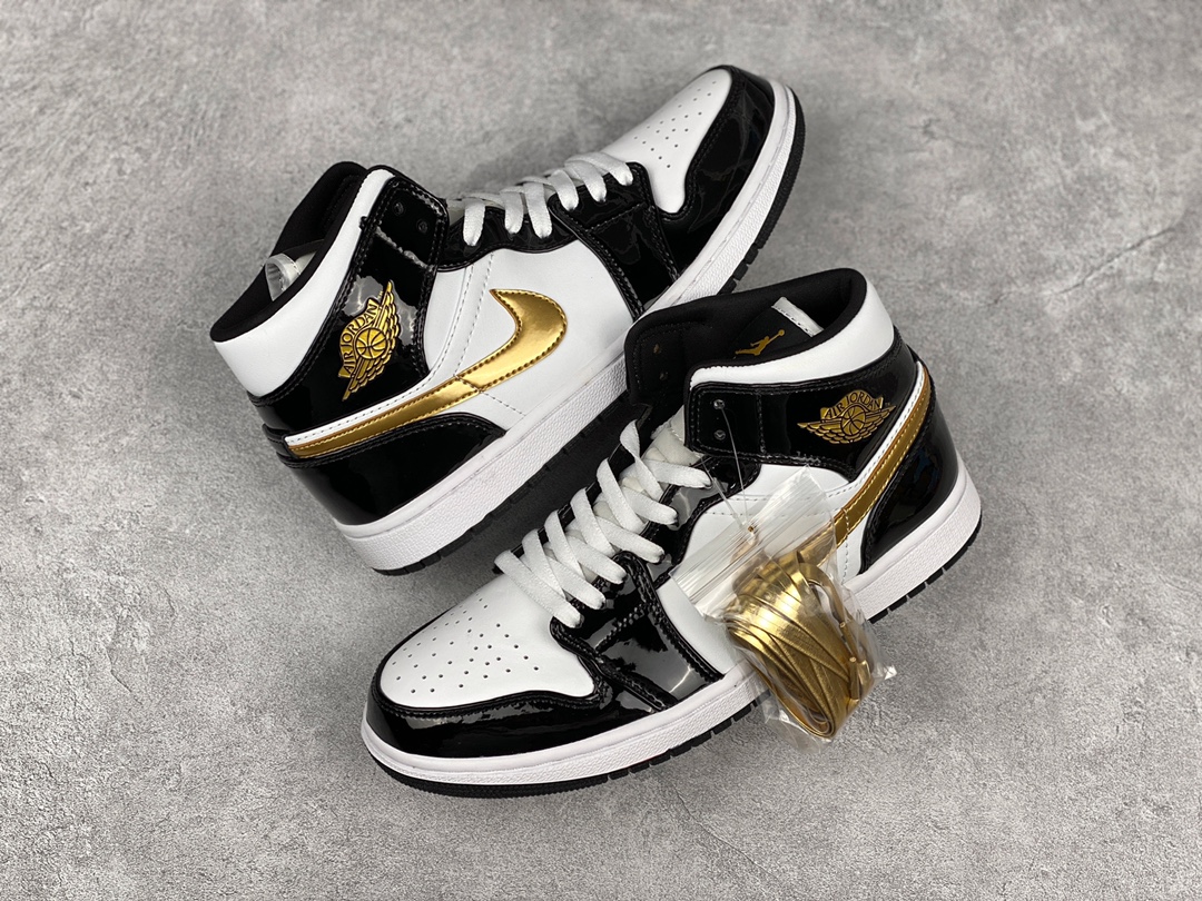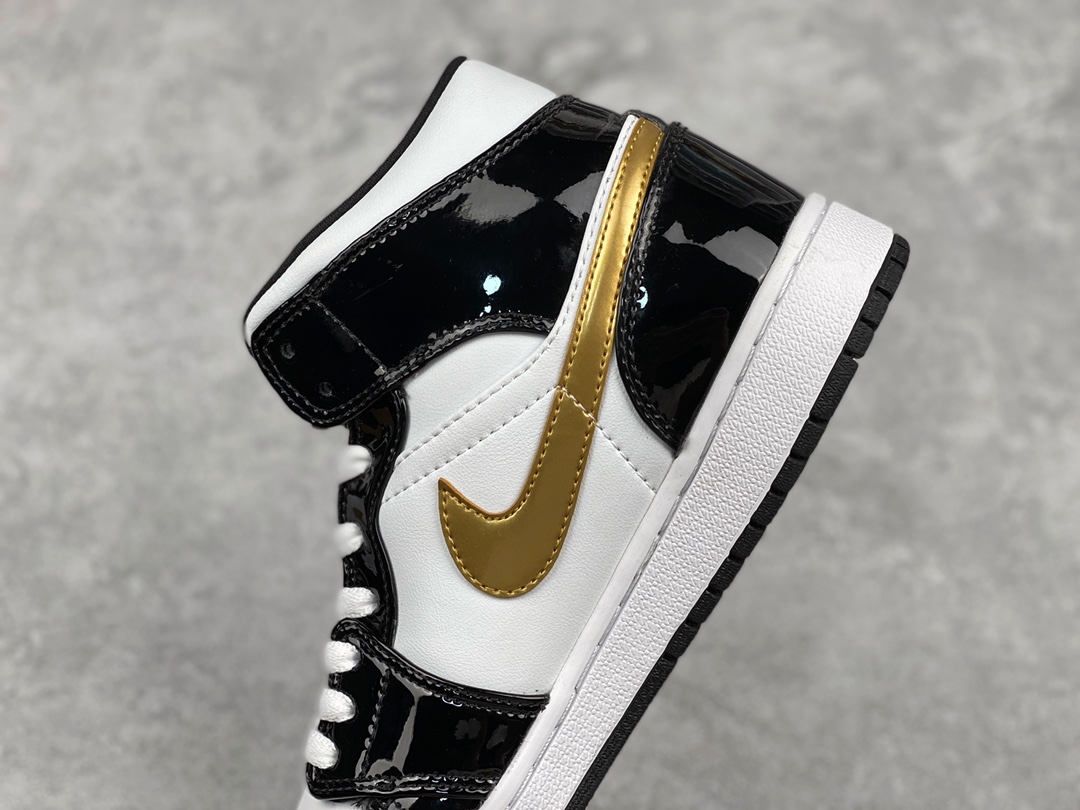 G0 公司级 Air Jordan AJ1 MID 中帮系列 漆皮小黑金。原厂内置全掌气垫 A模大底 头层小牛皮 鞋舌AJ原厂专用牛津布+AJ专用反口珍珠布+原厂无杂质高弹内里海棉 特殊封边弹力鞋带 全网唯一头层牛皮 原鞋开模 拒绝公底 购置公司同步原材料 都有细节还原95%全网最高版本 原汁原味 忠于原版 货号:852542-007XQ尺码:36 36.5 37.5 38 38.5 39 40 40.5 41 42 42.5 43 44 44.5 45 46