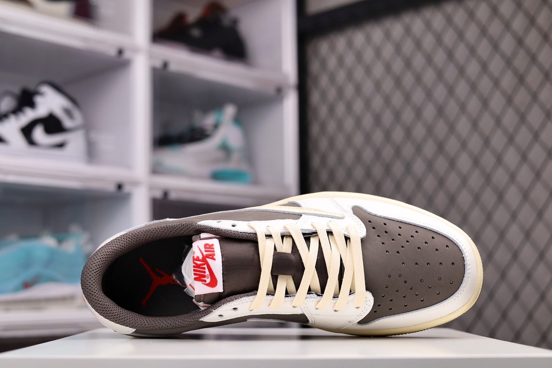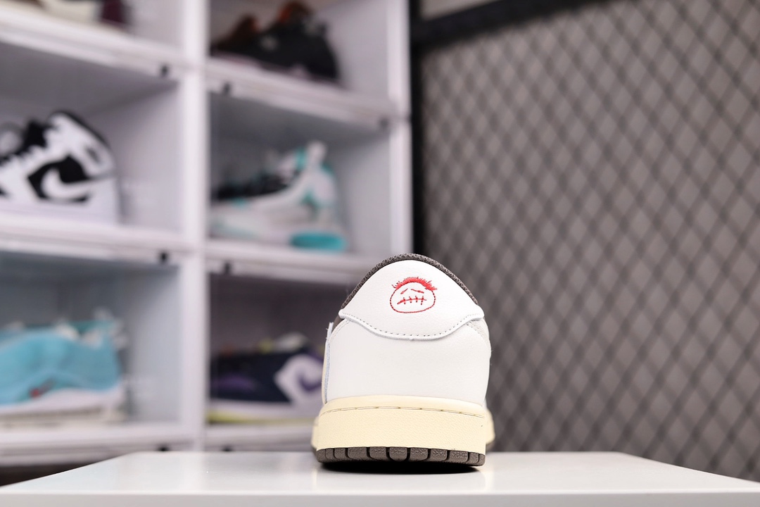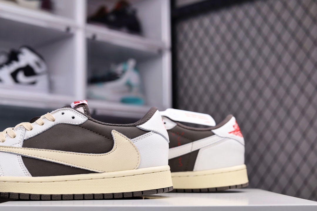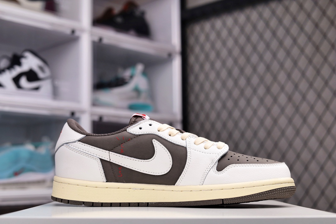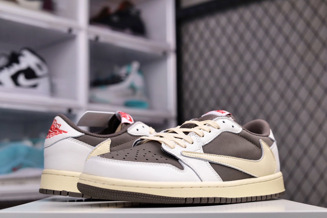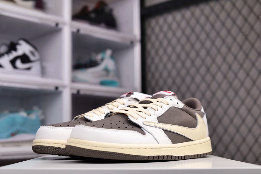 G0 公司级Travis Scott x Jordan 1 low AJ 1 OG 倒钩 反钩鬼脸低帮 客订原厂皮料 纹路质感和光线感与原这鞋一致 原鞋数据开发 原版后跟刺绣 拉帮线注胶孔货号:DM7866-162WE尺码: 36 36.5 37.5 38 38.5 39 40 40.5 41 42 42.5 43 44 44.5 45 46