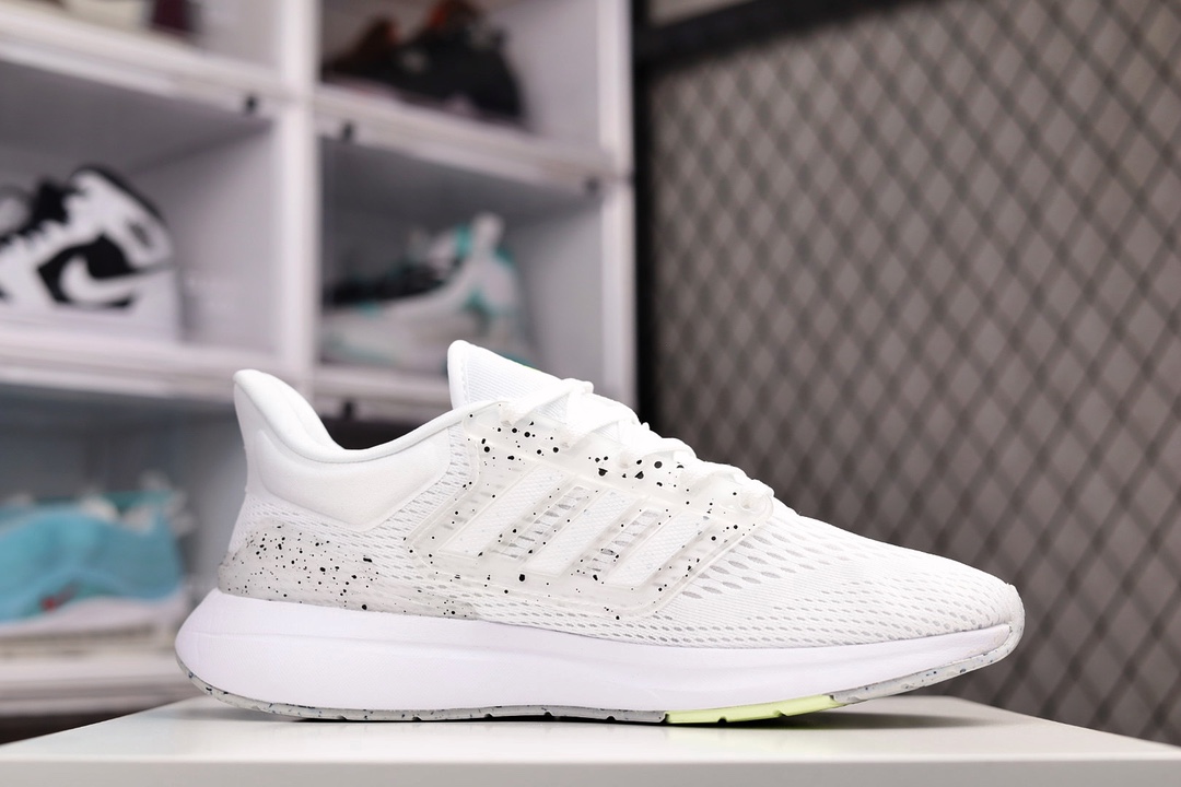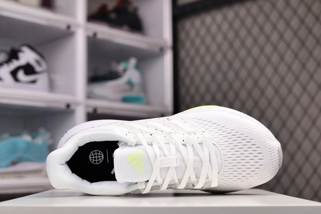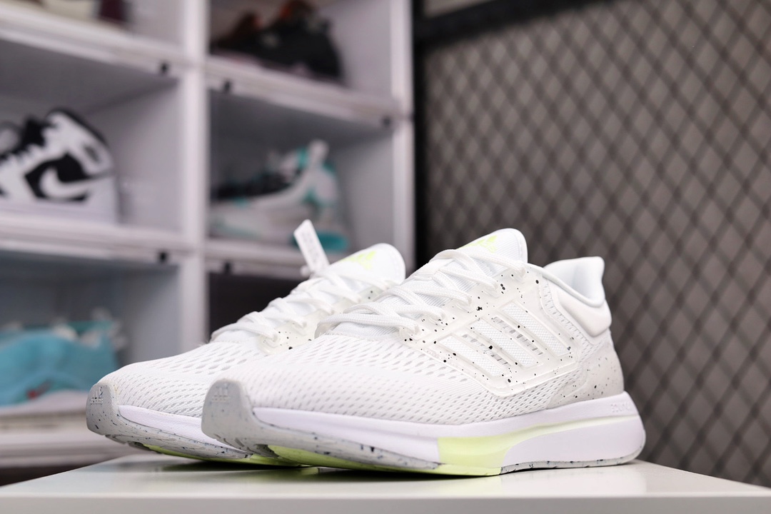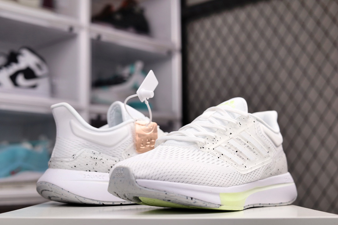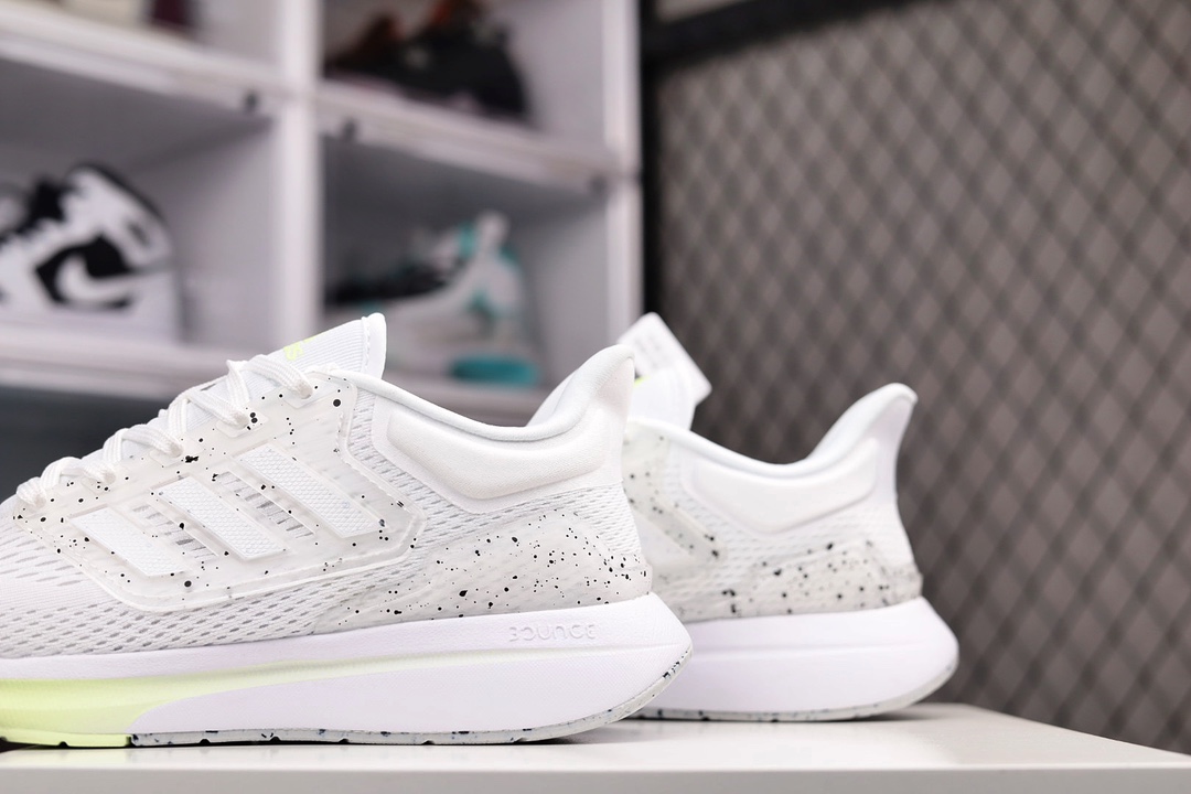 G0 Adidas EQ21 RUN 官方同步上架 复古跑鞋 鞋身材质为全网眼面料,保证了足够的透气性。后跟处的 TPU 片可以让双脚更加稳定,且包裹感更强。中底采用全掌 Bounce 材质打造,肉眼可见的厚度可以满足跑步时的脚感,并且相比 Boost 也会更加轻弹。最后,采用经典的橡胶外底收尾,完善整体造型设计