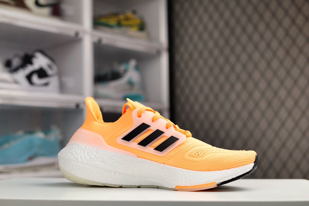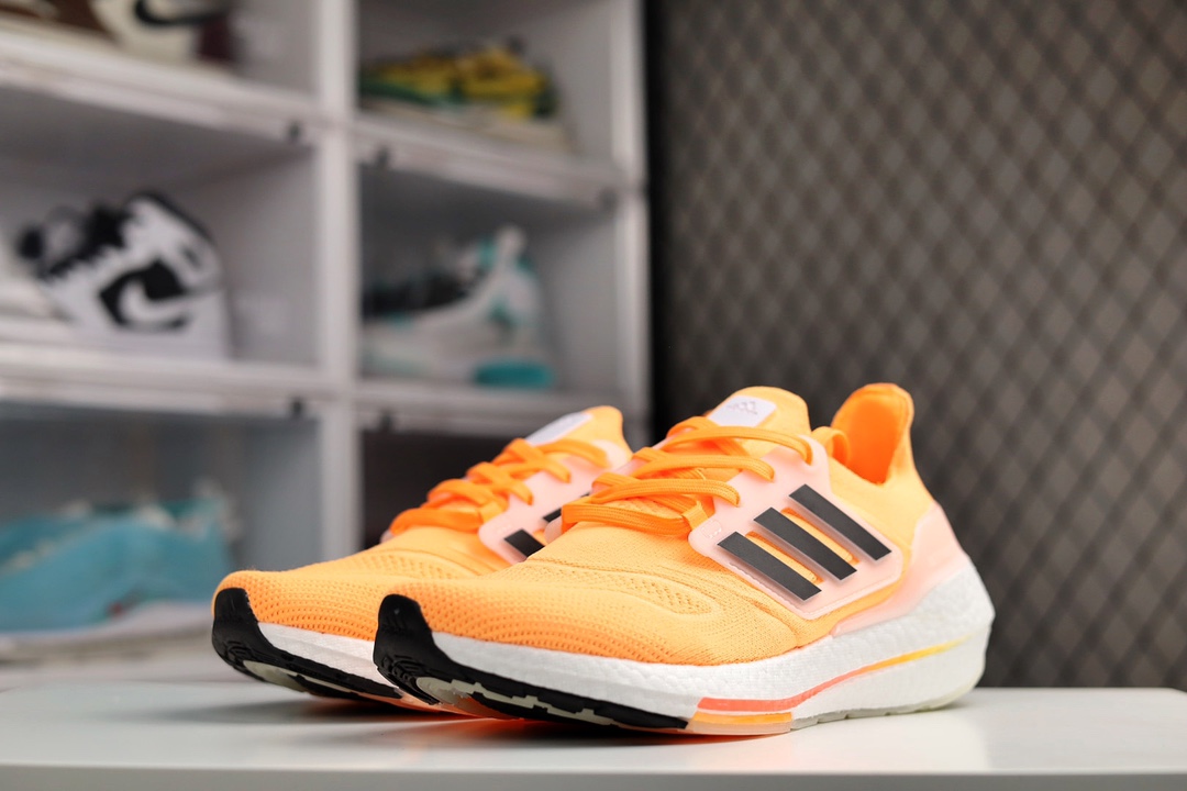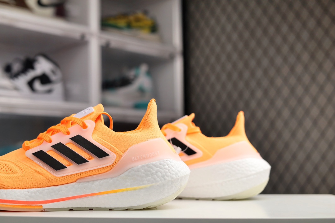 G0 Adidas UltraBoost 22 2022官方同步主推新款 以编织纱网代替 TPU 材质,更加轻薄柔软,令脚感更为舒适。同时搭配黑色线条与后跟镂空TPU支架灰白调相呼应,令造型更加科幻前卫。搭配Primeknit J5 科技,从脚背到脚底像袜子一样一体织成,带来全方位贴合