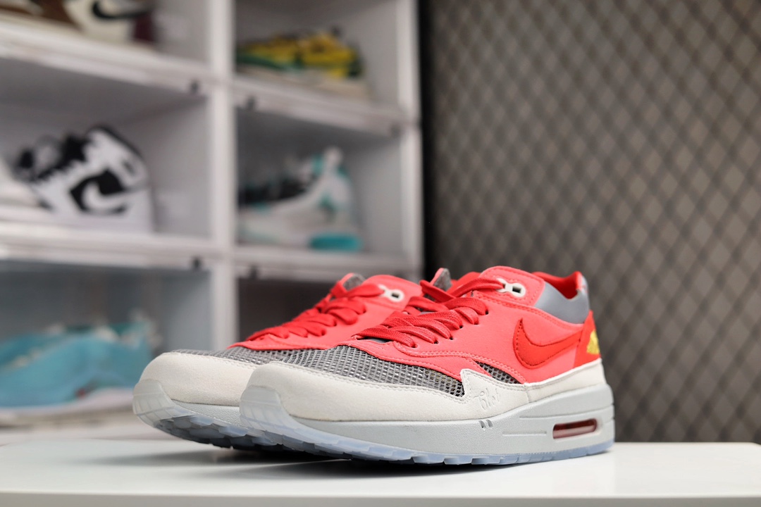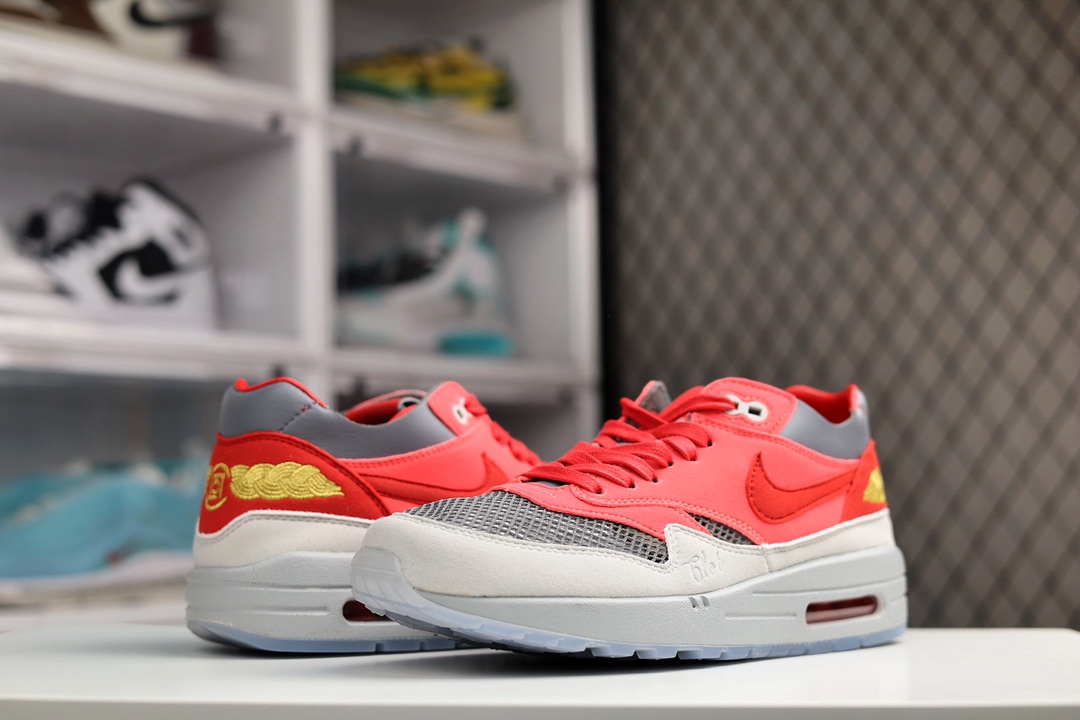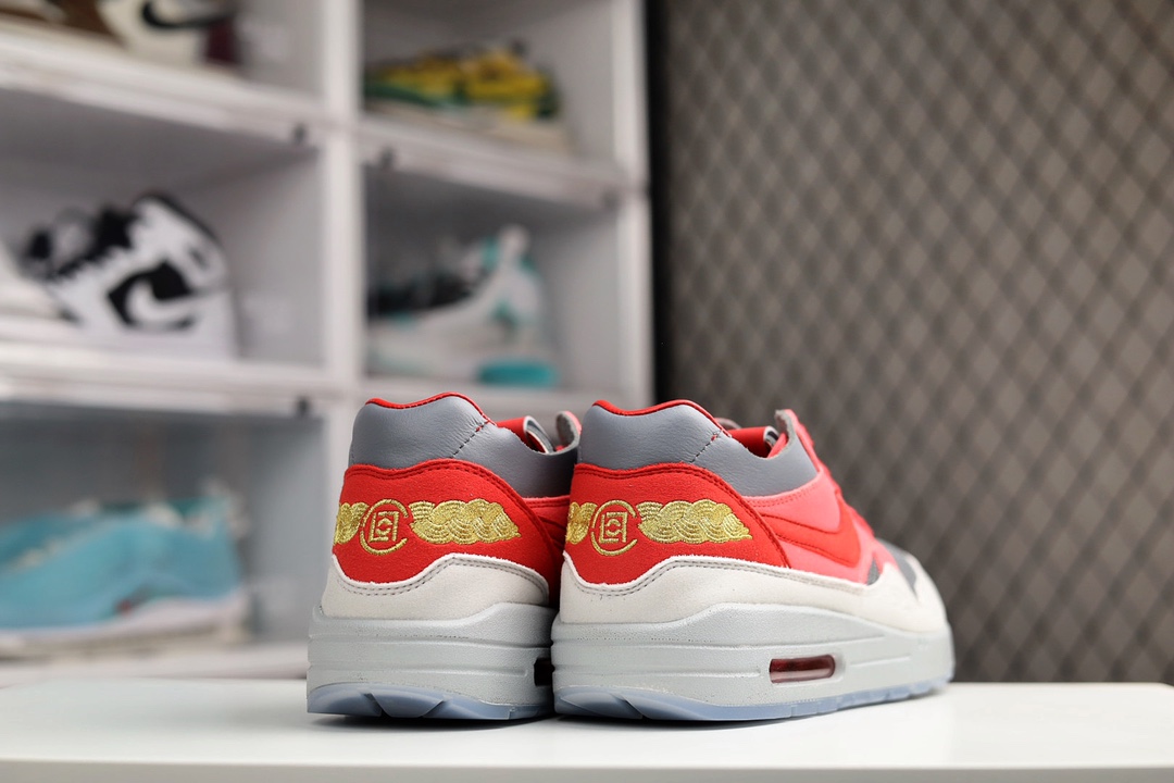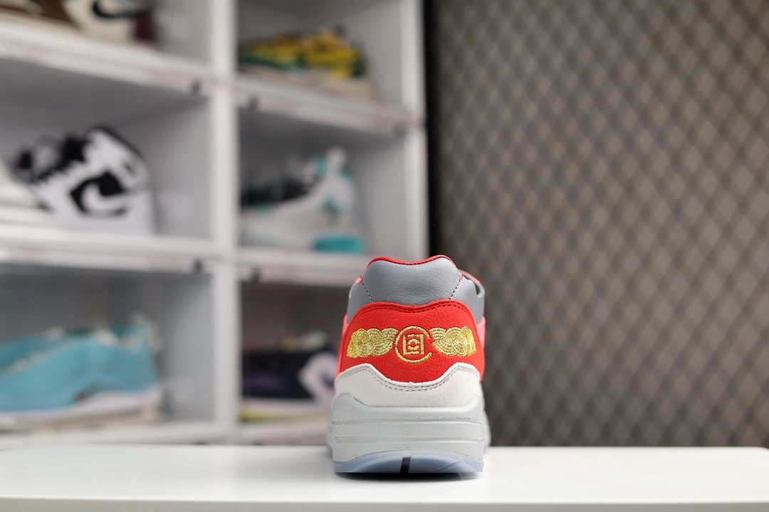 G0 Clot x Nk Air Max 1 陈冠希联名粉灰复古休闲跑鞋 鞋款不仅运用了半透明材质、中国中医针灸、中国风刺绣等元素,在配色的和谐均衡方面也做得非常不错