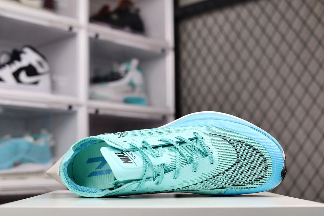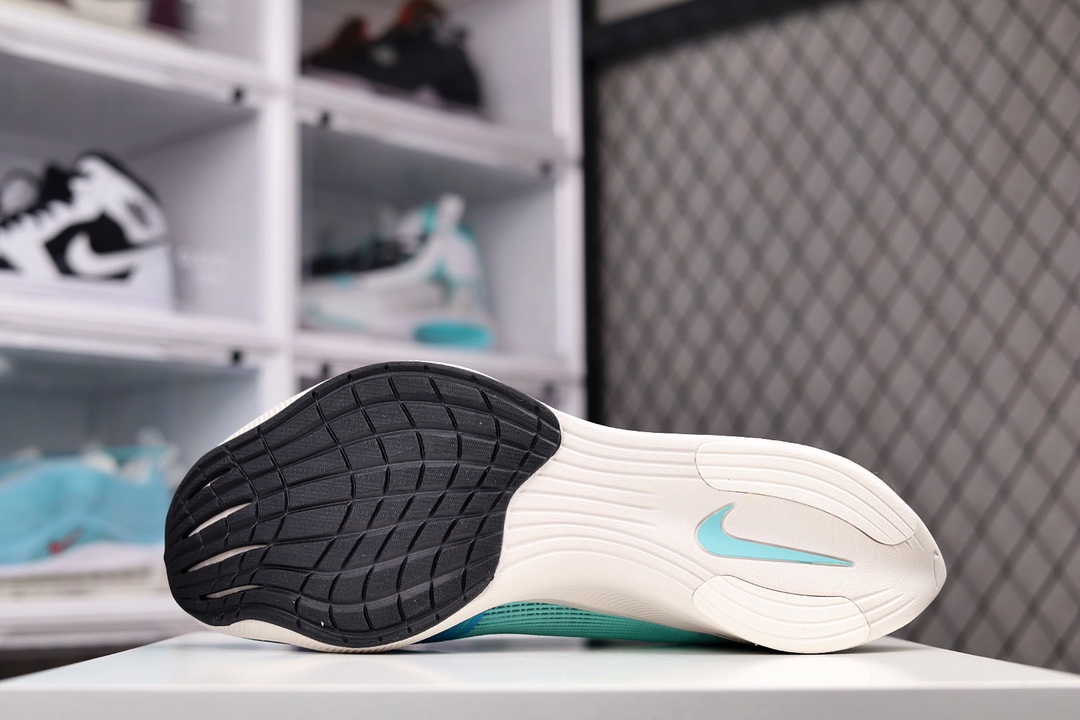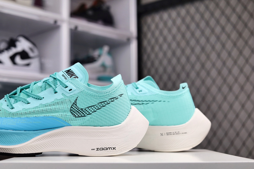 G0 Nike ZoomX Vaporfly Next% 马拉松跑步鞋 鞋面使用了全新 Vaporweave 科技,这种类似蝉翼的材质相比 Flyknit 更加轻薄透气,非对称的鞋带系统和泡棉护垫的加入令舒适度更高,采用醒目的绿色作为主色调,鞋头辅以超大的 Swoosh 点缀,再配上流线型外观设计 官方