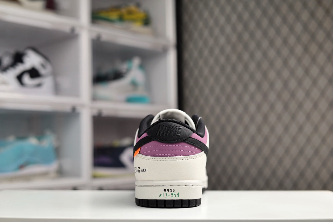H0 公司级 NIKE DUNK SB “Toyota AE86” 藤原店配色方面还原了「熊猫」 AE86 的黑白双拼设计,不过磨砂皮面的质感看起来似乎是更加偏向灰色。最经典「藤原とうふ店」字样在后跟侧面得到忠实还原,后跟处中底上还印有「群马 55 13-954」的车牌号。鞋侧 Swoosh Logo 末端的橙色标签则呼应车尾灯,丰富的动画元素细节让整双鞋极具辨识度