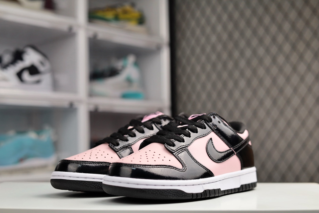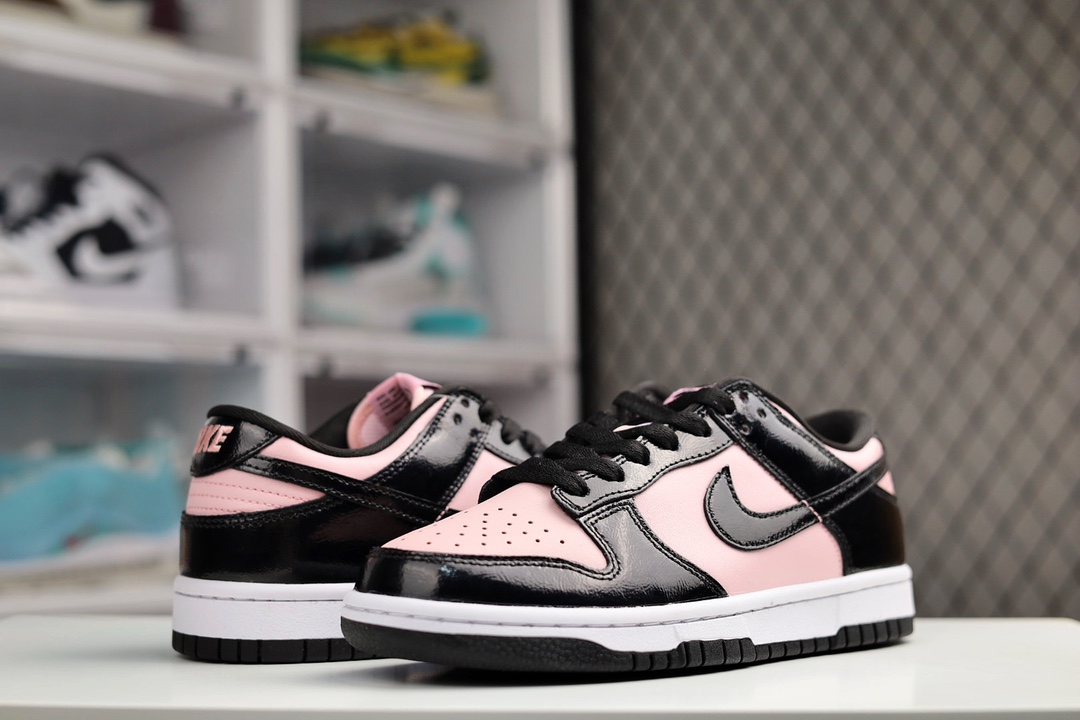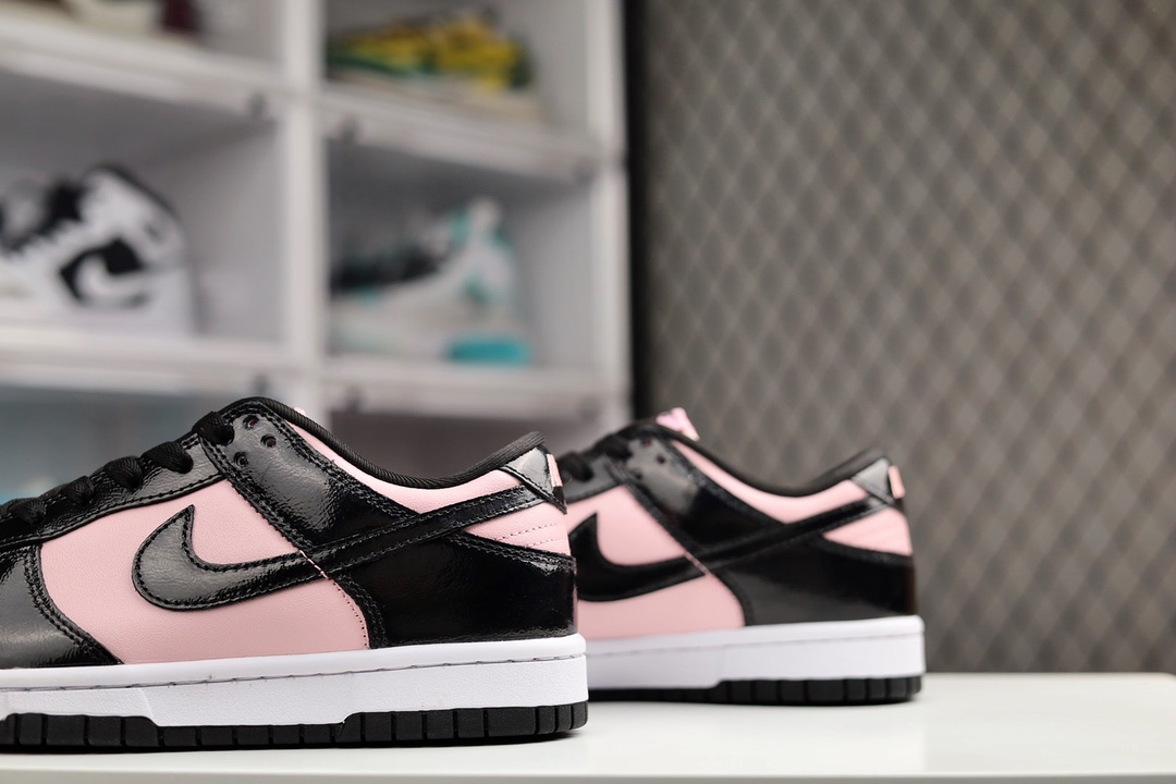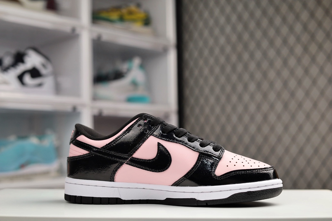H0 公司级 Nk Dunk SB Low 黑粉 漆皮性价比首选 实拍首发原装头层材料 独家版型蒸餾加工帶來的是更好的视觉和脚感体验大厂纯原品质出货 清洁度 电绣工艺 皮料切割干净无任何毛边 细节完美