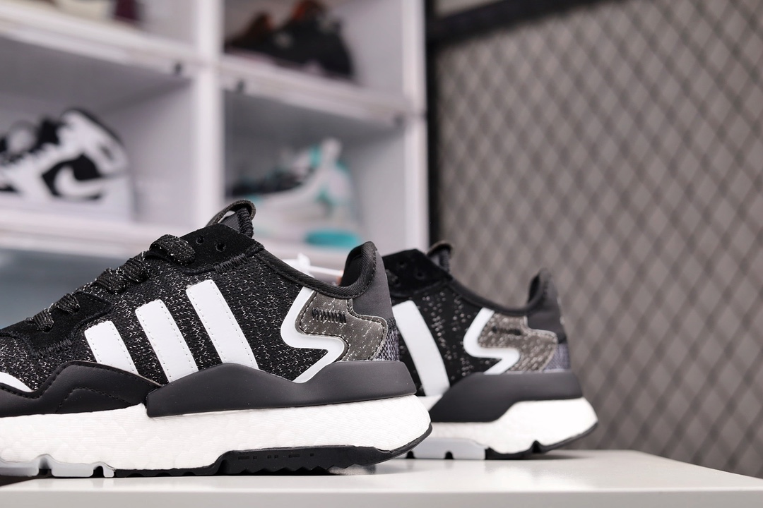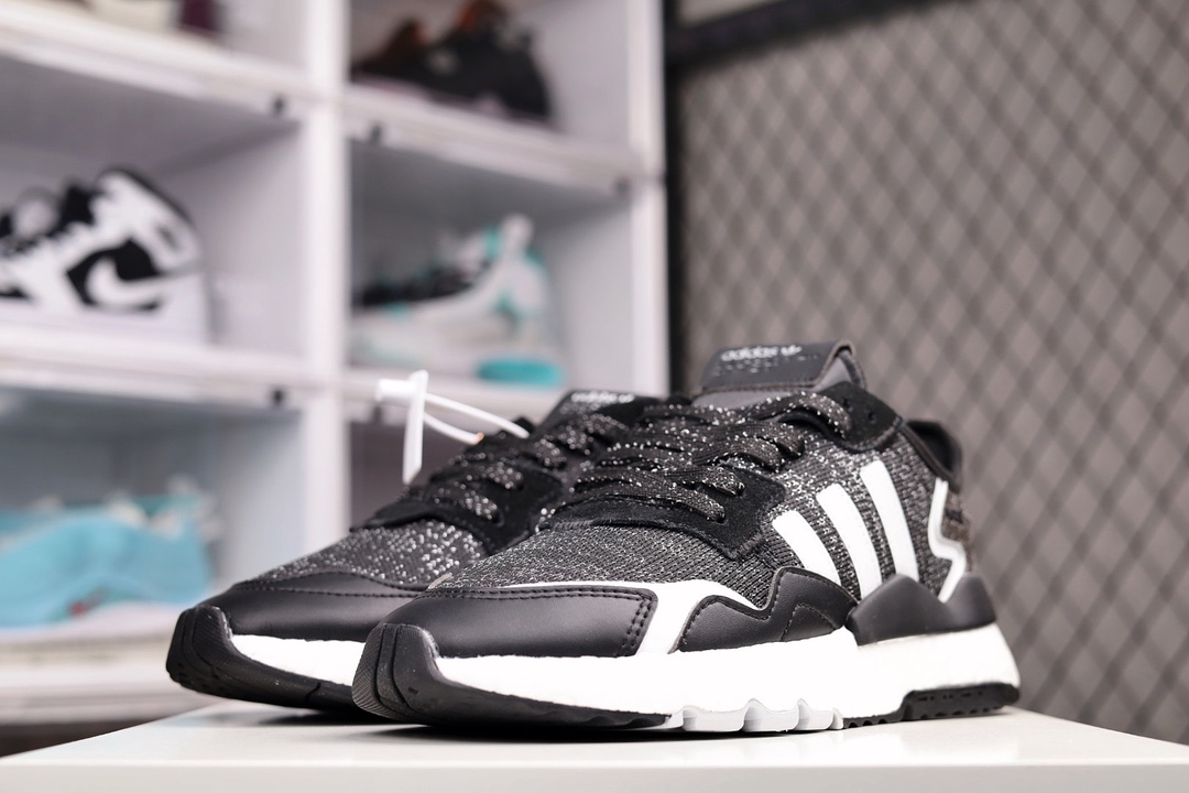 H0 公司级Adidas Nite Jogger 2022 Boos 三叶草 联名夜行者 复古跑鞋原厂材料 原厂大底 私家独模 网布搭配麂皮拼接打造鞋面 极具复古风格鞋头及鞋跟点缀3M反光设计极为亮眼中底采用全掌 Boost 科技,厚度相当可观,脚感极佳