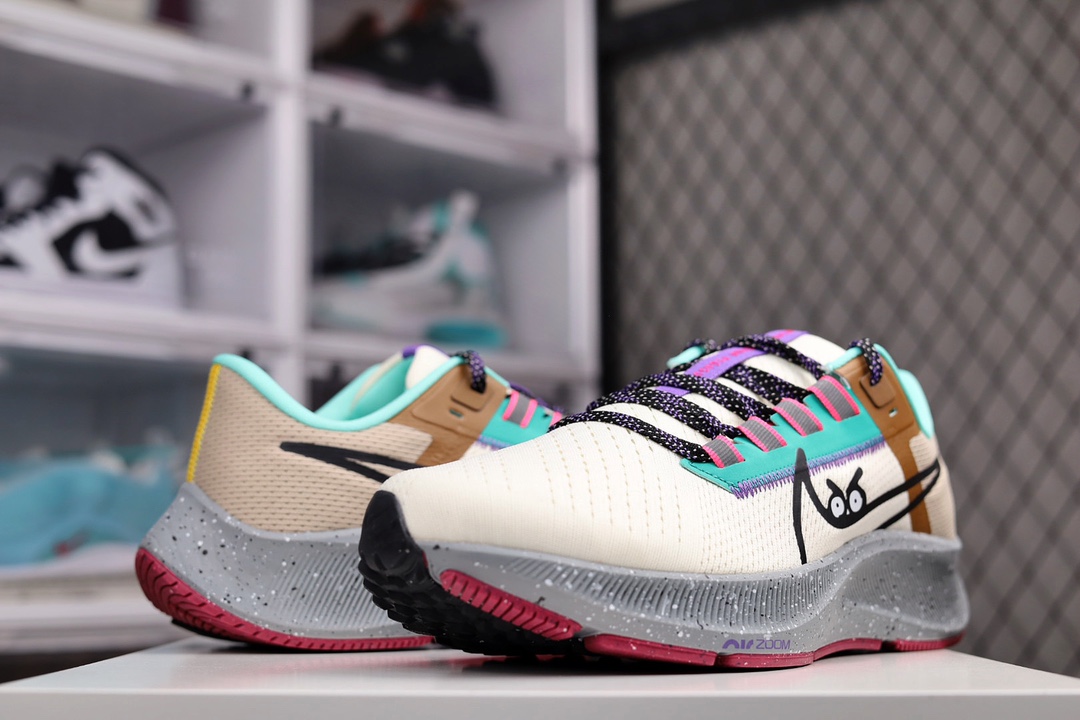 H0 纯原版本 原档案数据开发纸版楦型内里嵌入定型海绵中底搭载前Zoom+全掌React配置 全新耐克Nike Zoom Pegasus 38 白蓝黄 38代超级飞马涡轮增压马拉松休闲运动慢跑鞋