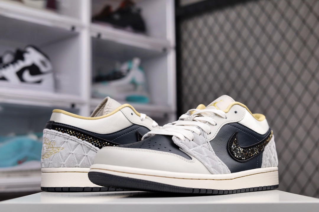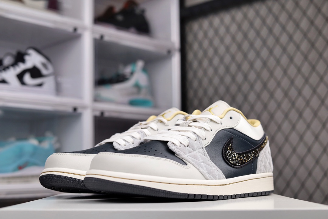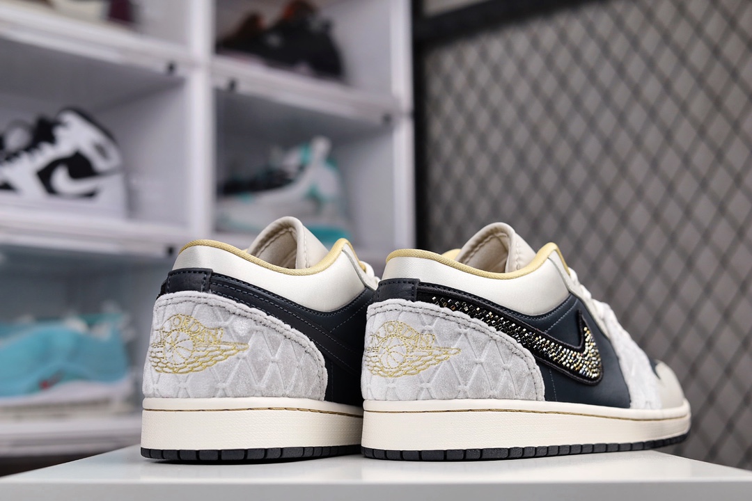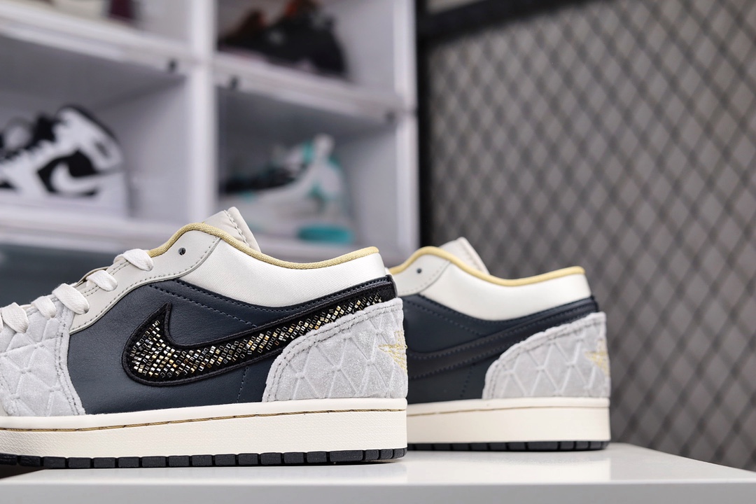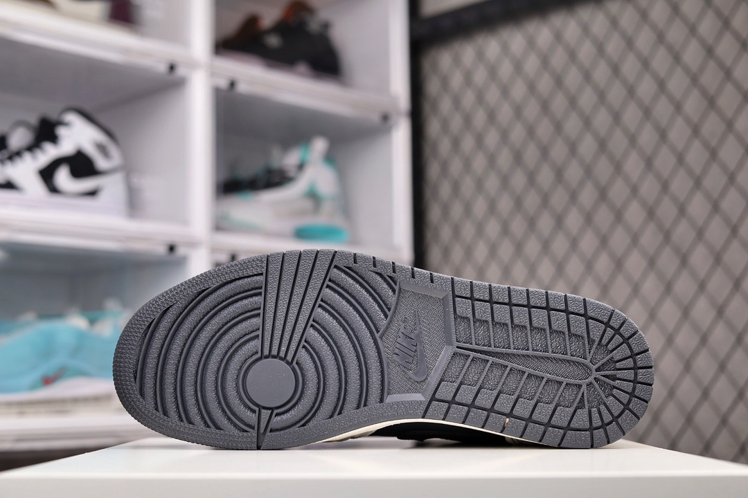 H0 纯原版本 Air Jordan 1 Low 黑灰绸缎AJ1乔1低帮休闲板鞋 同步官方配色头层皮打造 原鞋原档案开发 原厂皮料 原档冲孔鞋头 正确满胶鞋垫 四线拉帮 原厂织唛标 鞋舌高弹海绵填充