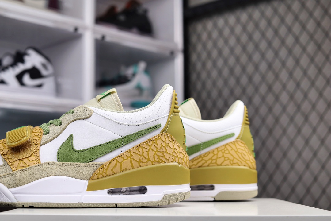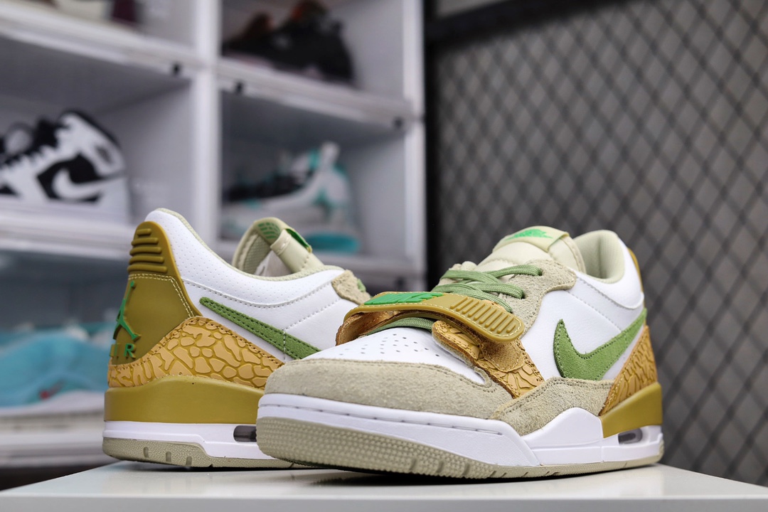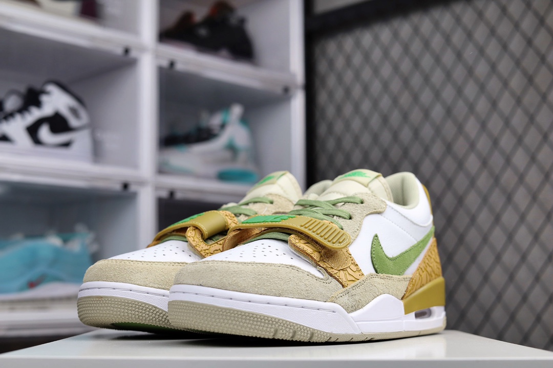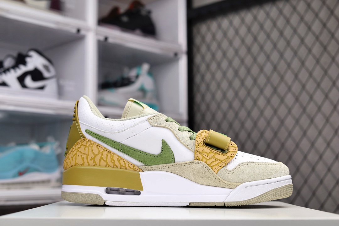 H0 纯原版本 Air Jordan Legacy 312 Low 白橄榄绿它的名字就展现出它所包含的鞋款元素,312 分别对应了 Air Jordan 3、Air Jordan 1 和 Air Trainer 2,将这三双经典又有不俗人气的鞋款融合,“最强三合一” 的名称由此得来