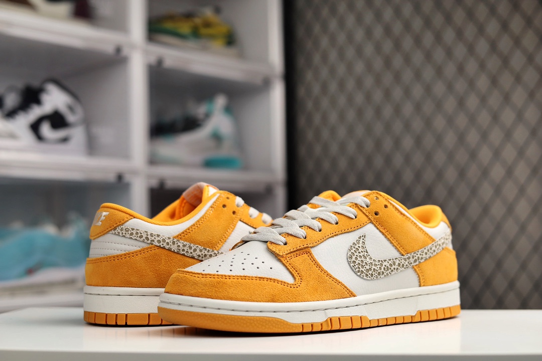 H0 耐克/Nk Dunk Low “Safari Swoosh” 米白橙 SB低帮运动休闲板鞋 鞋款采用干净的亮橙色和白色作为主配色,全鞋身采用皮革材质,橙色部分采用翻毛皮的材料。