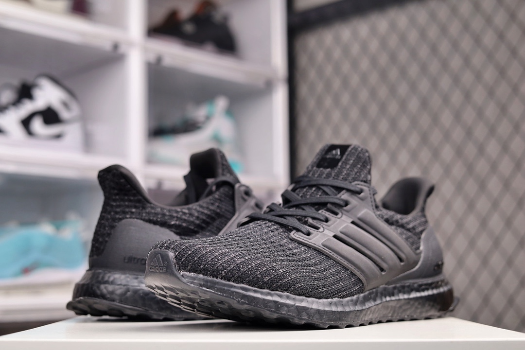 H0 Adidas Ultra Boost Triple Black UB4.0原装真标 真爆 全掌BOOST搭配马牌橡胶大底,延续了前三代良好的缓震保护技术。爆米花颗粒饱满,弹性十足。采用全新纹理呈现出 Primeknit 的织物鞋面,舒适柔软