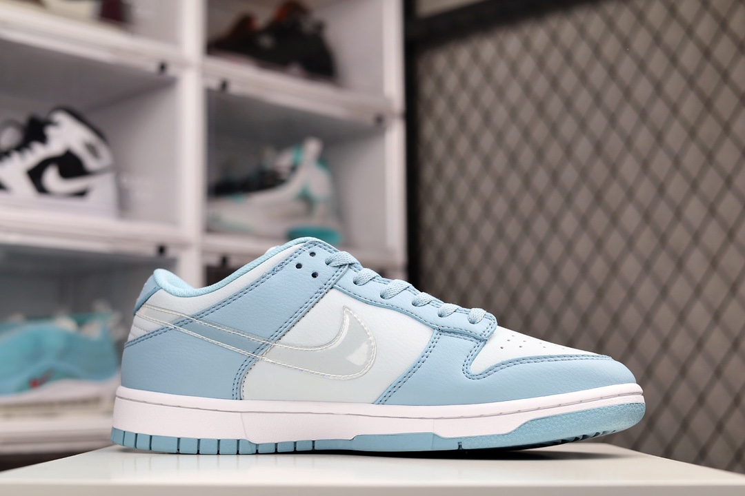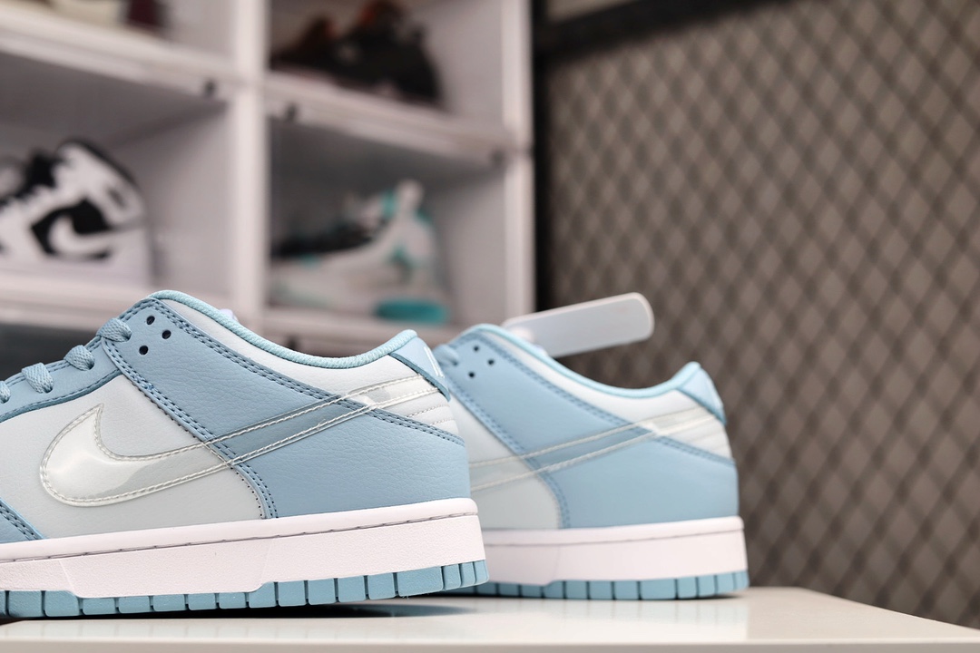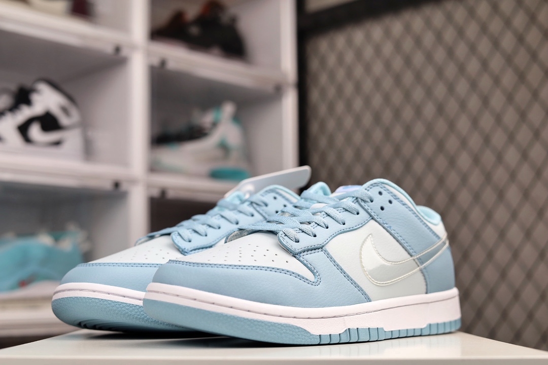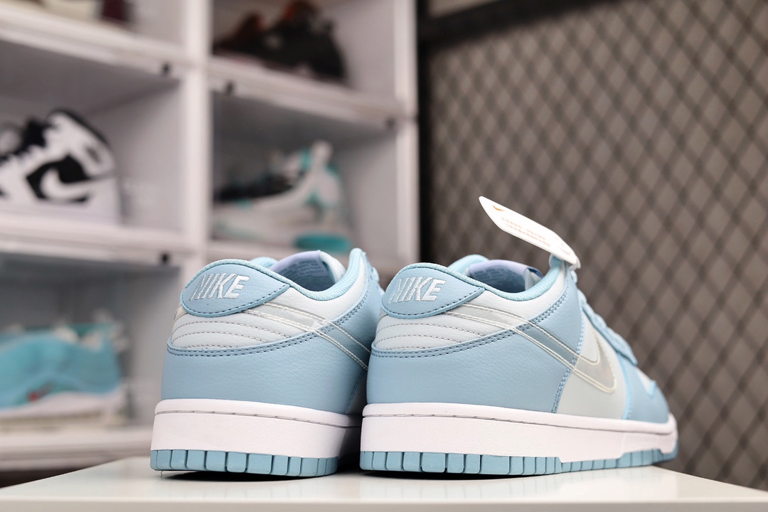 H0 Nike Dunk Low 耐克 SB 低帮 蓝灰 整双鞋采用了柔和的蓝色和灰色为主色调呈现,视觉效果俏皮可爱。鞋面采用大面积麂皮材质打造,带来出众质感表现。最为特别是的是,这双鞋的侧身Swoosh Logo是以透明的样式示人,透过Swoosh可以很清晰得看清楚鞋面内部,十分有辨识度。最后以白色的中底和蓝色的外底来收尾,完善了整体设计