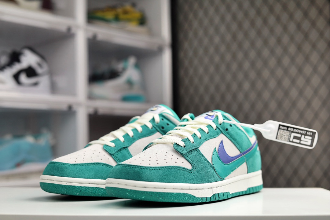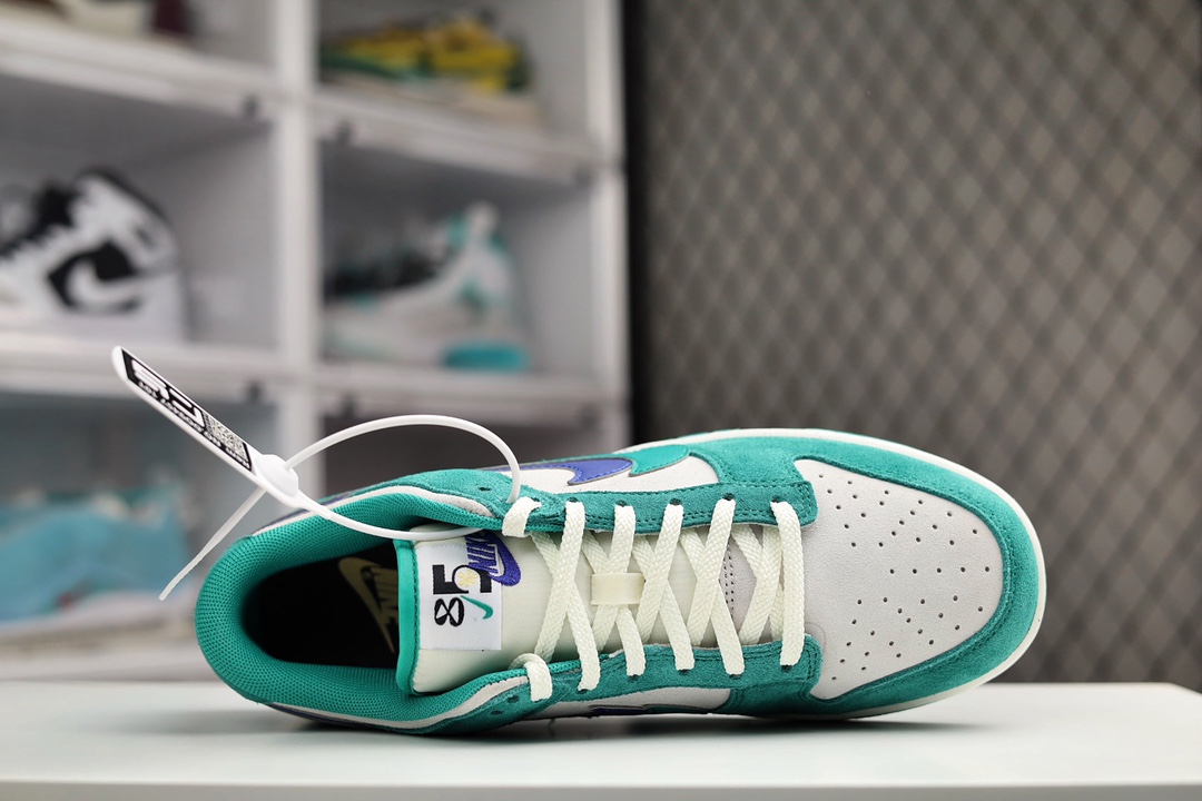 H0 Nike SB Dunk Low SE “85 Green Blue”扣篮系列低帮休闲运动滑板板鞋“麂皮帆白绿蓝双钩”货号:DO9457-101WS尺码:36 36.5 37.5 38 38.5 39 40 40.5 41 42 42.5 43 44 44.5 45 46