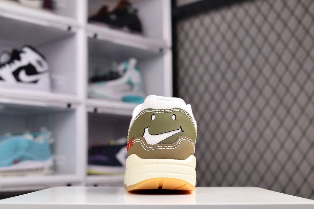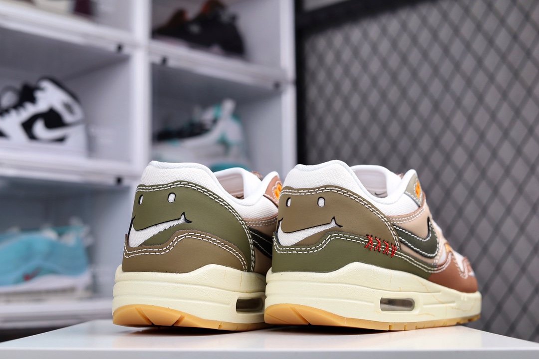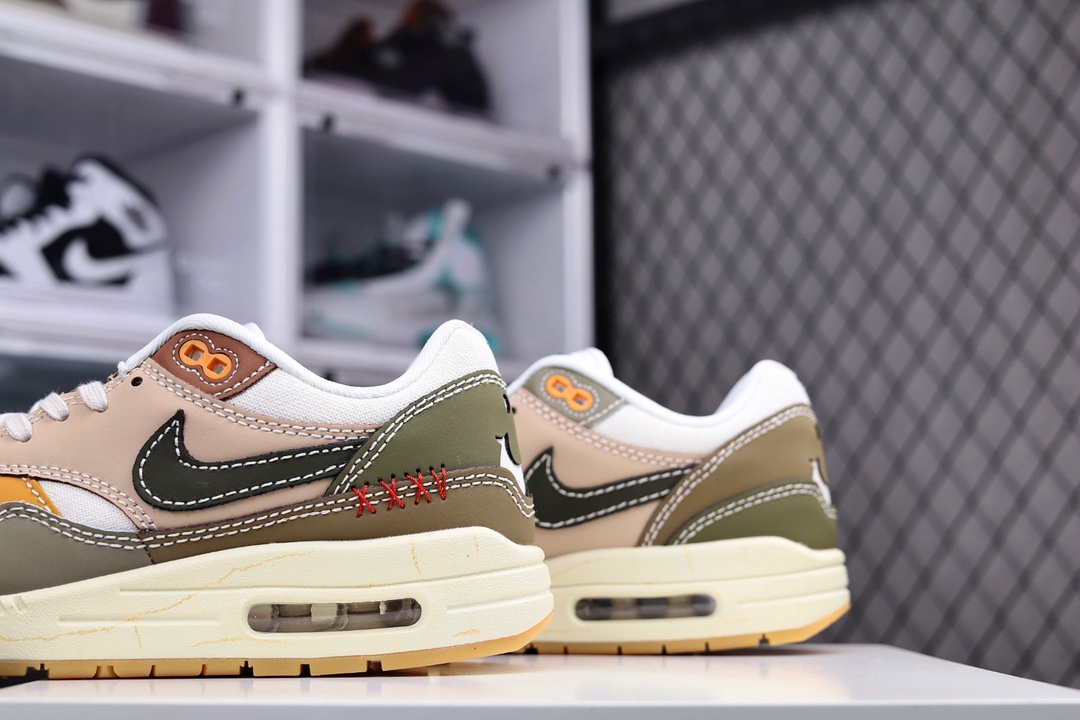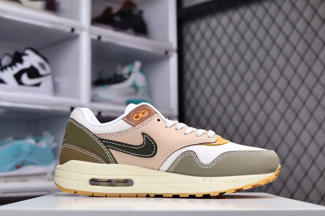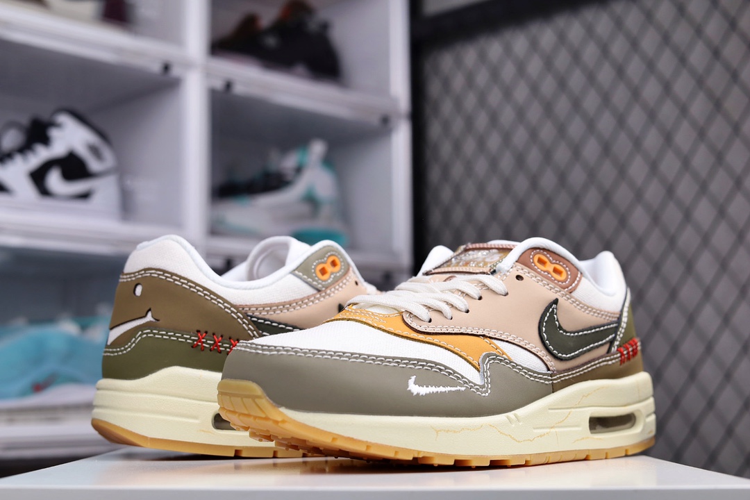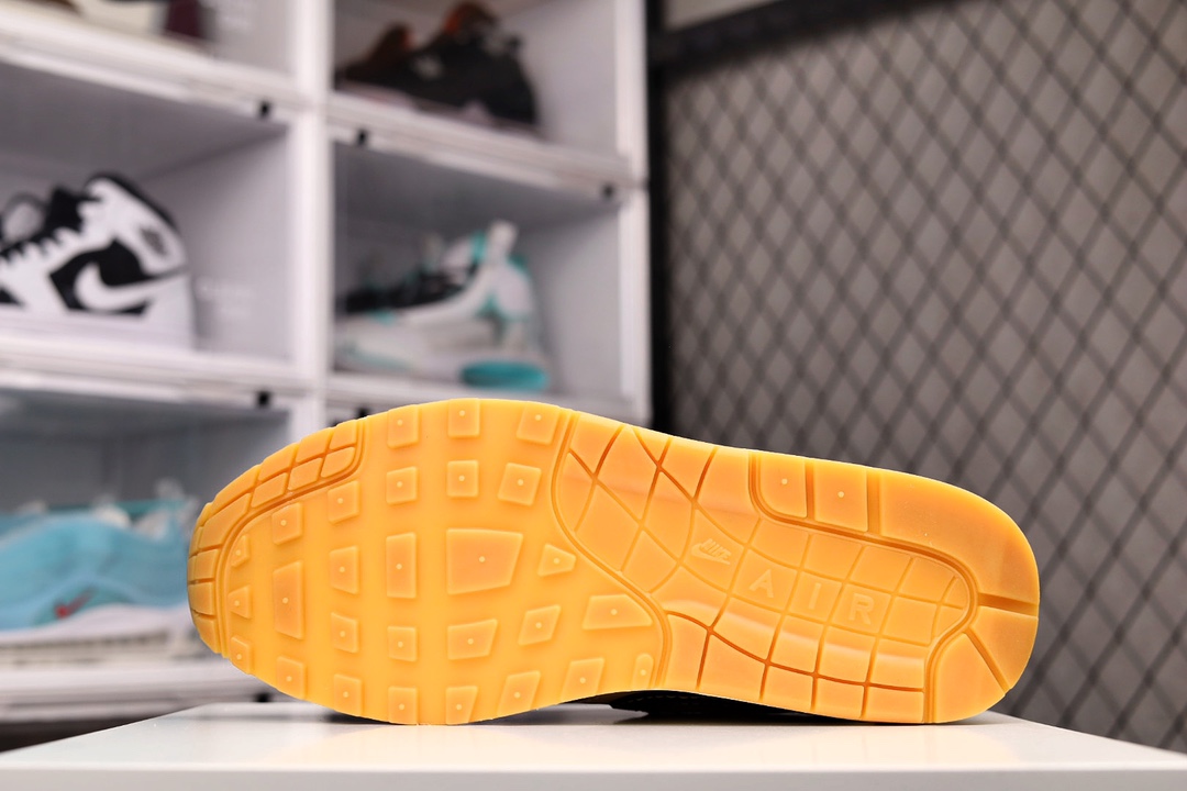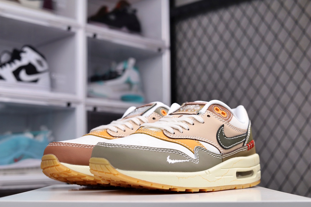H0 Nk Air Max 1 联名款 半掌气垫复古跑步鞋 整双鞋以经典 Air Max 1 为蓝本,在元年传统鞋身包边的基础上加入新颖的波浪形设计,经典中又有几分俏皮。鞋面以网眼和皮革材质打造,既保证了透气性又不失质感,鞋头处银色迷你 Swoosh Logo 为鞋款增添了一抹亮眼的细节。
