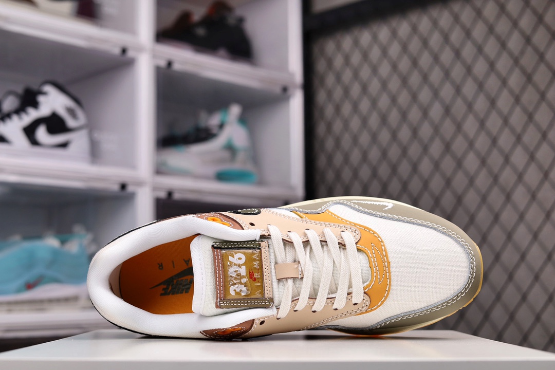 H0 Nk Air Max 1 联名款 半掌气垫复古跑步鞋 整双鞋以经典 Air Max 1 为蓝本,在元年传统鞋身包边的基础上加入新颖的波浪形设计,经典中又有几分俏皮。鞋面以网眼和皮革材质打造,既保证了透气性又不失质感,鞋头处银色迷你 Swoosh Logo 为鞋款增添了一抹亮眼的细节。货号:DQ8656-133XQ尺码:36-46