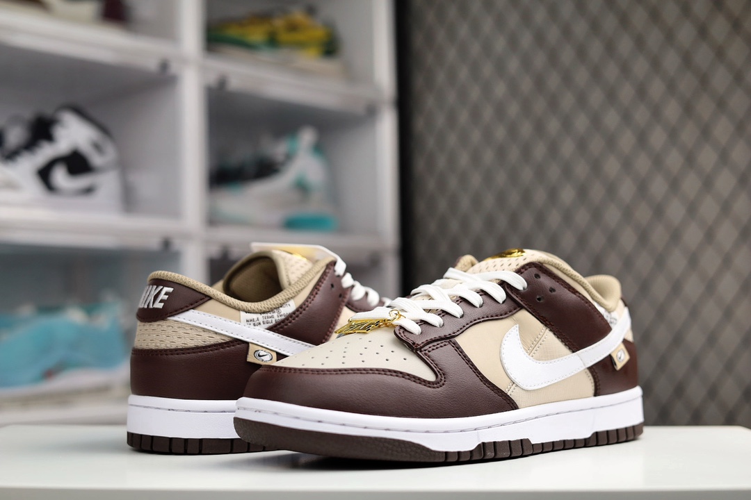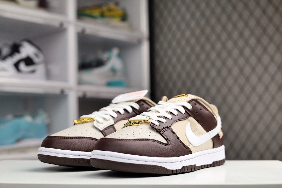 H0 NK Dunk Low 扣篮系列低帮休闲运动滑板板鞋 街舞棕色金扣 原鞋开发 头层皮料 内置Sole真气垫装置 正确耐磨橡胶大底