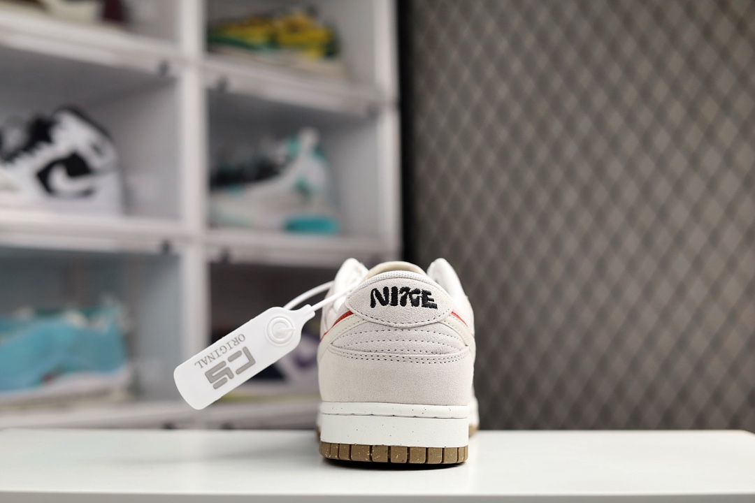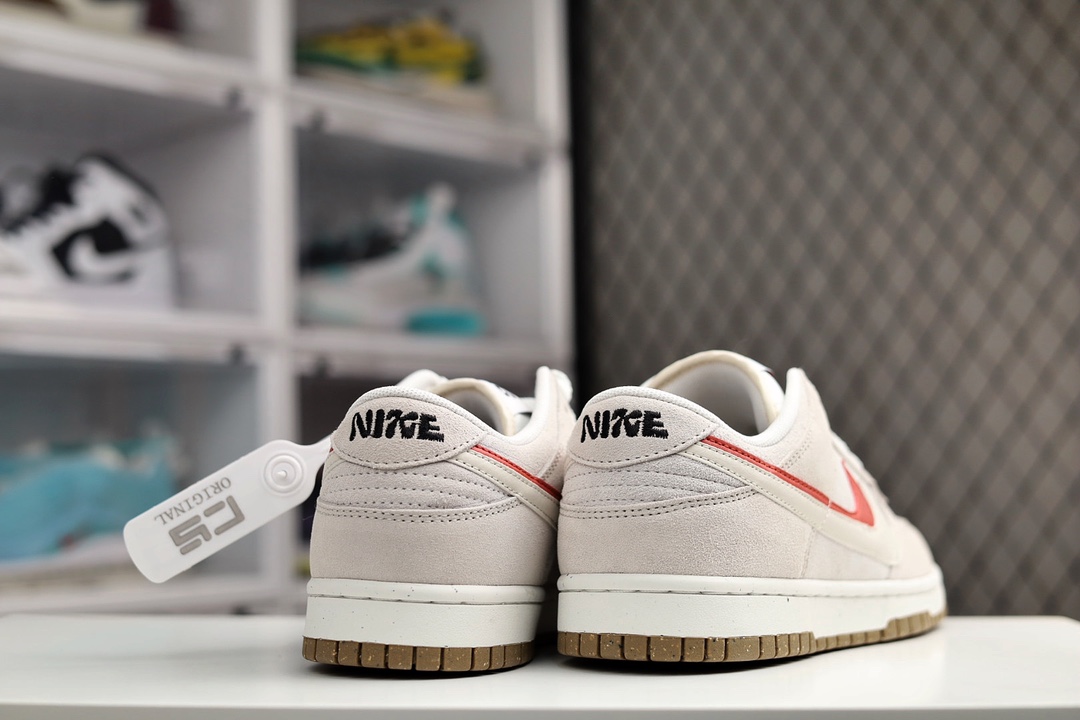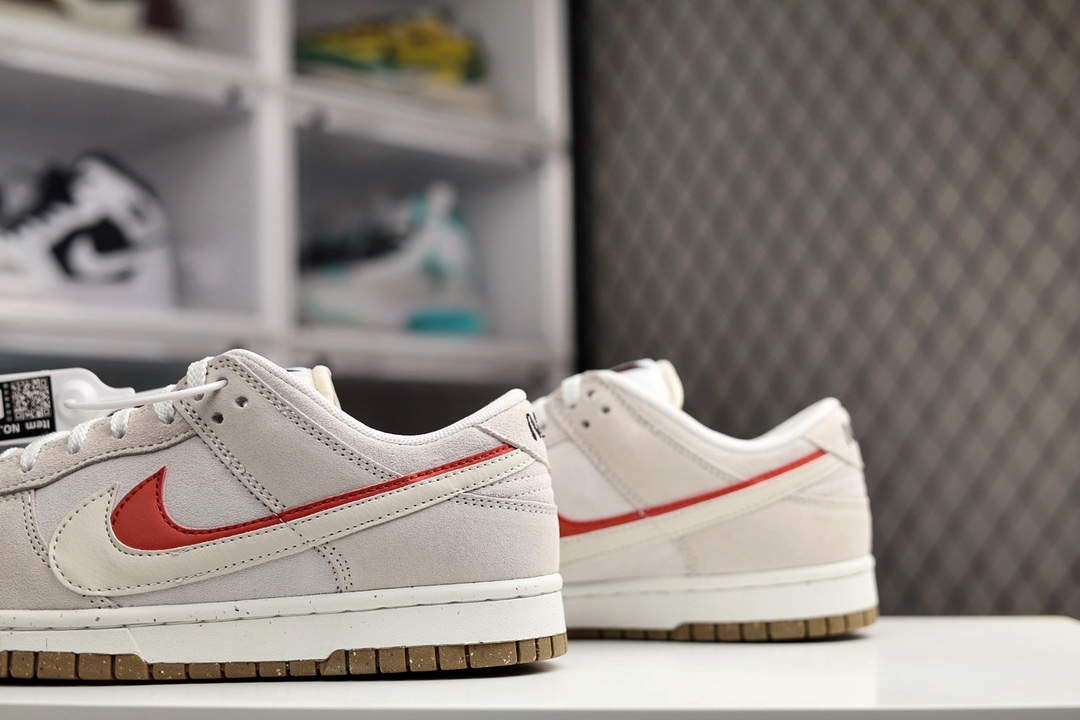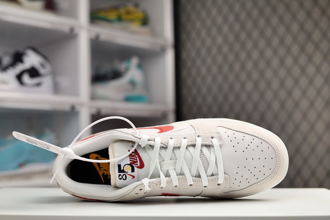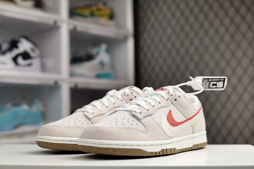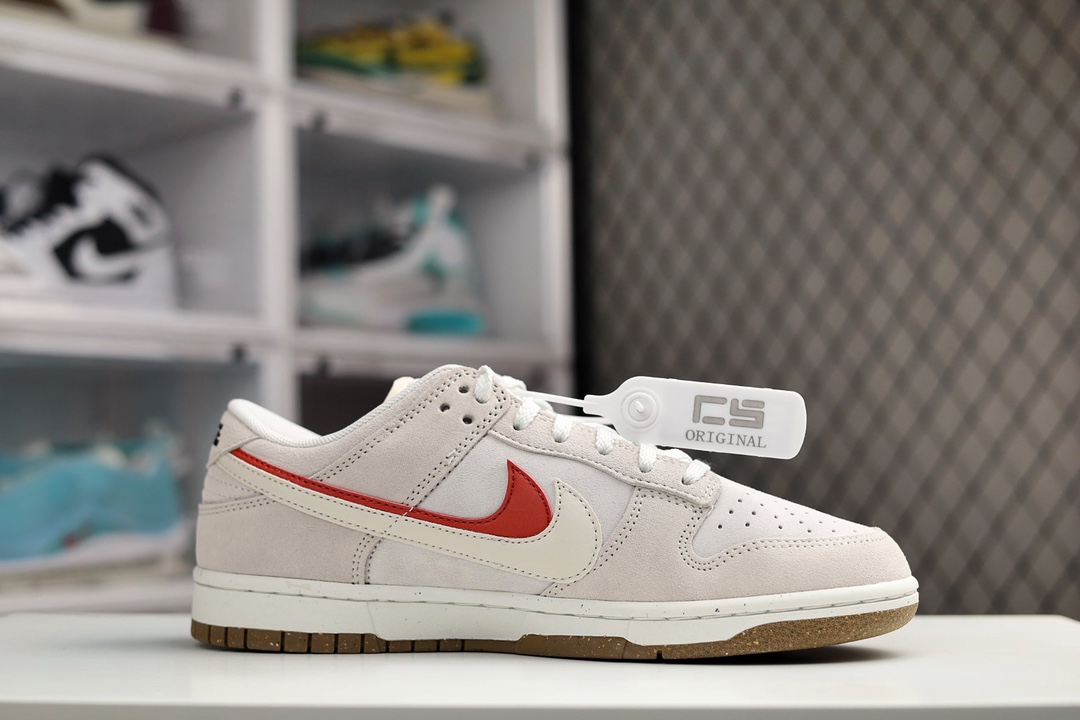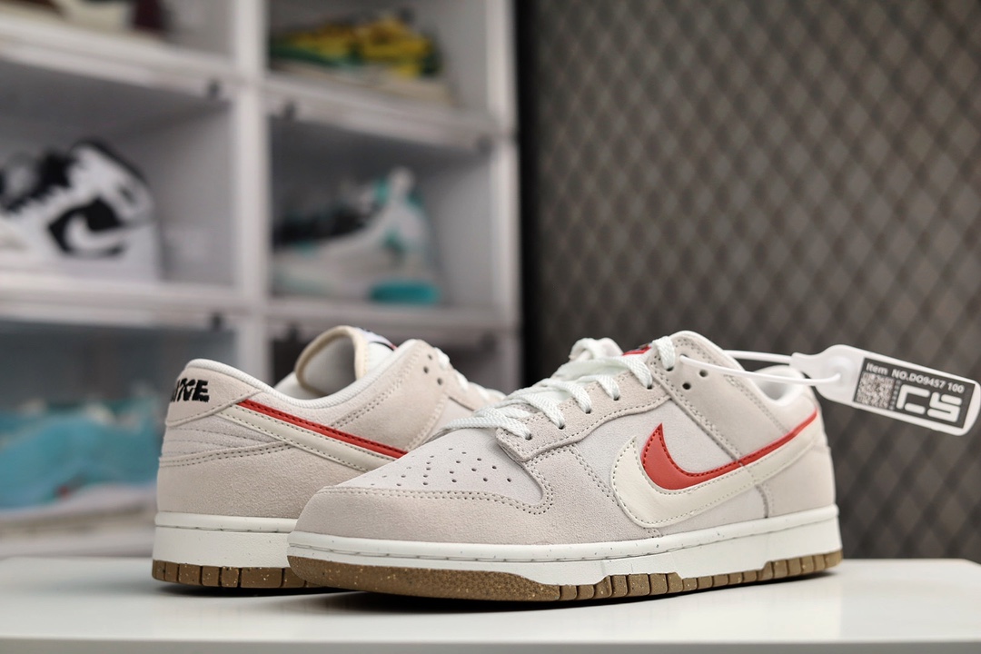 H0 Nk SB Dunk Low “85” 灰红双勾 SB低帮运动休闲板鞋 特别款采用绒面革材质,鞋身左右侧均配有皮革质双 Swooshes。“85”年纪念标放在鞋舌的位置。