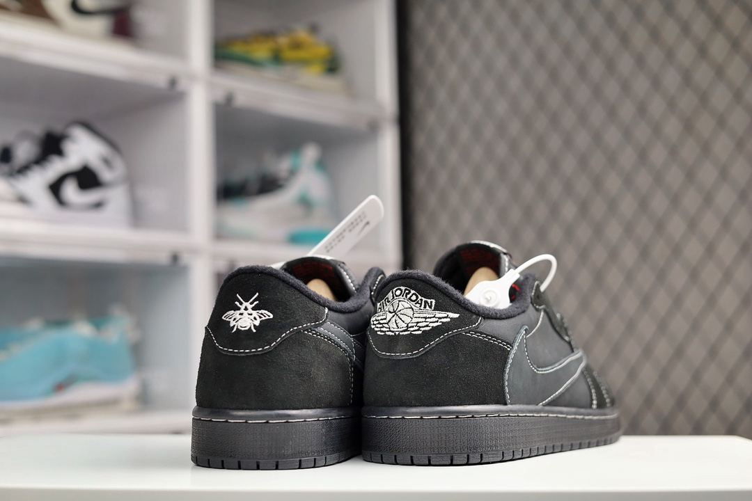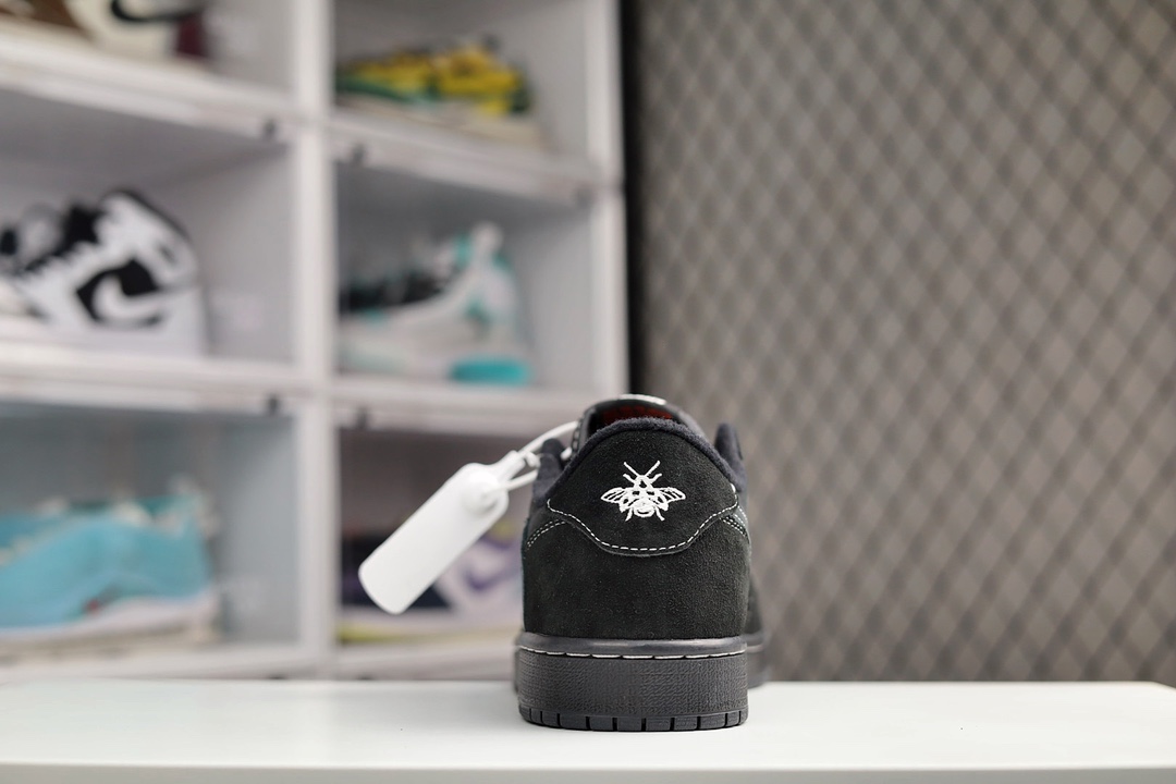 H0 Travis Scott x Air Jordan 1 Low黑魂倒钩低帮 纯原大厂出品全新的联名低帮倒钩鞋面延续了黑脚趾设计,整双鞋在纯黑的鞋身基础上,使用白色撞色车线,鞋身轮廓显示得更加明显。再点缀上Travis Scott 标志性的Logo,后跟处经典的TS人脸标志换成了代表亲女儿Stormi的蜜蜂刺绣Logo,彰显出联名的奢华格调。