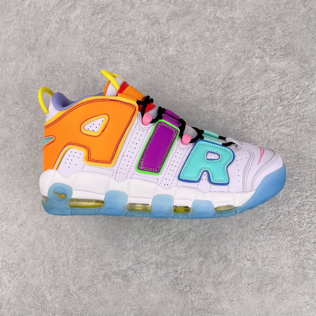 H5 原装 NK Air More Uptempo ’96 OG 皮蓬大AIR 以流行于街头的涂鸦文化为设计灵感,整体的设计风格夸张而充满魅力,厚实而充满质感的皮质鞋面两侧印刻了一对巨大的字母“AIR”,独特炫酷的外观惊艳无比