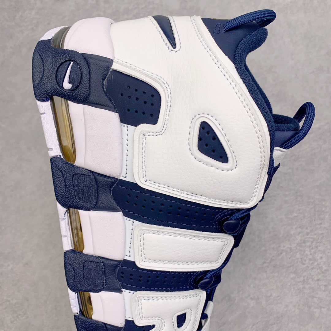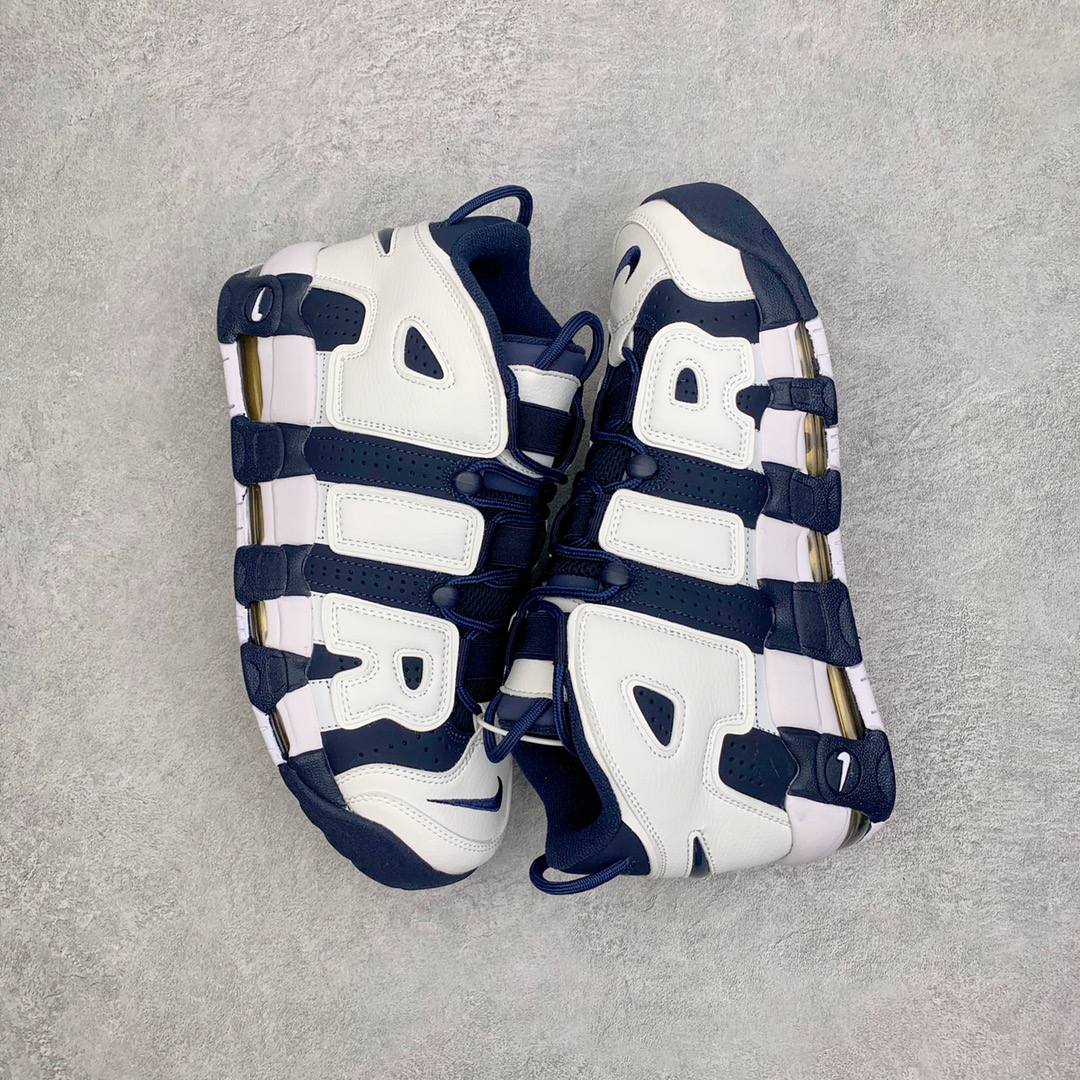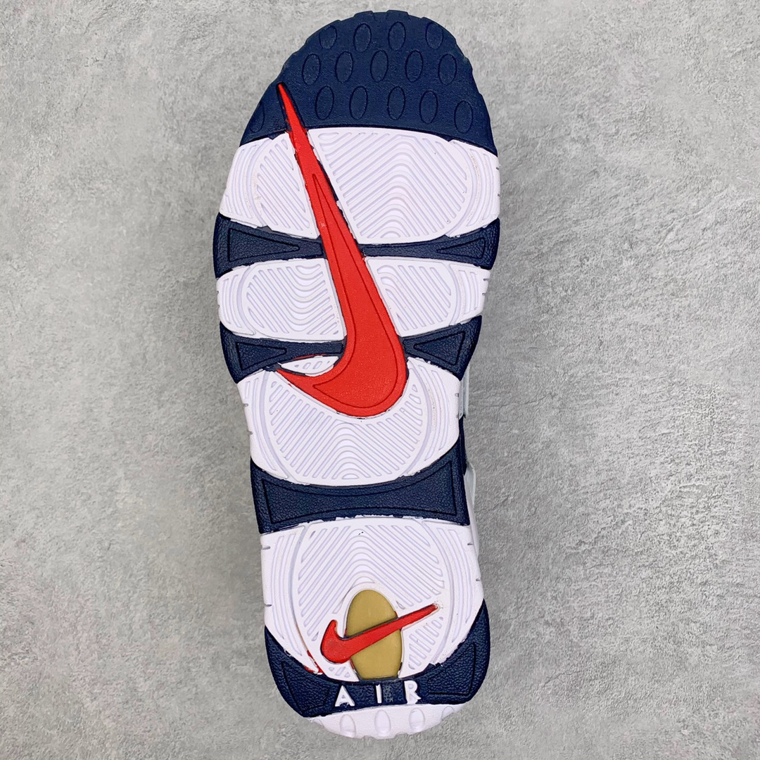 H5 原装 NK Air More Uptempo ’96 OG 皮蓬大AIR 奥运配色 414962-104 以流行于街头的涂鸦文化为设计灵感,整体的设计风格夸张而充满魅力,厚实而充满质感的皮质鞋面两侧印刻了一对巨大的字母“AIR”,独特炫酷的外观惊艳无比