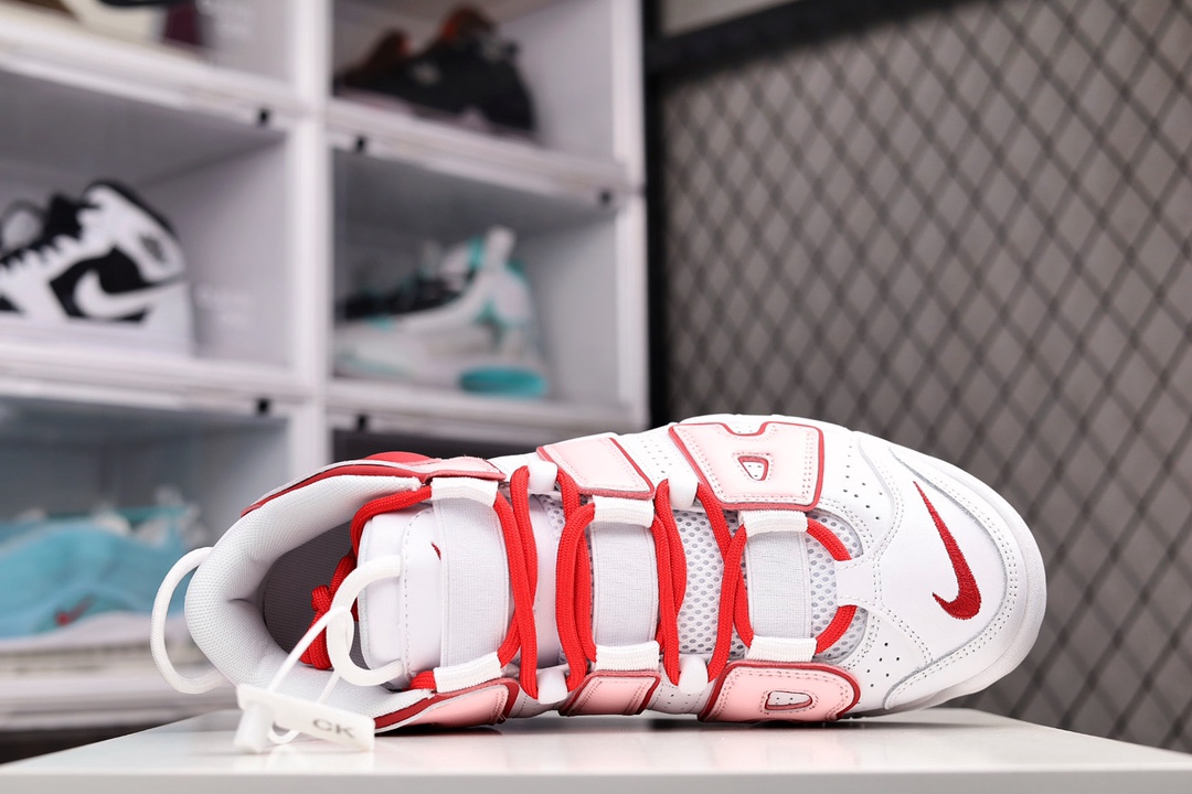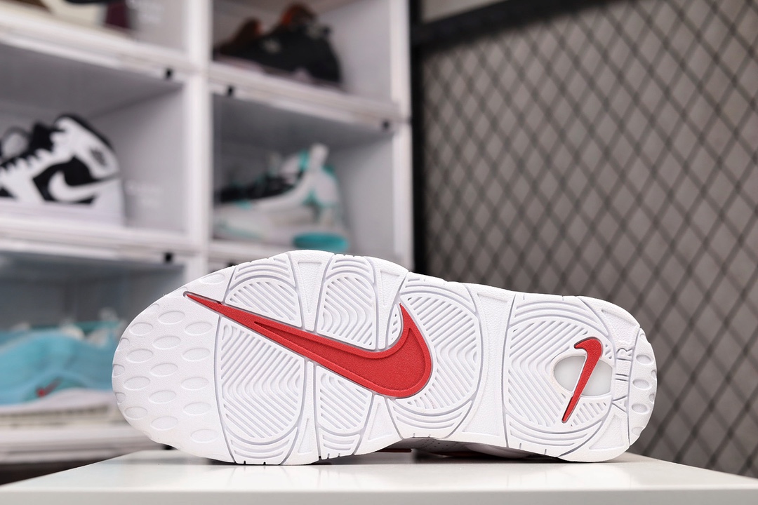 H5 原装CK版本 NK Air More Uptempo ’96 OG 皮蓬大AIR 以流行于街头的涂鸦文化为设计灵感,整体的设计风格夸张而充满魅力,厚实而充满质感的皮质鞋面两侧印刻了一对巨大的字母“AIR”,独特炫酷的外观惊艳无比