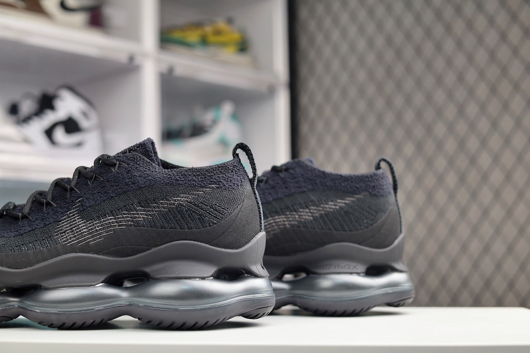 H5 Nike Air Max Scorpion FK 全黑 次世代气垫搭载全掌长气垫鞋款 而这样的配置,会带来过去所有 Air Max 鞋款所没有的穿著体验;除了中底外鞋面材料也有所突破,根据 Dylan Raasch 说法,这次鞋面为新开发的 Chenille Flyknit,鞋舌、鞋领处加入了新材质,是与过去 Flyknit 最大的不同当年跨时代的气室设计成功引起风潮,几年过去鞋款审美也大大的改变